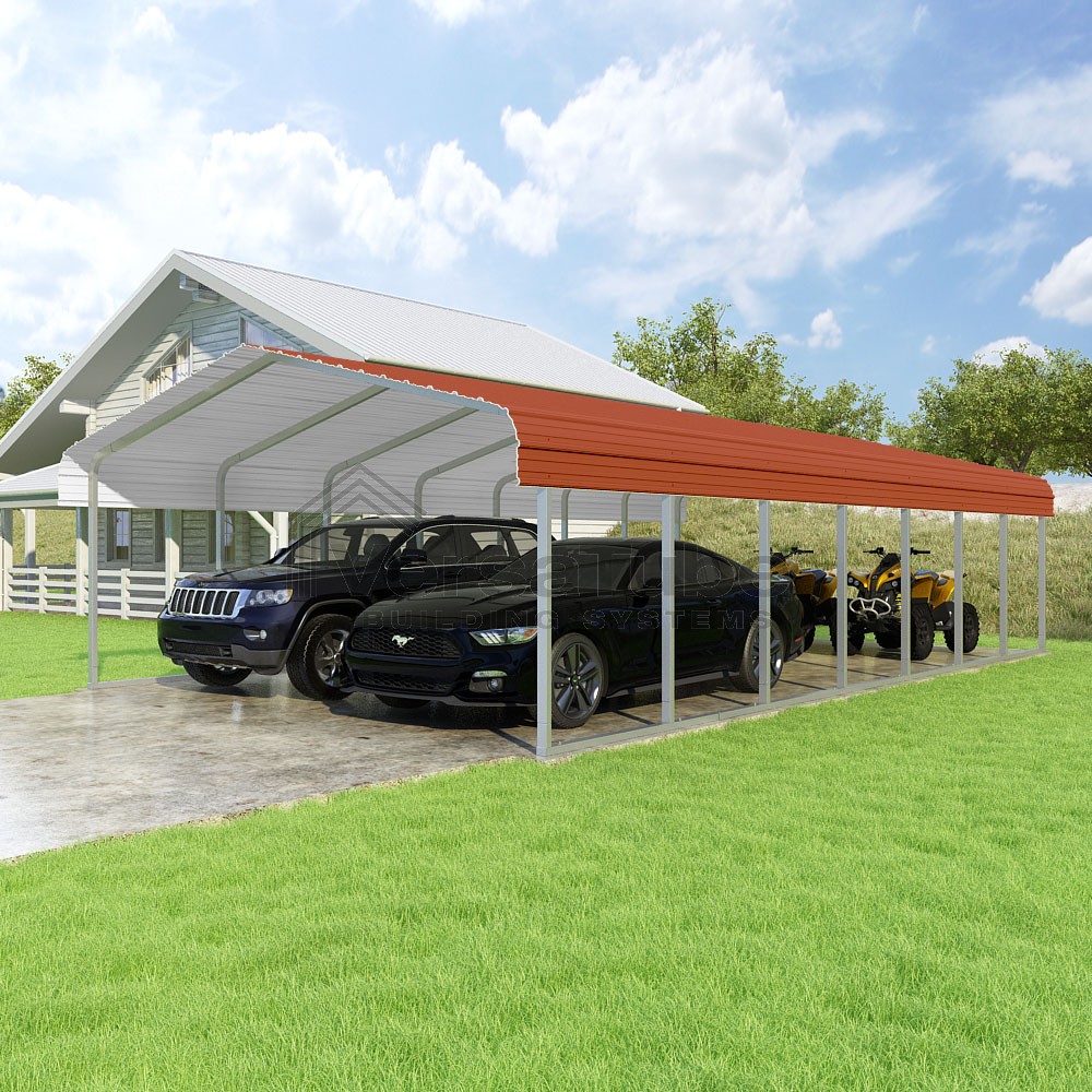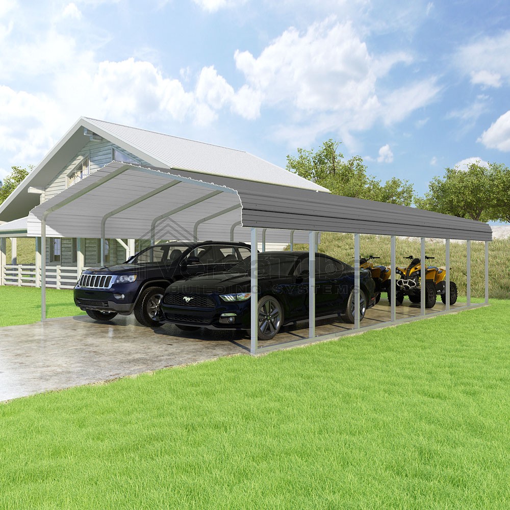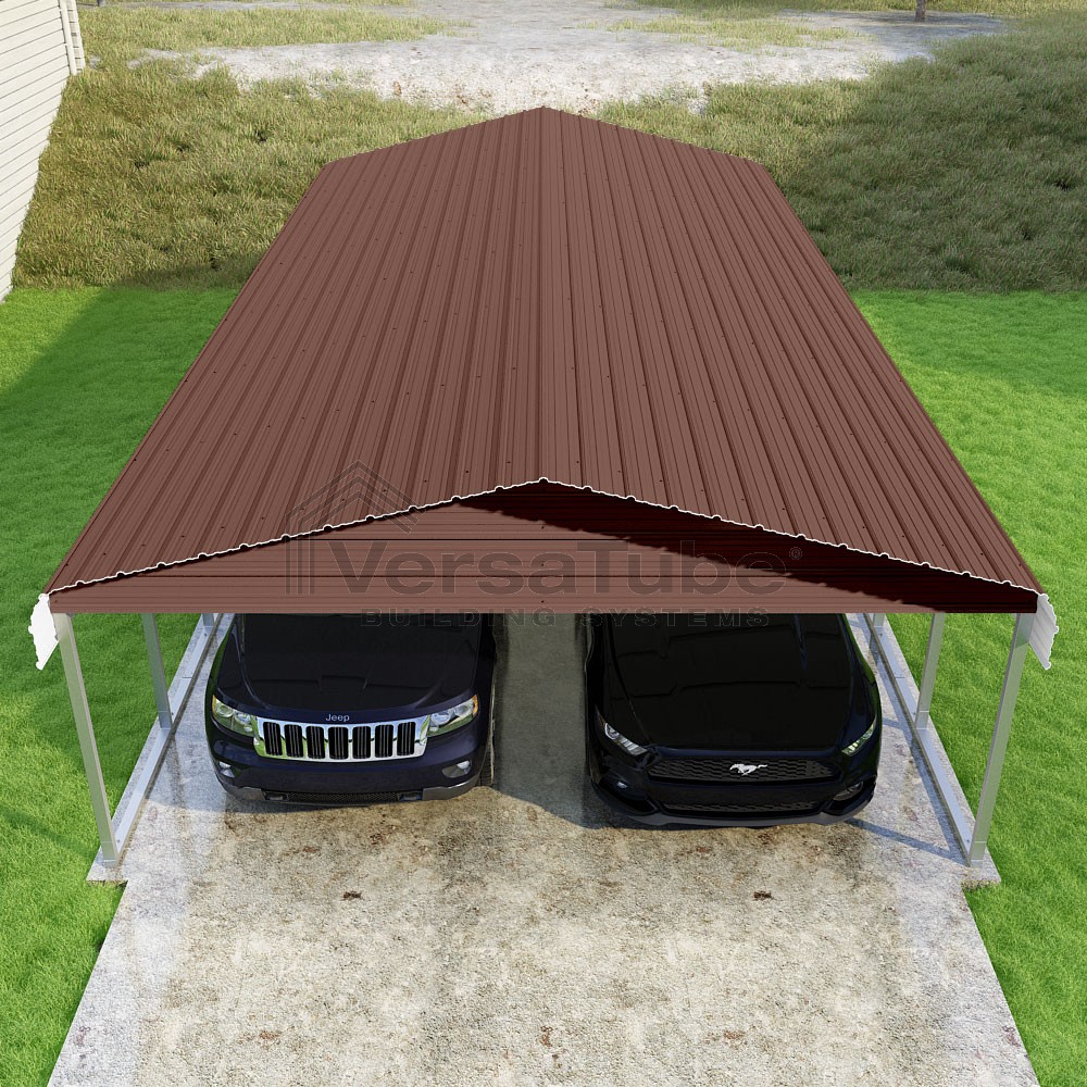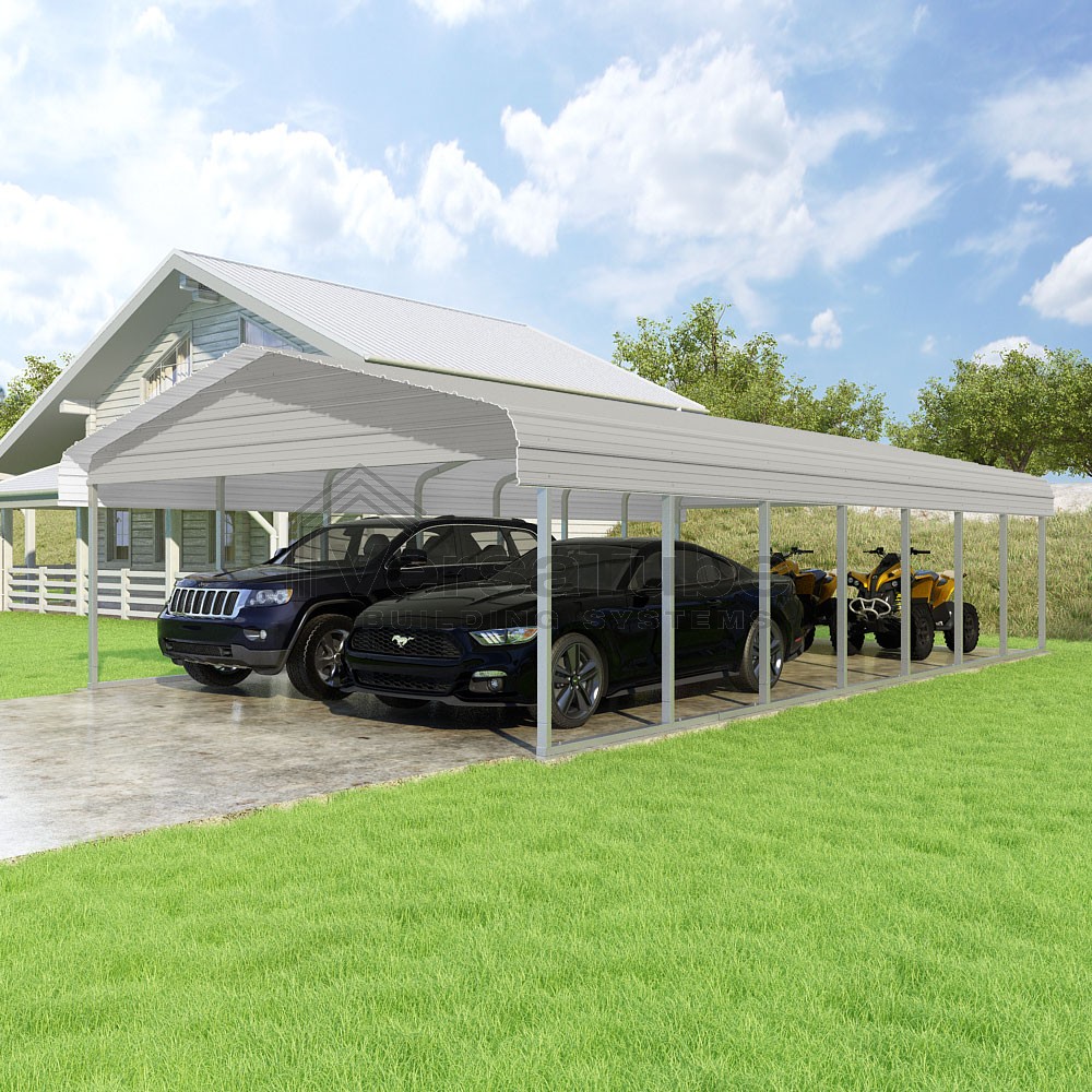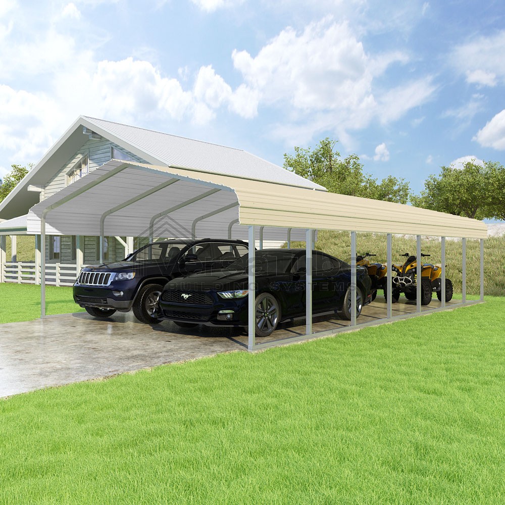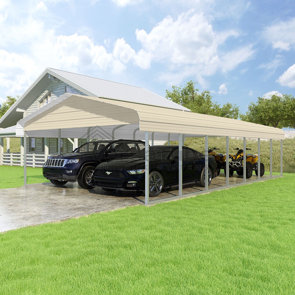 Classic Series DIY carport kit features horizontal application of sheet metal panels with the extra protection of rounded eaves.