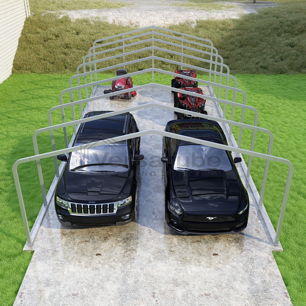 The Classic design utilizes a horizontal sheet metal roof application which has become a popular mainstay for accommodating carport or shelters solutions in a more affordable manner by eliminating the need for roof purlins and ridge cap trim. And with the VersaTube Slip-Fit frame system, you can get your carport frame kit assembled in a single afternoon using common tools.