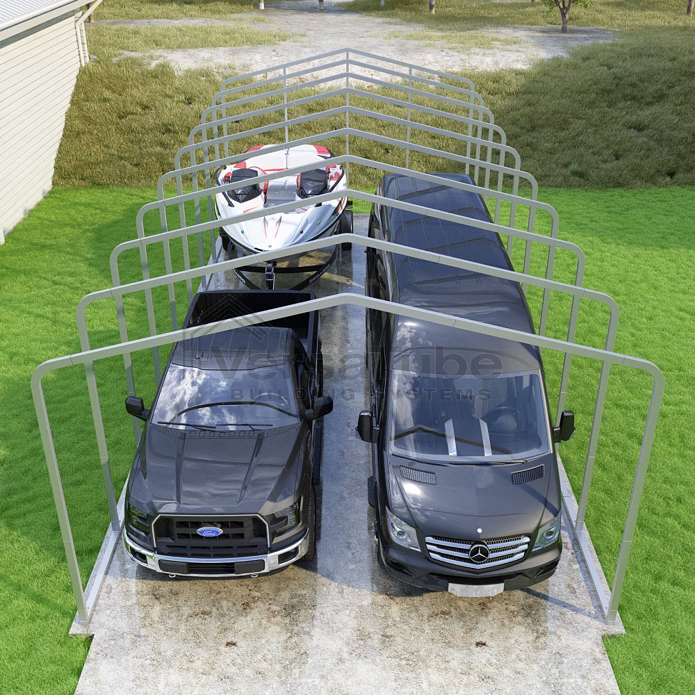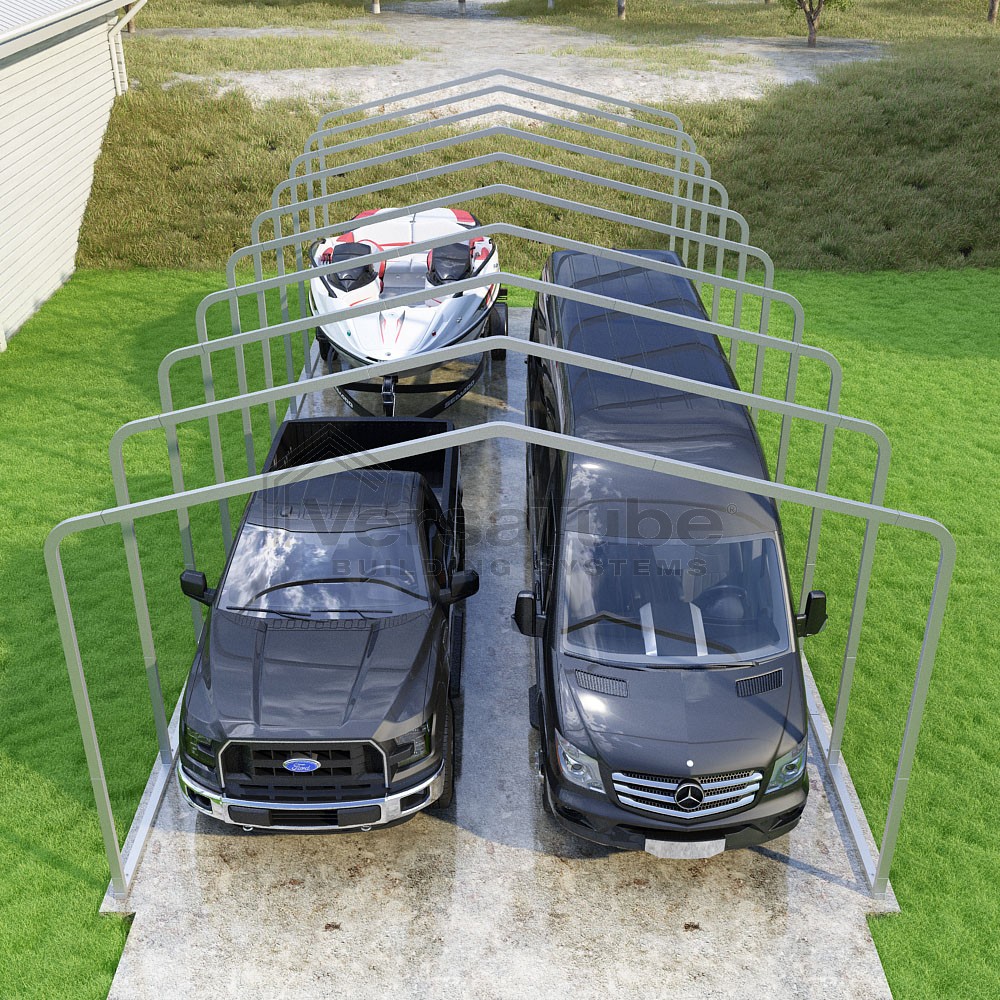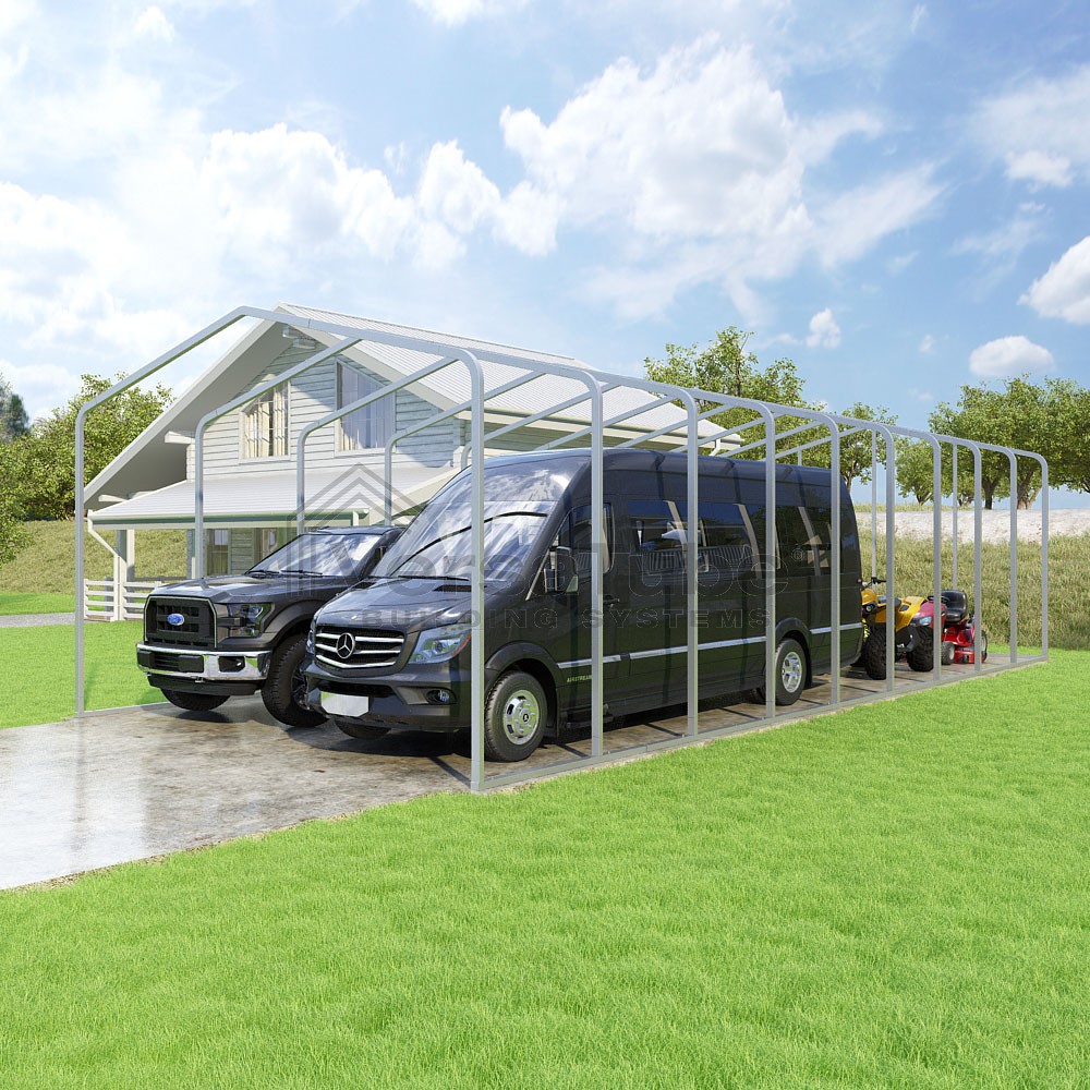 Classic Series DIY carport frame kit is designed for horizontal sheet metal application, resulting in a more cost-effective shelter or canopy solution. The rounded bends allow the sheet metal to naturally roll over the sides ensuring additional protection from elements entering from the sides.
