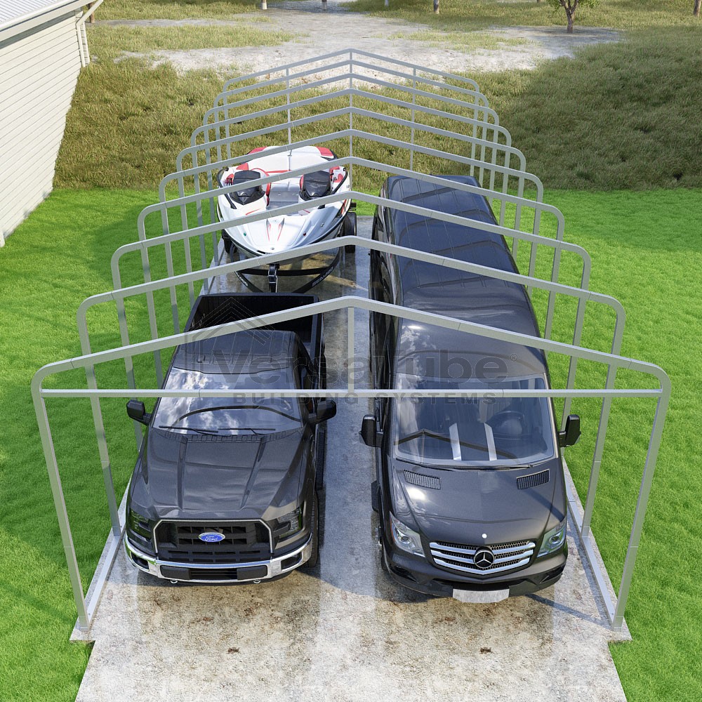 The Classic design utilizes a horizontal sheet metal roof application which has become a popular mainstay for accommodating carport or shelters solutions in a more affordable manner by eliminating the need for roof purlins and ridge cap trim. And with the VersaTube Slip-Fit frame system, you can get your carport frame kit assembled in a single afternoon using common tools.