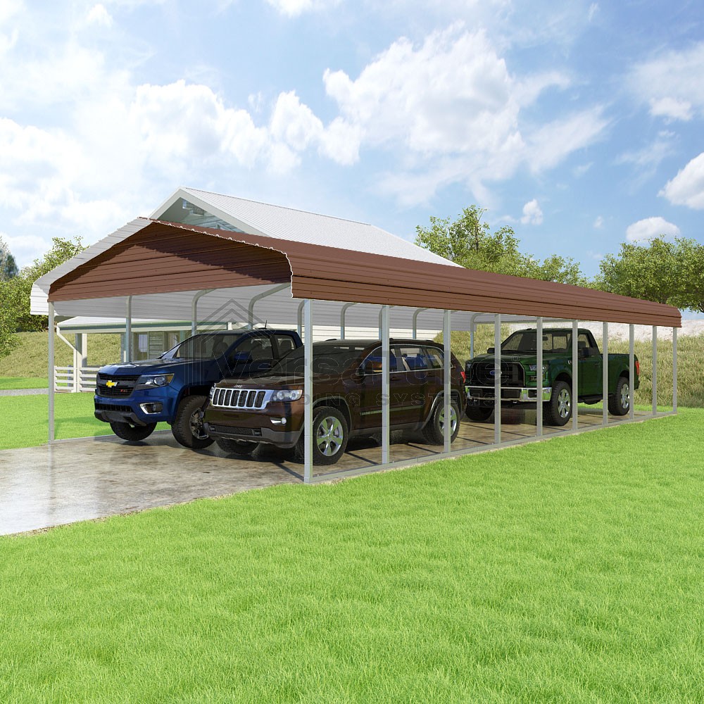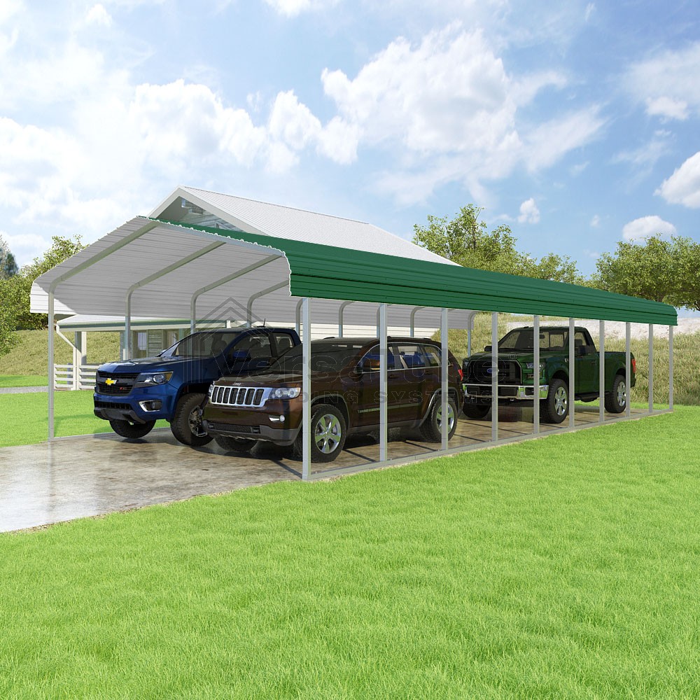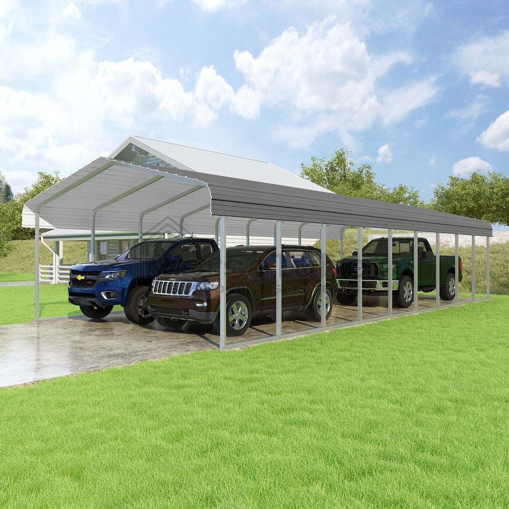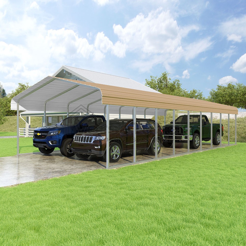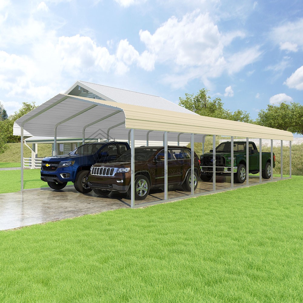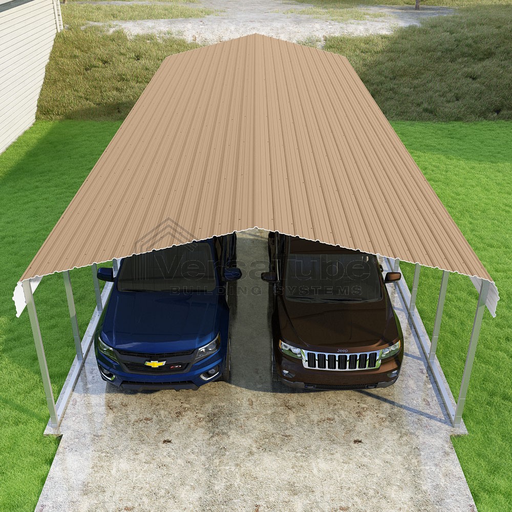 Classic Series DIY carport kit features horizontal application of sheet metal panels with the extra protection of rounded eaves.