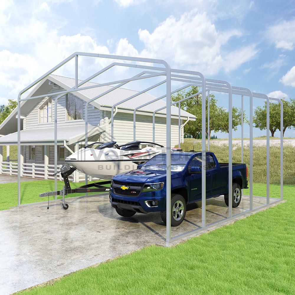Classic Series DIY carport frame kit is designed for horizontal sheet metal application, resulting in a more cost-effective shelter or canopy solution. The rounded bends allow the sheet metal to naturally roll over the sides ensuring additional protection from elements entering from the sides.