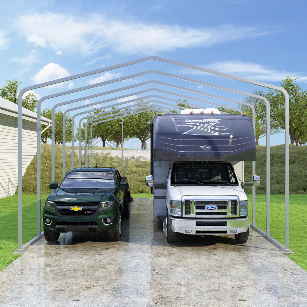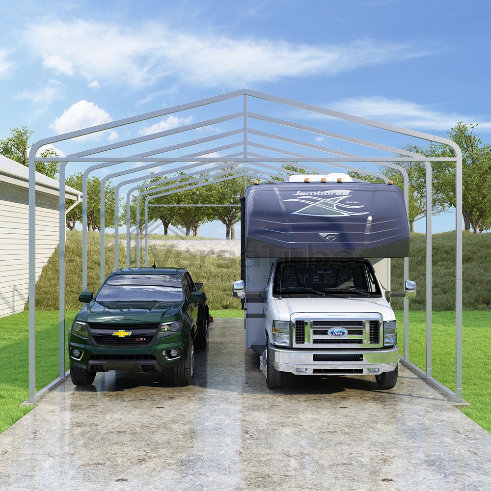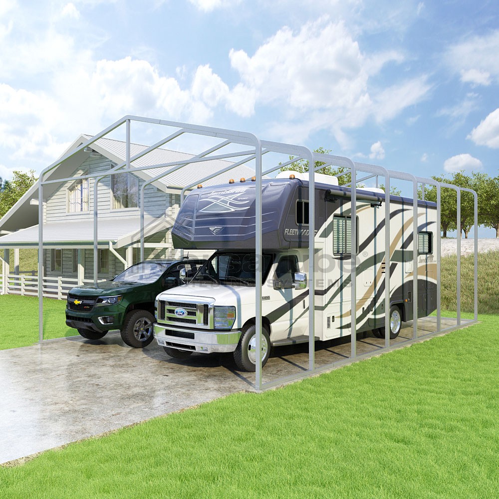 Classic Series DIY carport frame kit is designed for horizontal sheet metal application, resulting in a more cost-effective shelter or canopy solution. The rounded bends allow the sheet metal to naturally roll over the sides ensuring additional protection from elements entering from the sides.