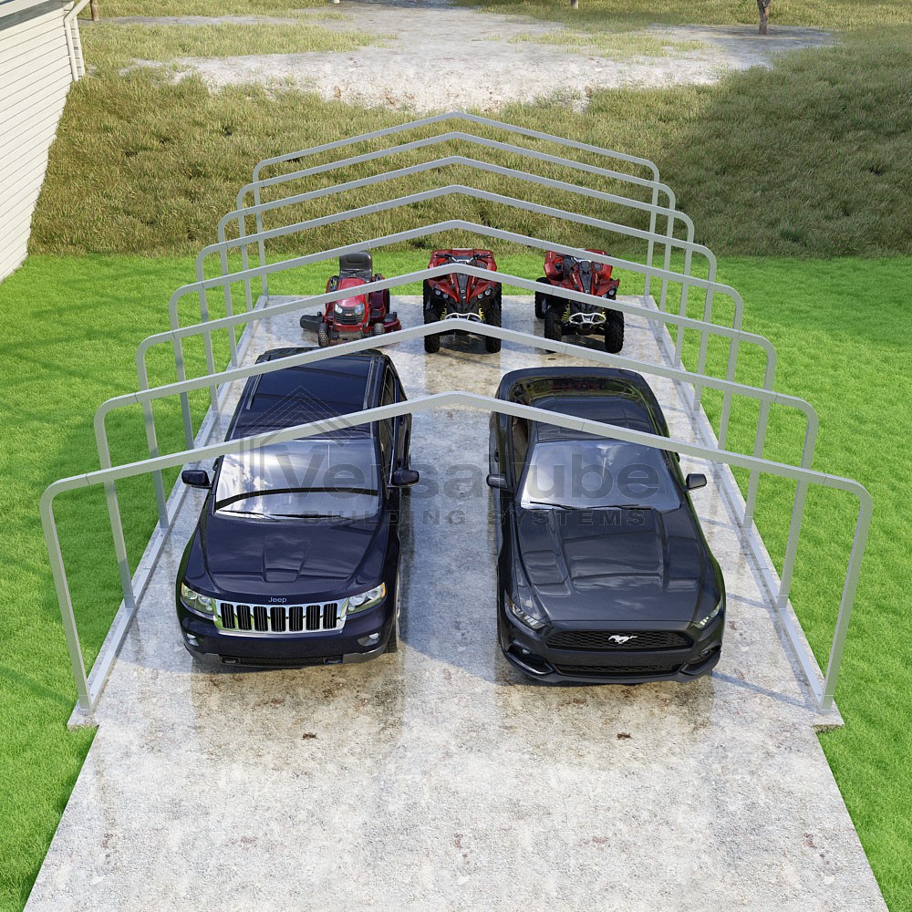 The Classic design utilizes a horizontal sheet metal roof application which has become a popular mainstay for accommodating carport or shelters solutions in a more affordable manner by eliminating the need for roof purlins and ridge cap trim. And with the VersaTube Slip-Fit frame system, you can get your carport frame kit assembled in a single afternoon using common tools.