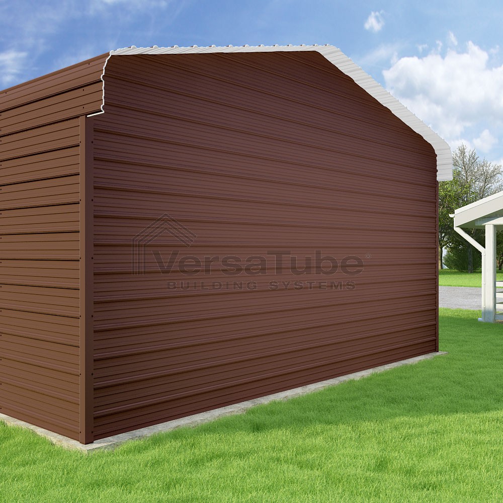 Classic Series DIY carport kit features horizontal application of sheet metal panels with the extra protection of rounded eaves.