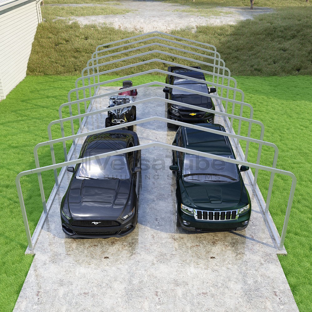 The Classic design utilizes a horizontal sheet metal roof application which has become a popular mainstay for accommodating carport or shelters solutions in a more affordable manner by eliminating the need for roof purlins and ridge cap trim. And with the VersaTube Slip-Fit frame system, you can get your carport frame kit assembled in a single afternoon using common tools.