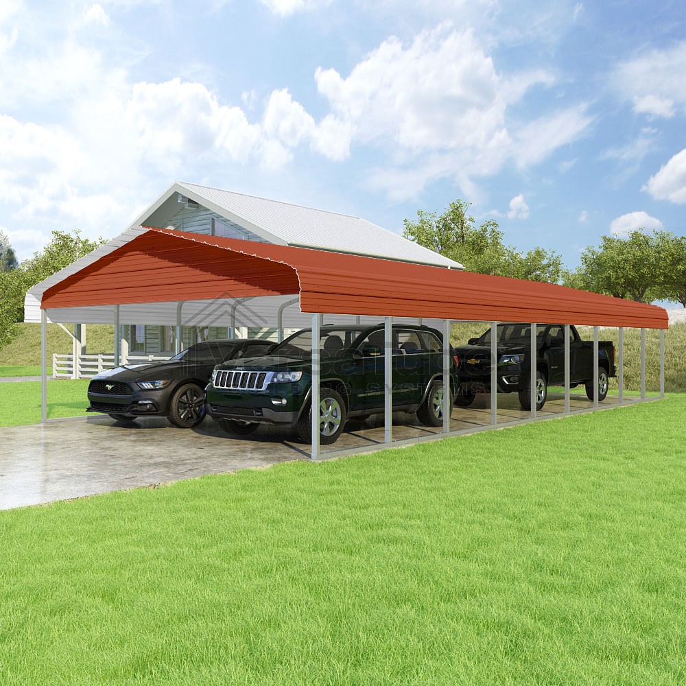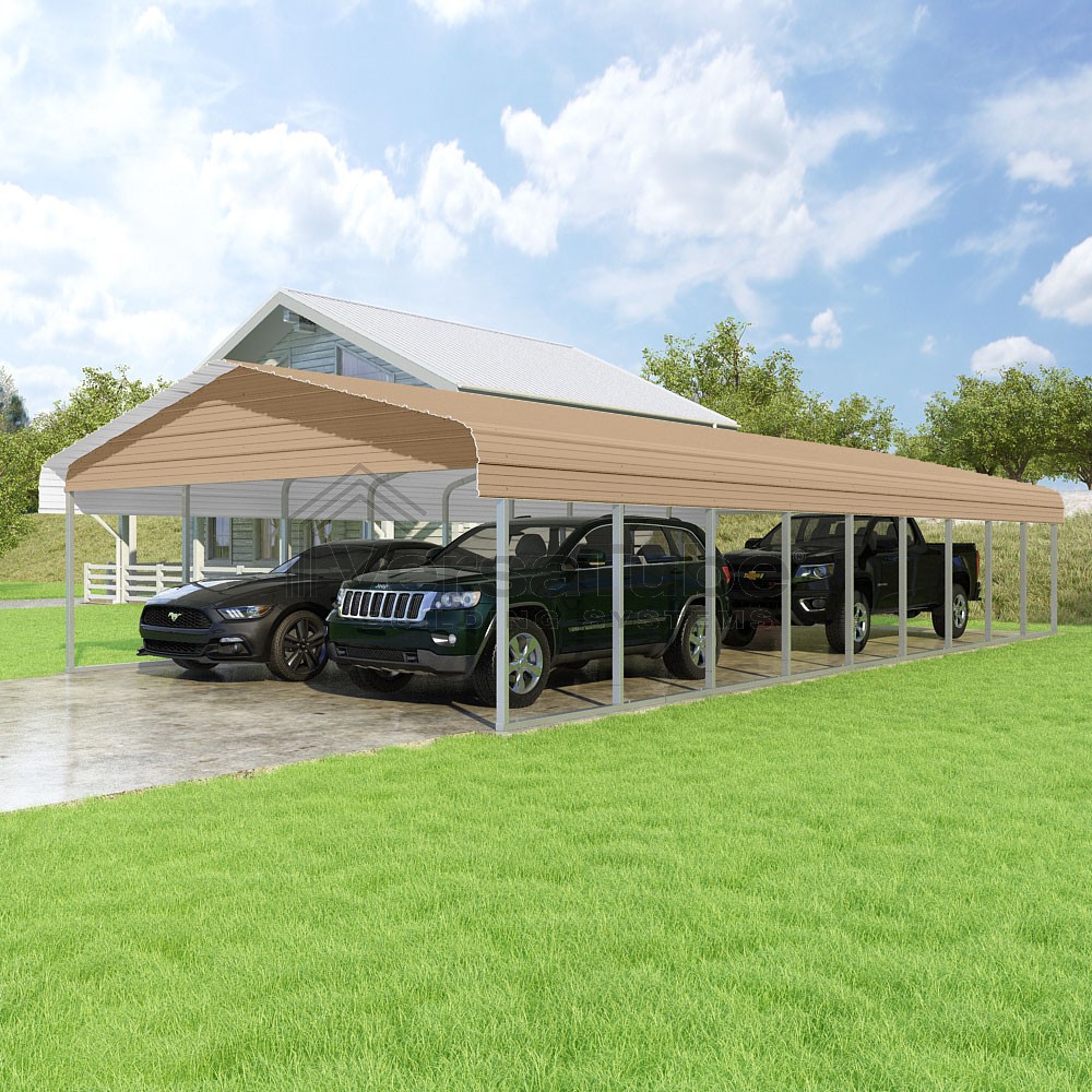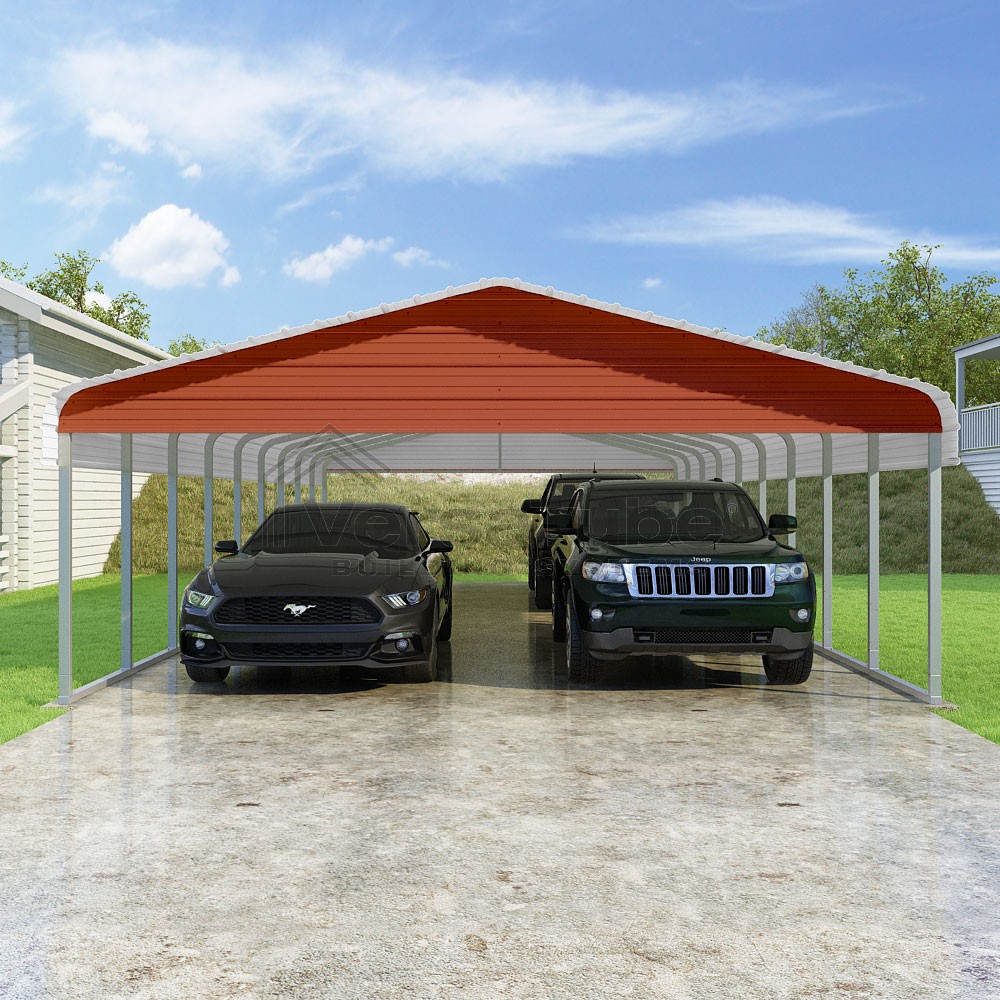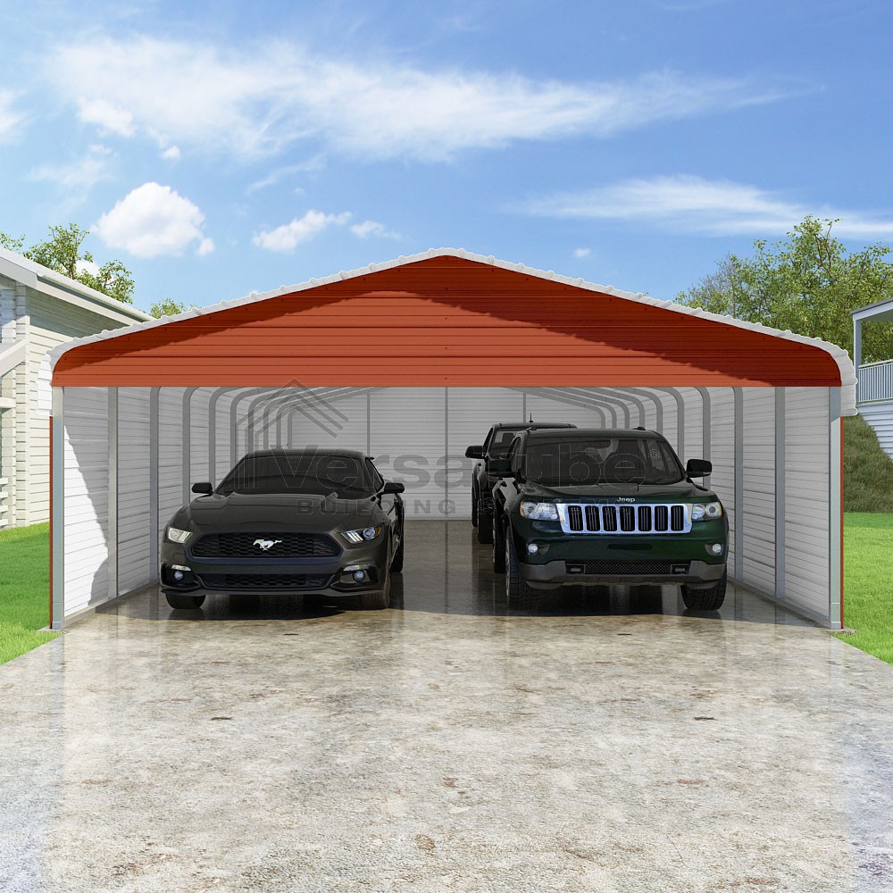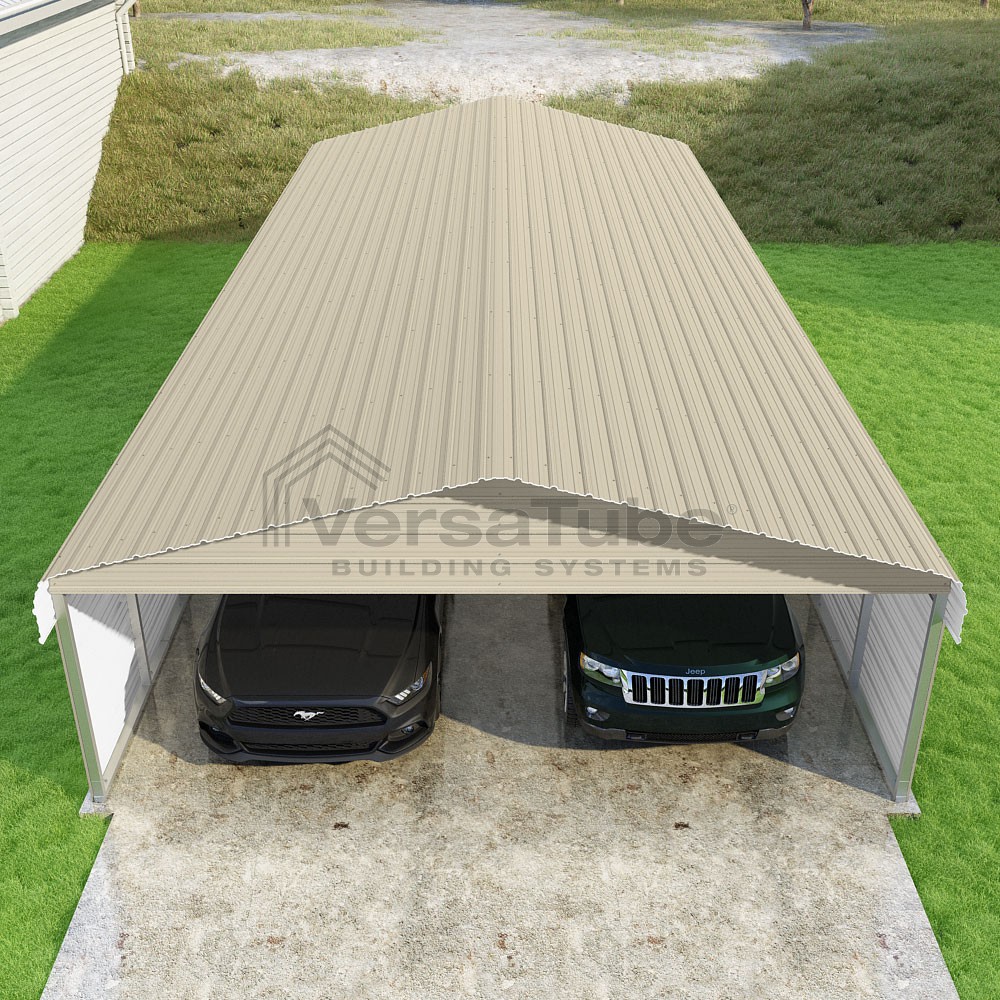 Classic Series DIY carport kit features horizontal application of sheet metal panels with the extra protection of rounded eaves.
