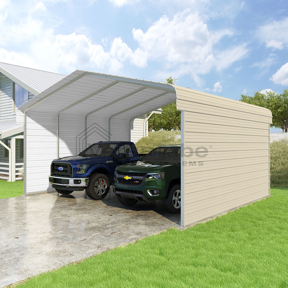 Classic Series DIY carport kit features horizontal application of sheet metal panels with the extra protection of rounded eaves.