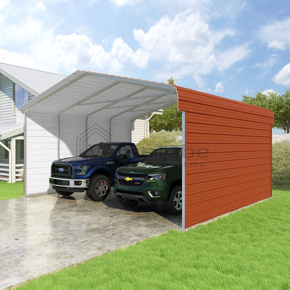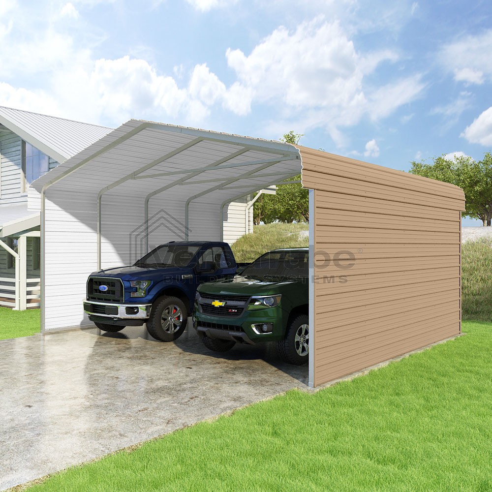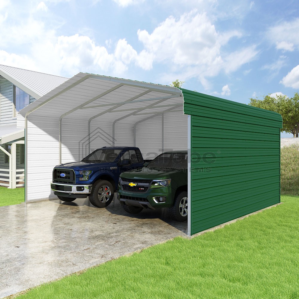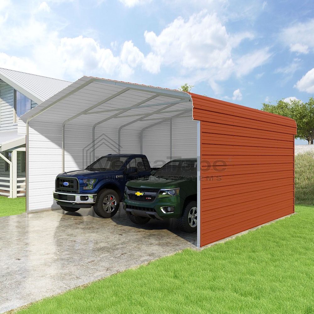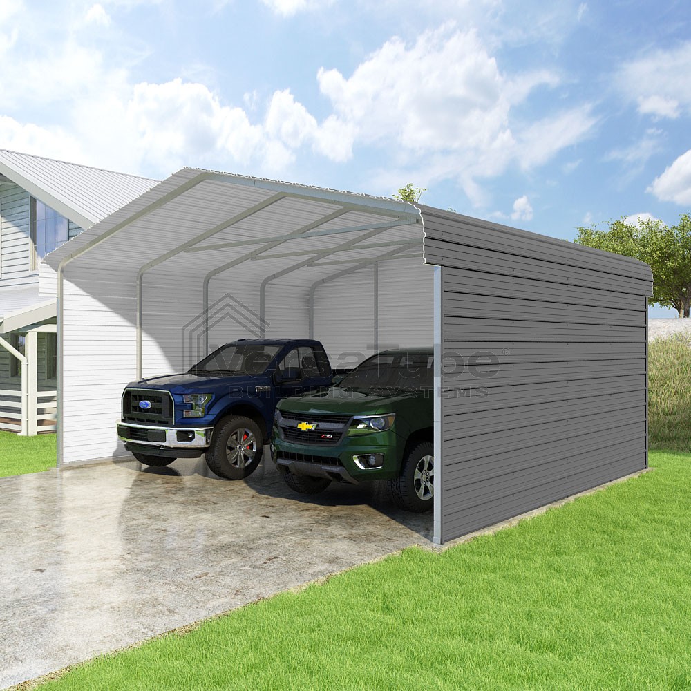 Classic Series DIY carport kit features horizontal application of sheet metal panels with the extra protection of rounded eaves.