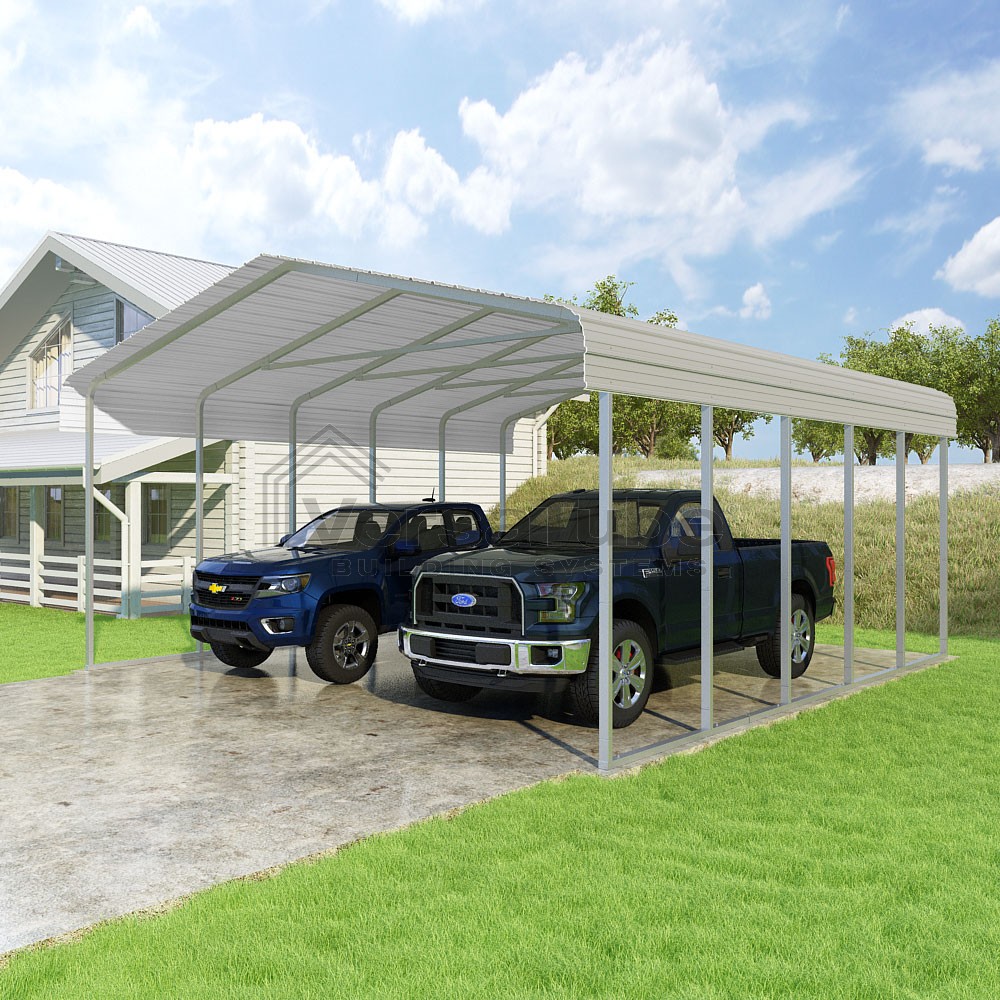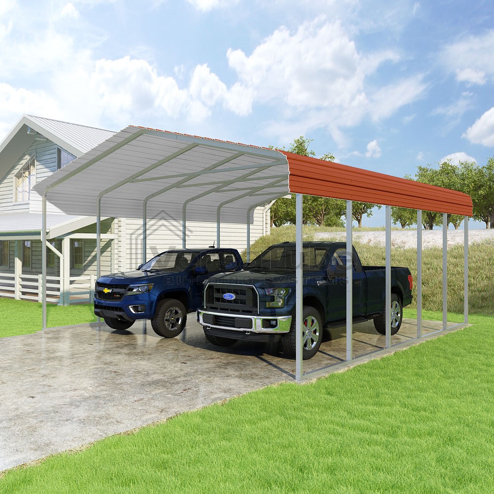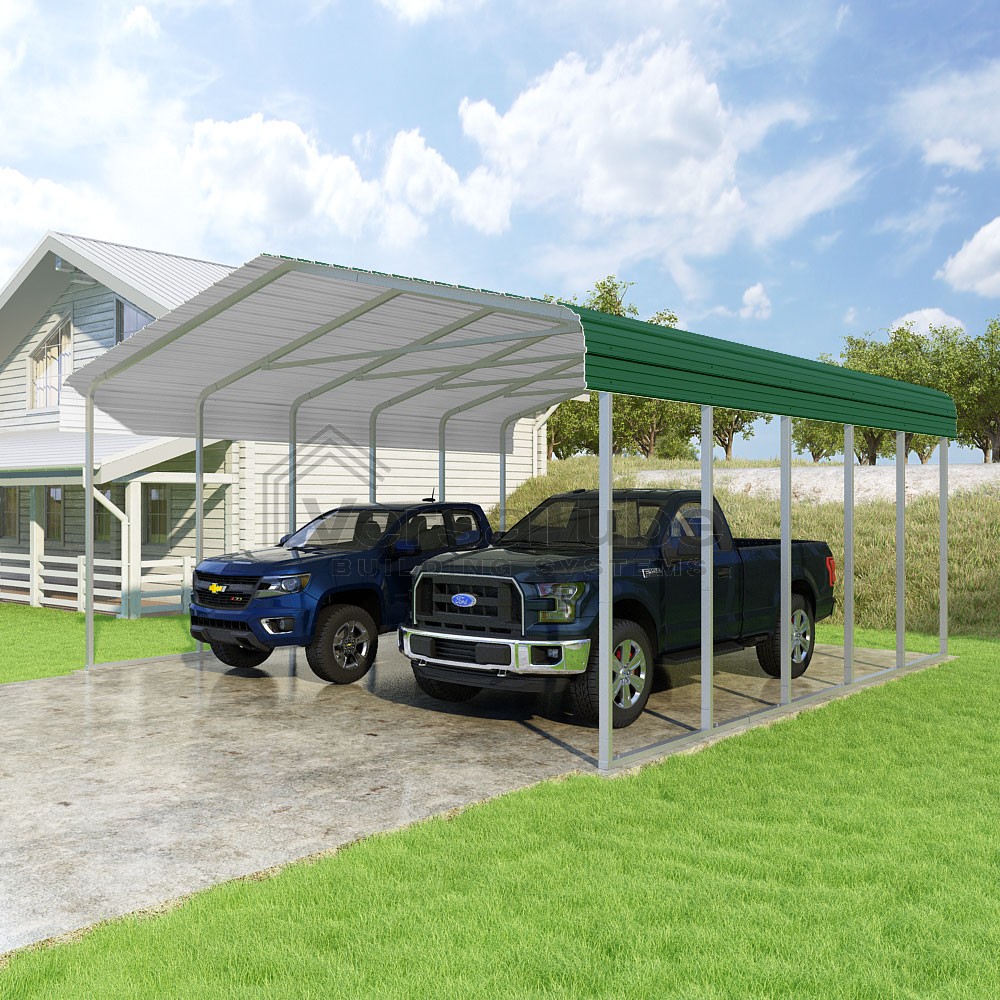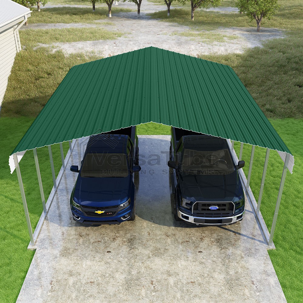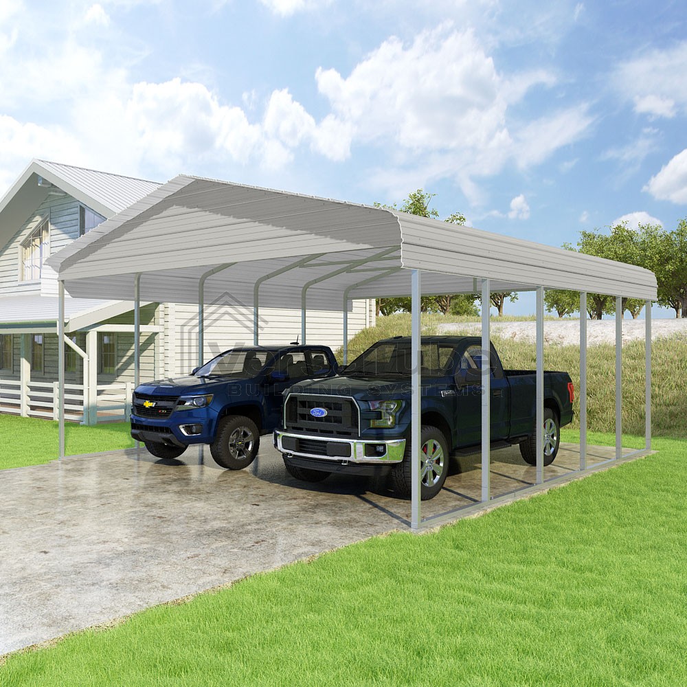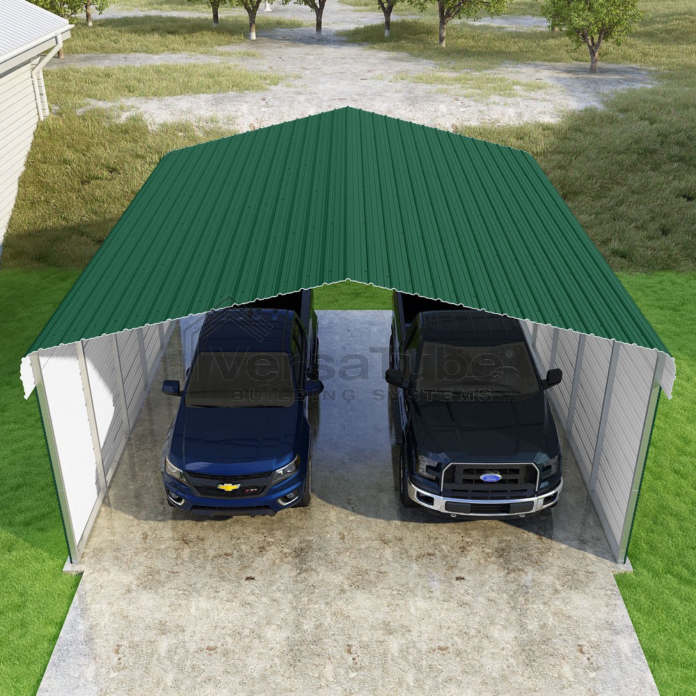 Classic Series DIY carport kit features horizontal application of sheet metal panels with the extra protection of rounded eaves.