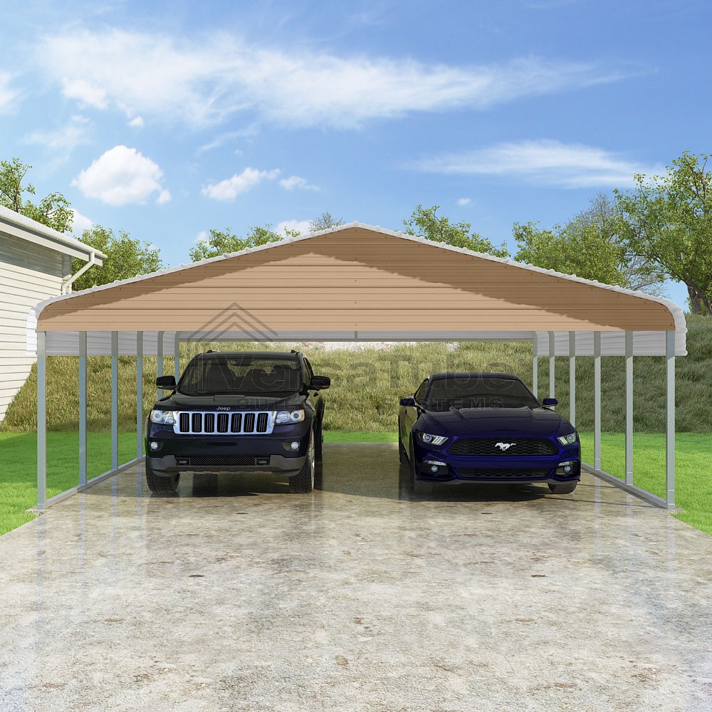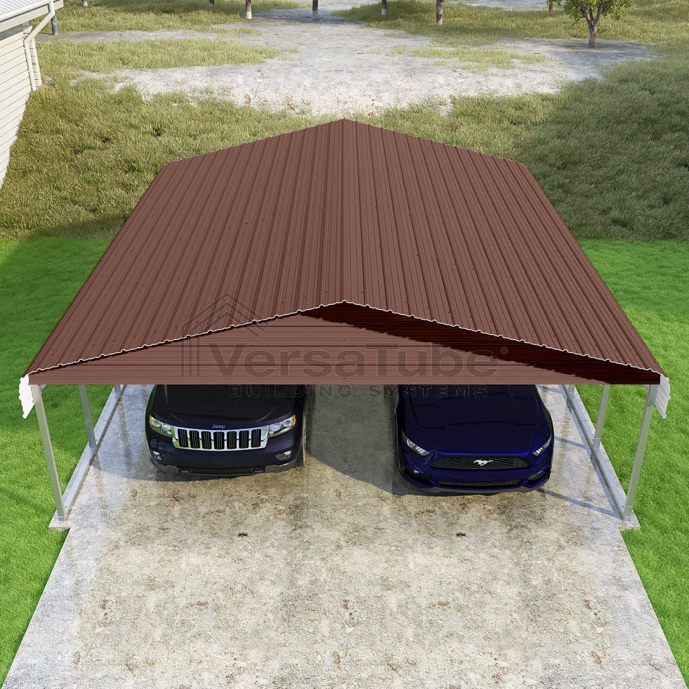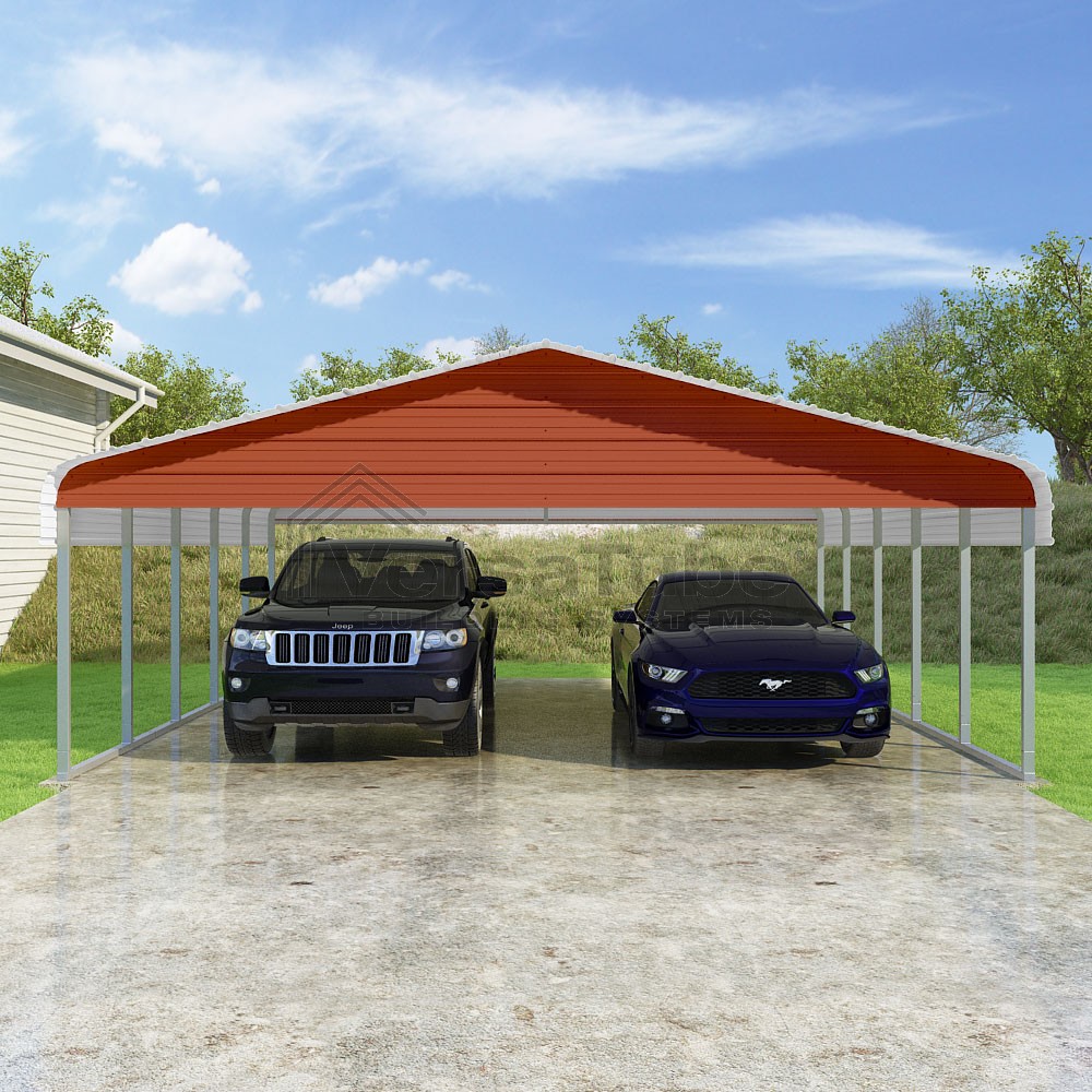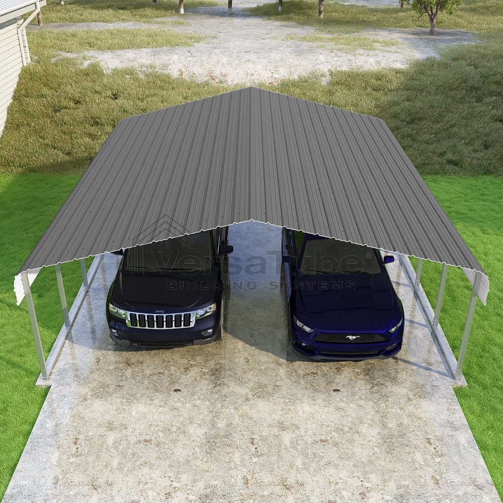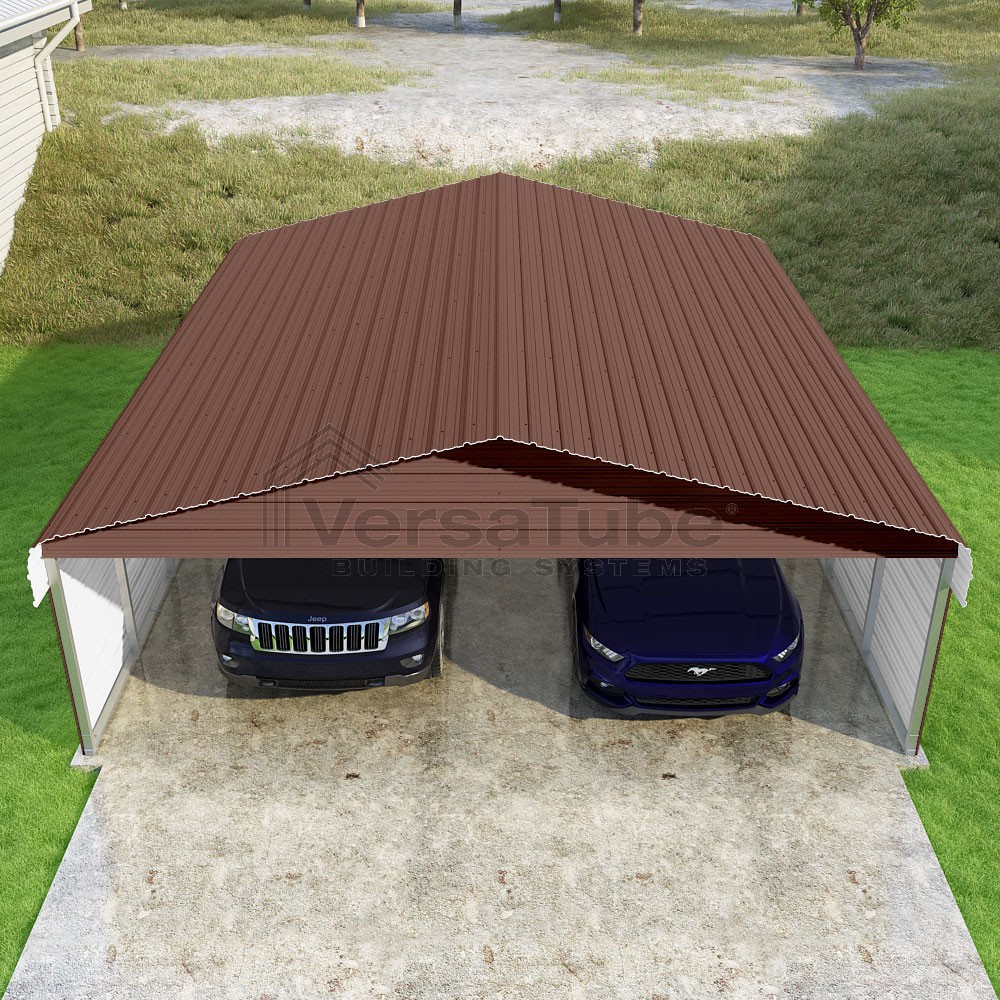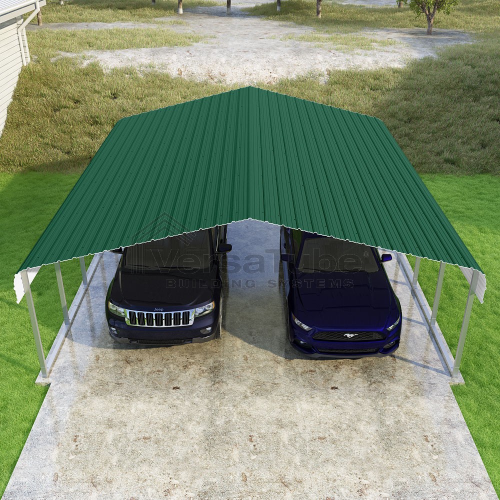 Classic Series DIY carport kit features horizontal application of sheet metal panels with the extra protection of rounded eaves.