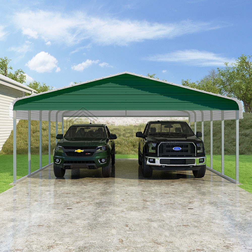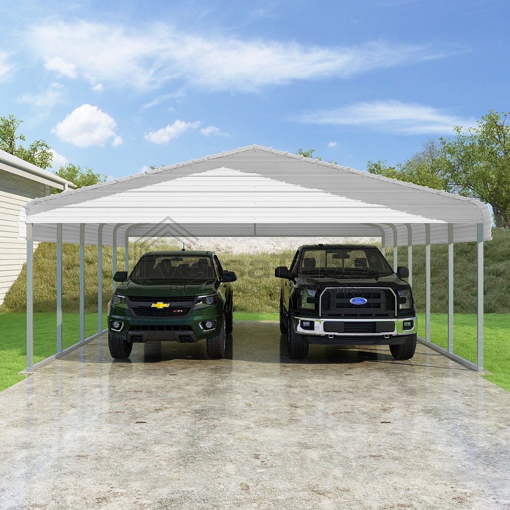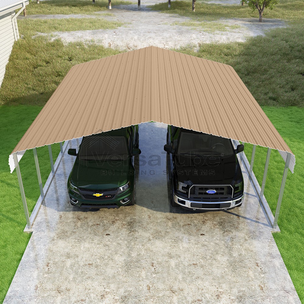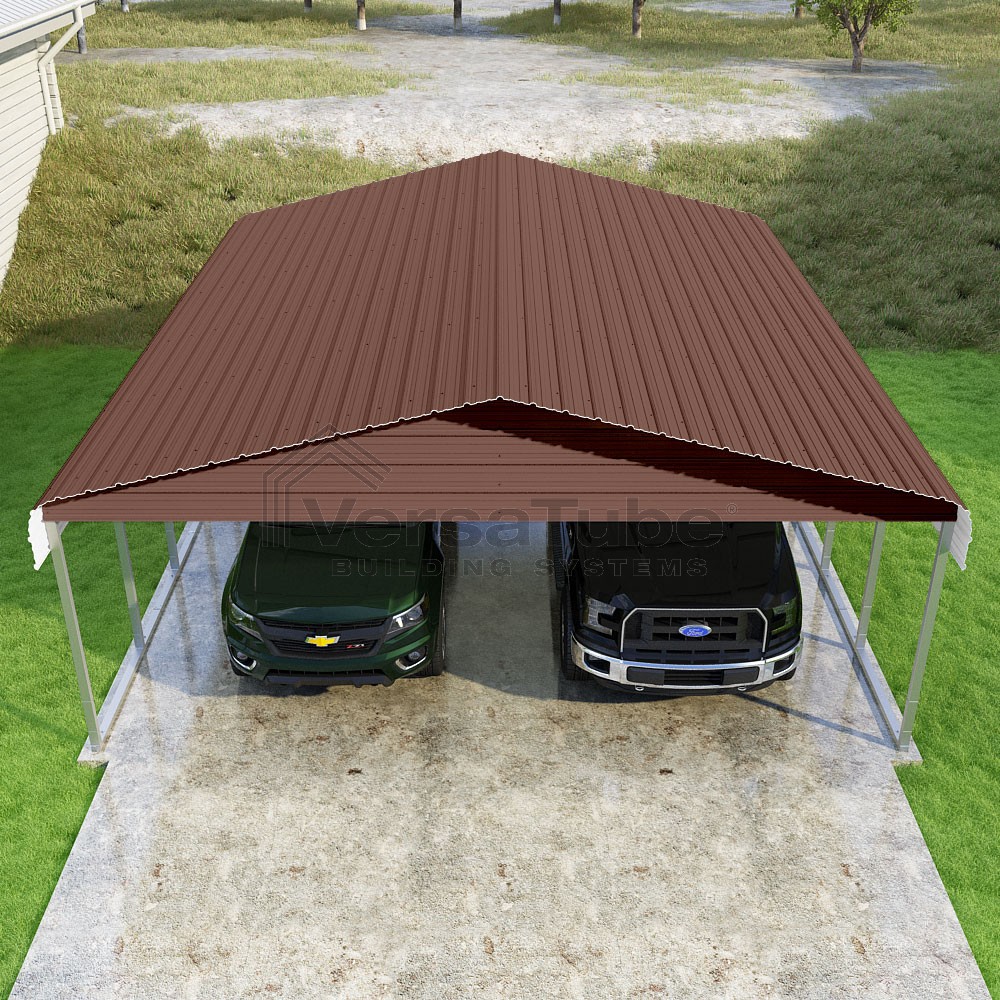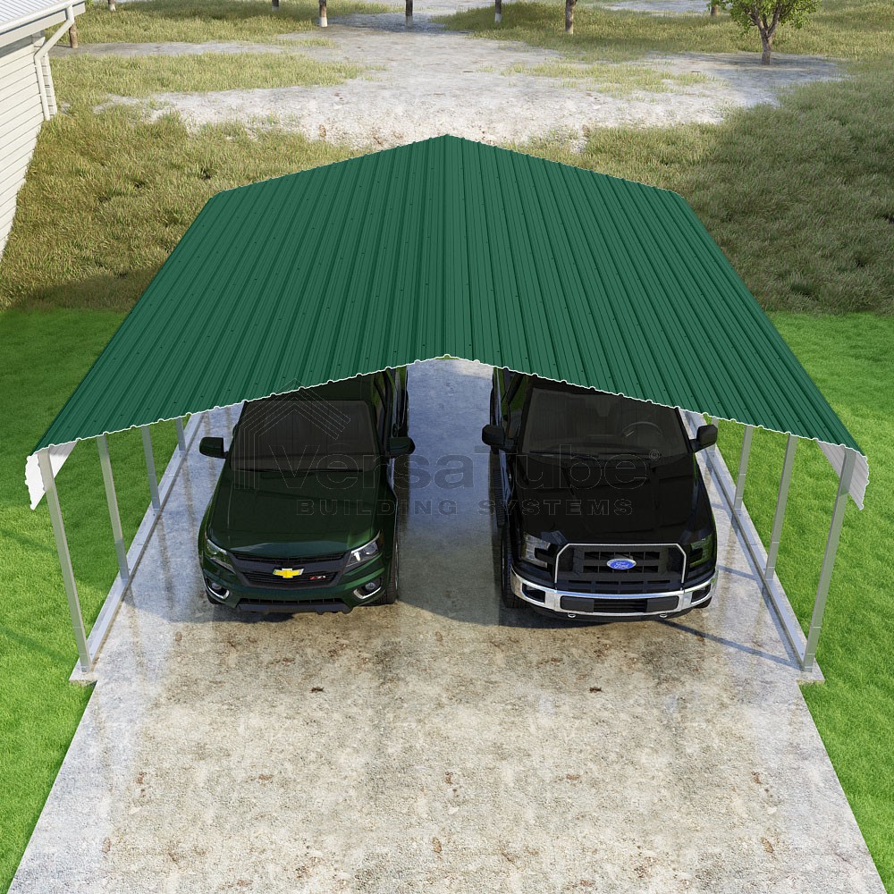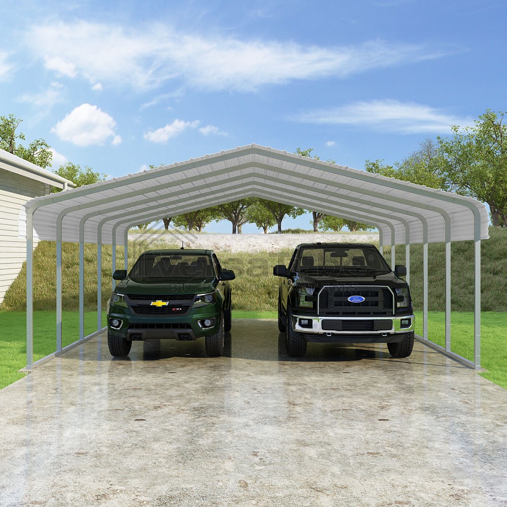 Classic Series DIY carport kit features horizontal application of sheet metal panels with the extra protection of rounded eaves.