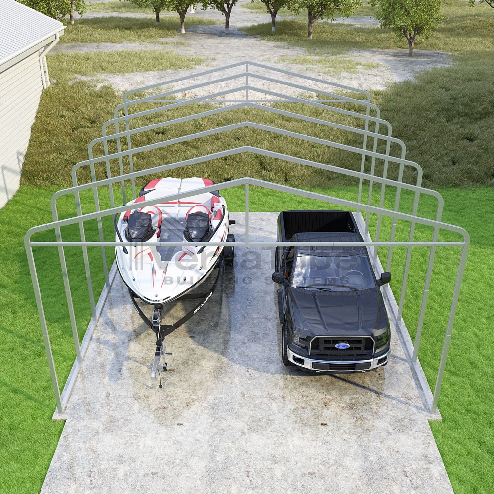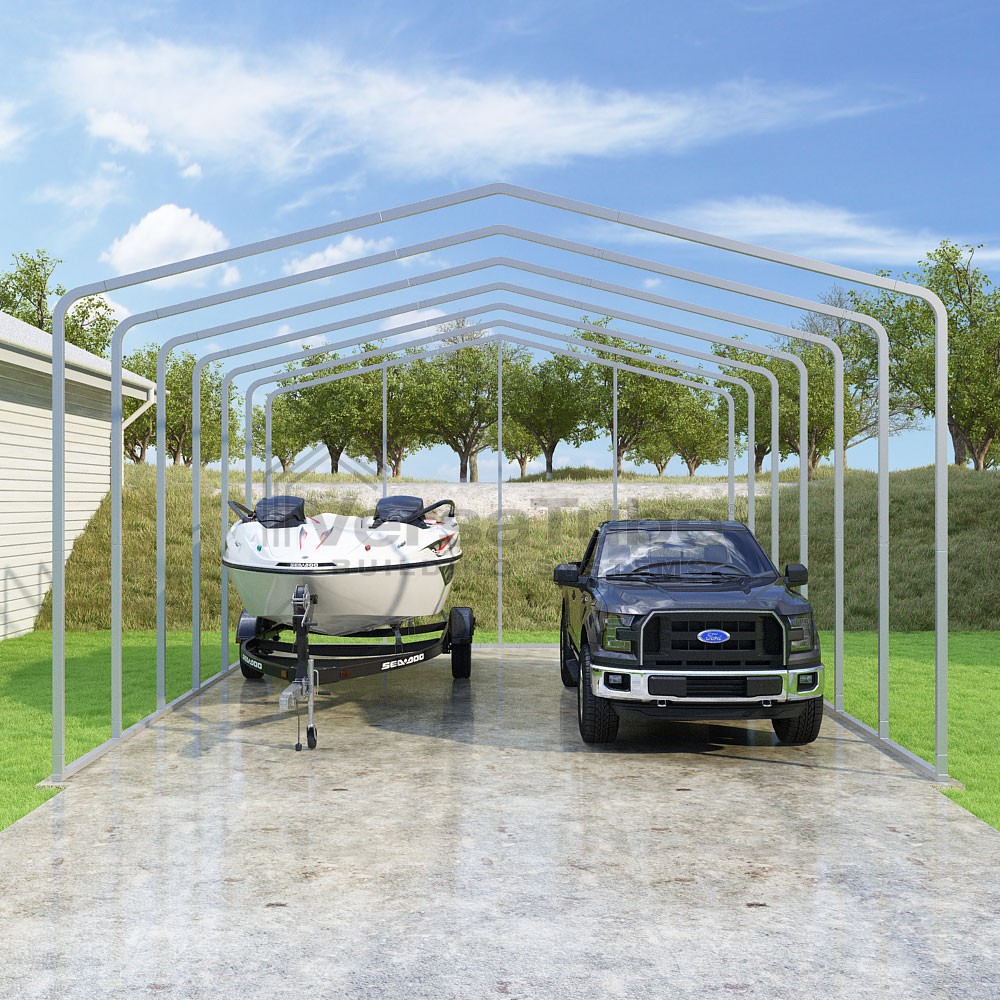 Classic Series DIY carport frame kit is designed for horizontal sheet metal application, resulting in a more cost-effective shelter or canopy solution. The rounded bends allow the sheet metal to naturally roll over the sides ensuring additional protection from elements entering from the sides.