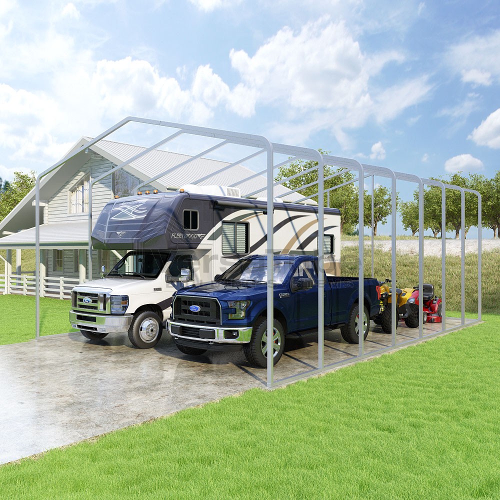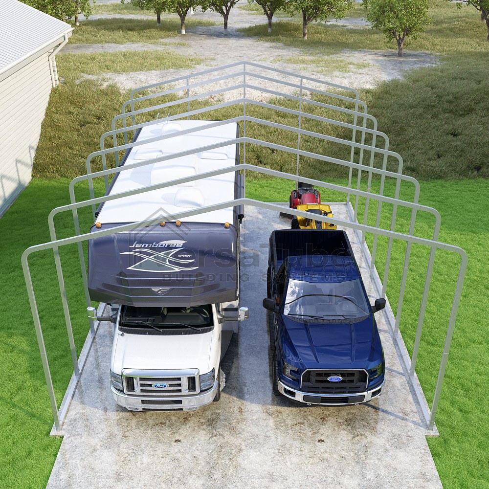 Classic Series DIY carport frame kit is designed for horizontal sheet metal application, resulting in a more cost-effective shelter or canopy solution. The rounded bends allow the sheet metal to naturally roll over the sides ensuring additional protection from elements entering from the sides.