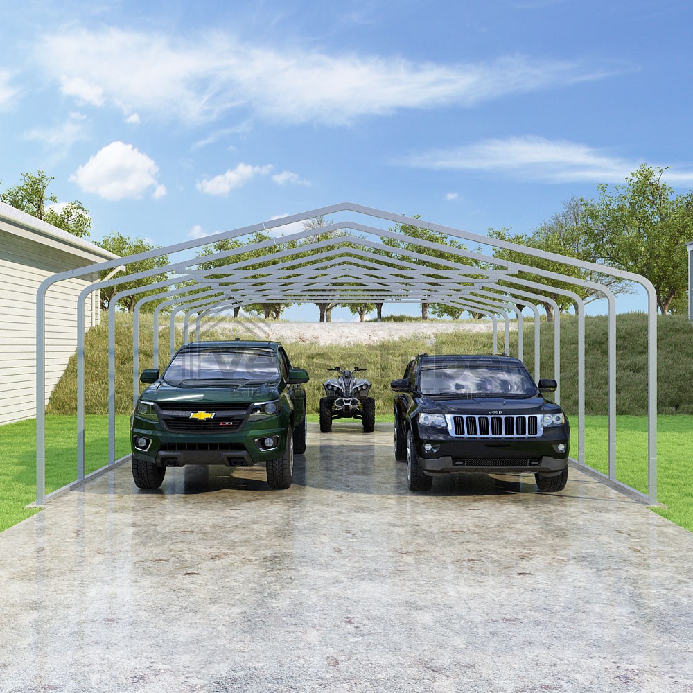 Classic Series DIY carport frame kit is designed for horizontal sheet metal application, resulting in a more cost-effective shelter or canopy solution. The rounded bends allow the sheet metal to naturally roll over the sides ensuring additional protection from elements entering from the sides.