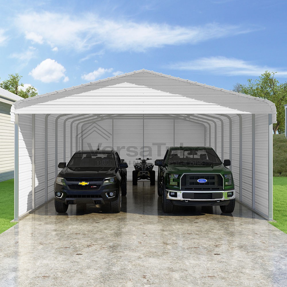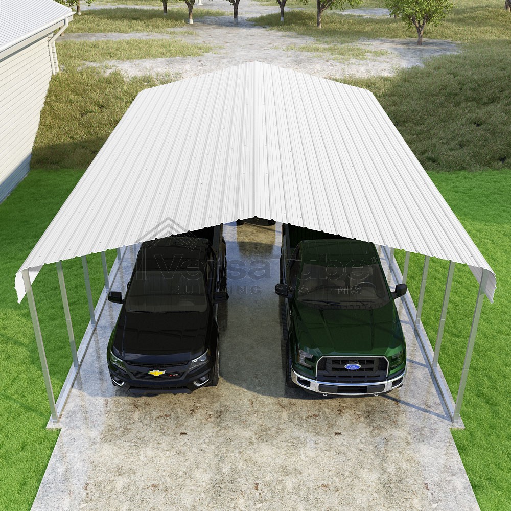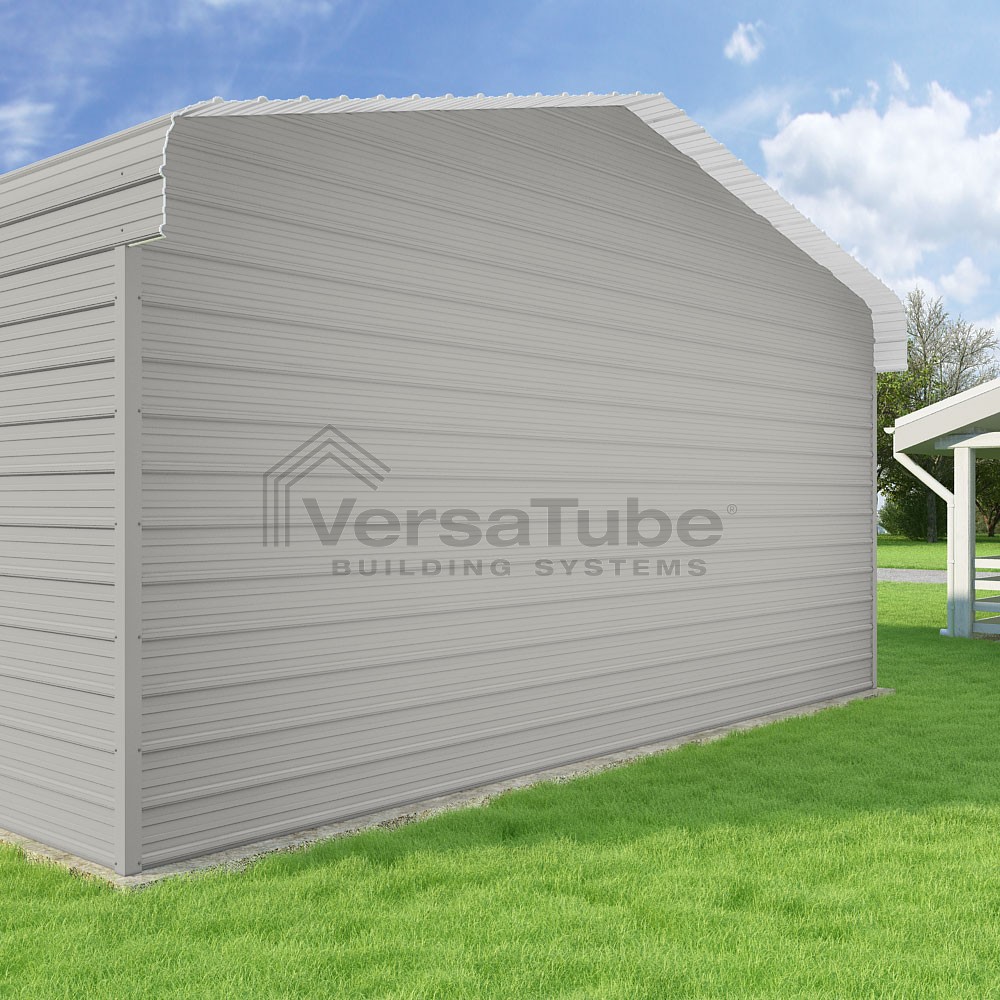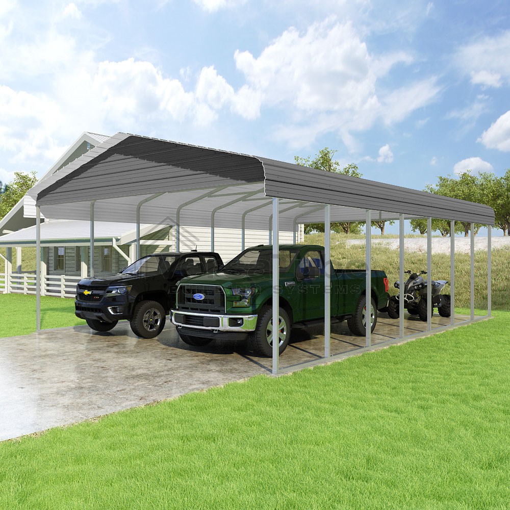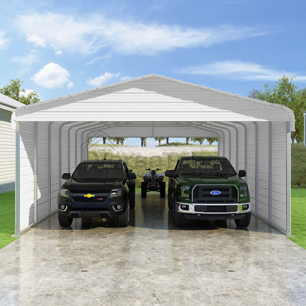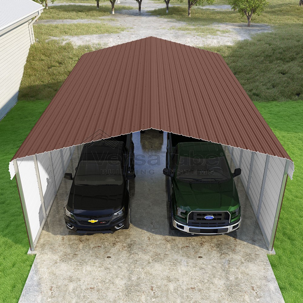 Classic Series DIY carport kit features horizontal application of sheet metal panels with the extra protection of rounded eaves.