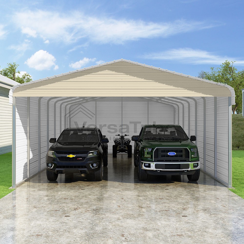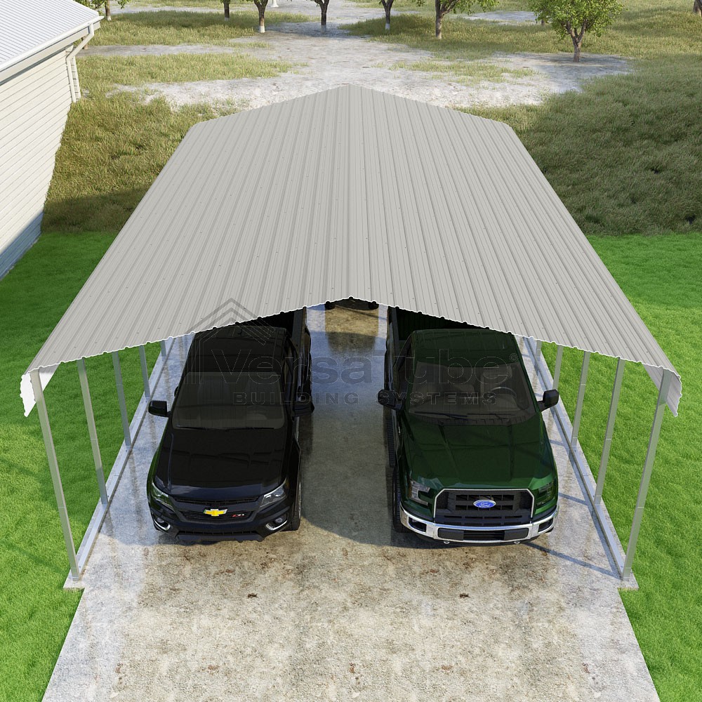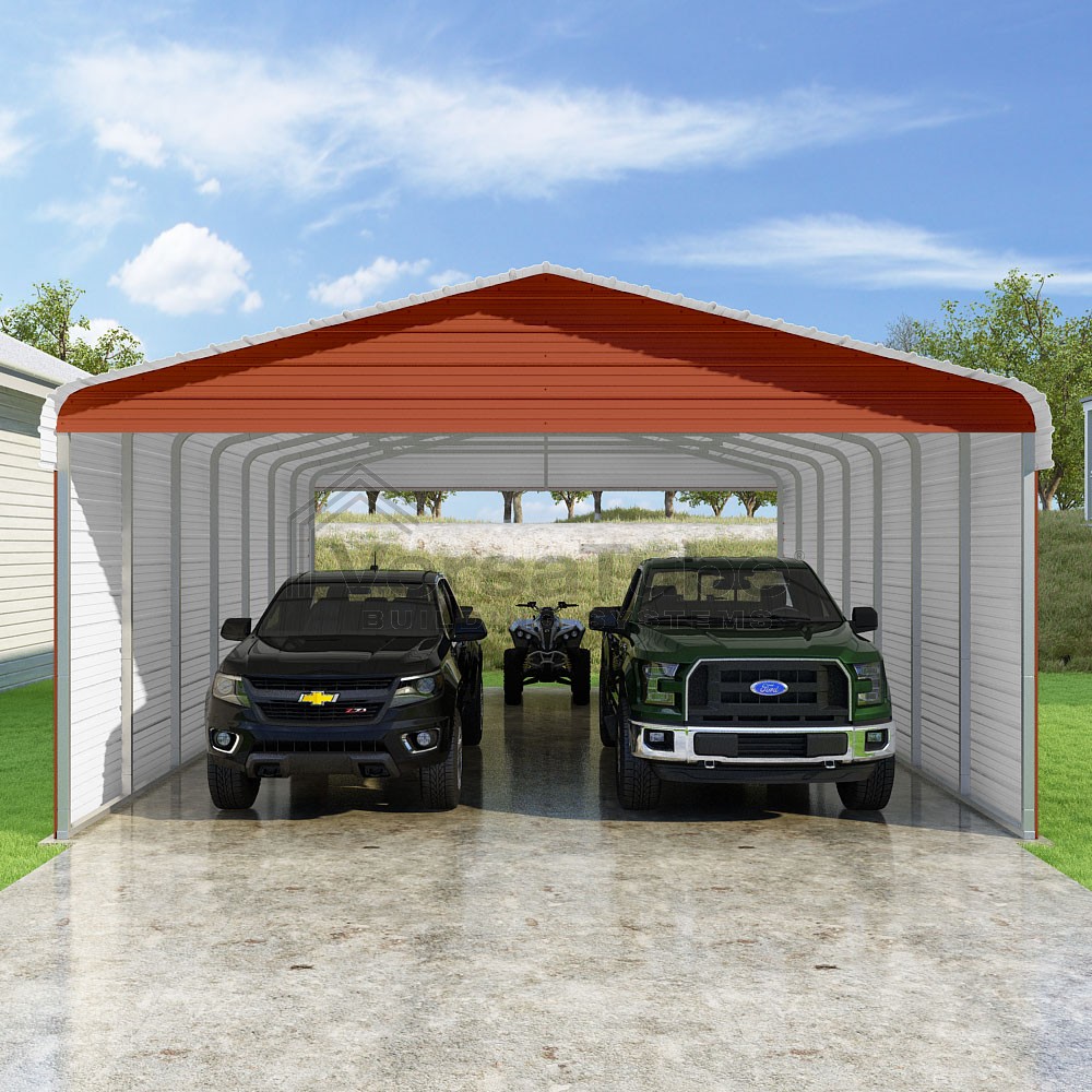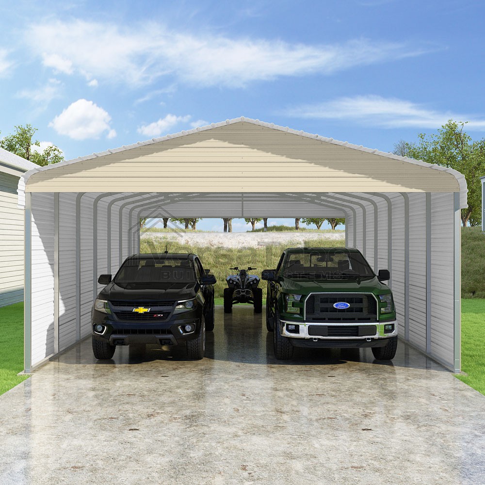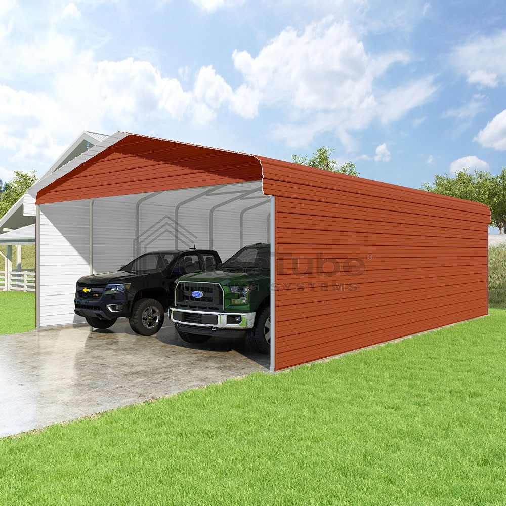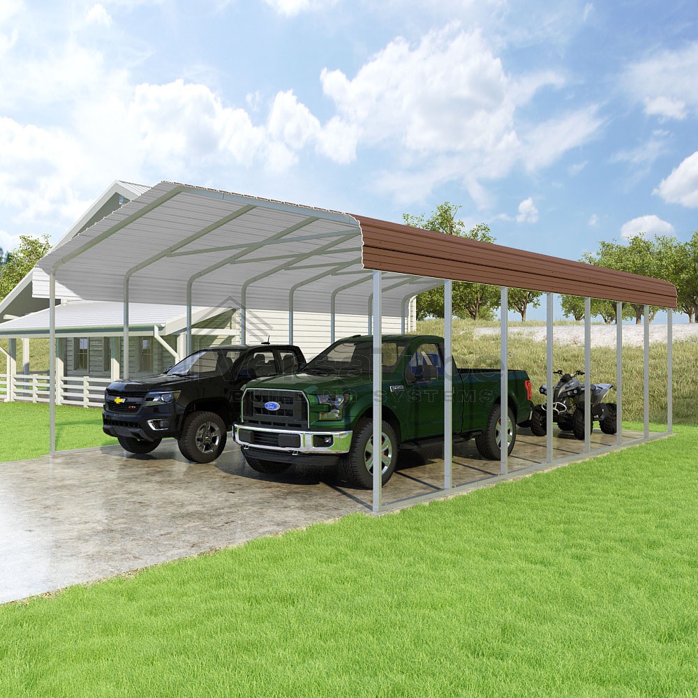 Classic Series DIY carport kit features horizontal application of sheet metal panels with the extra protection of rounded eaves.