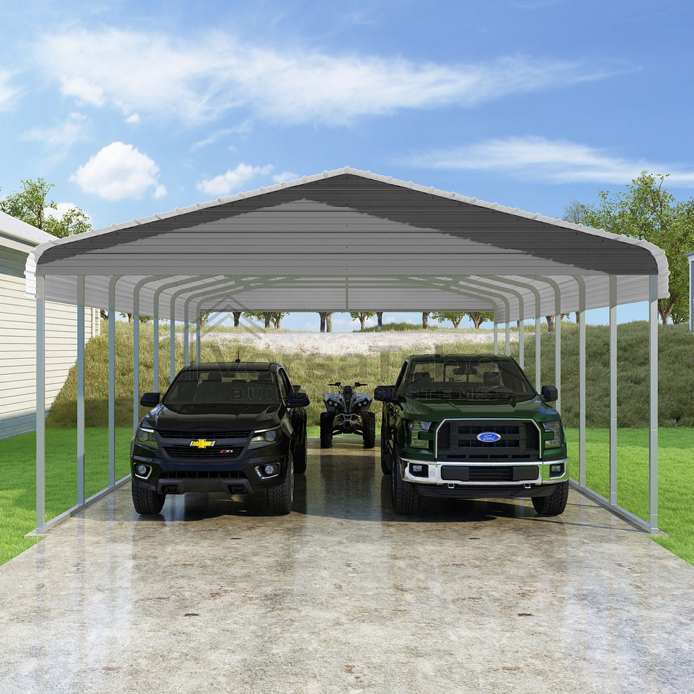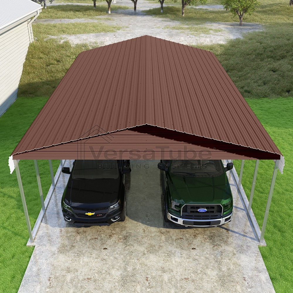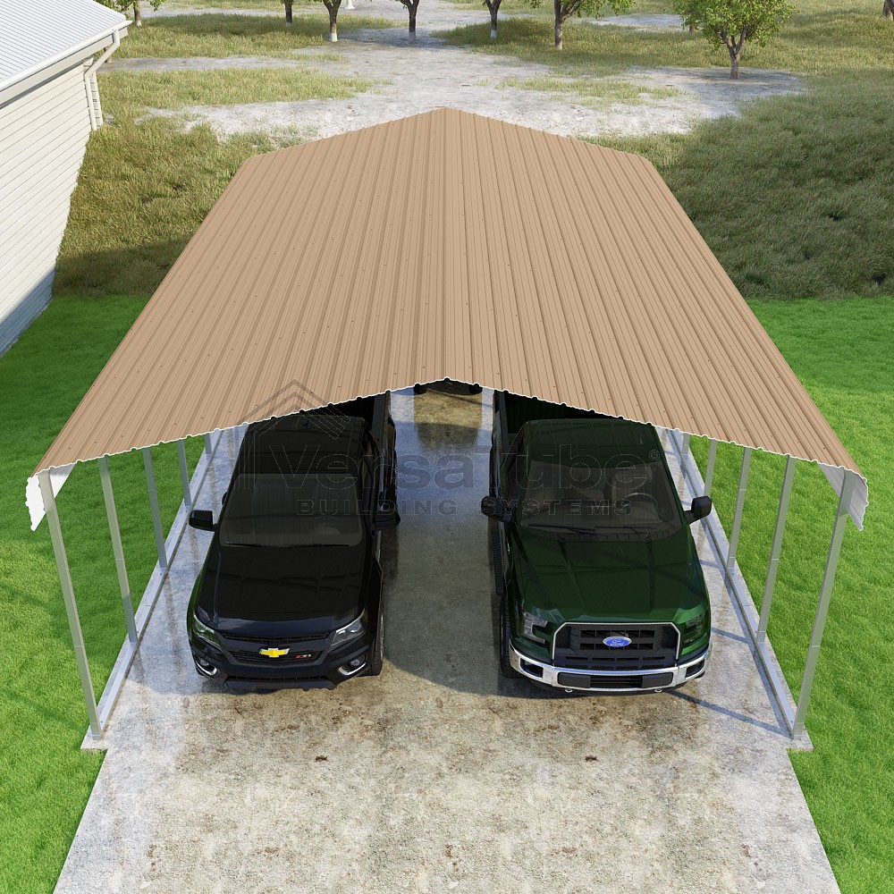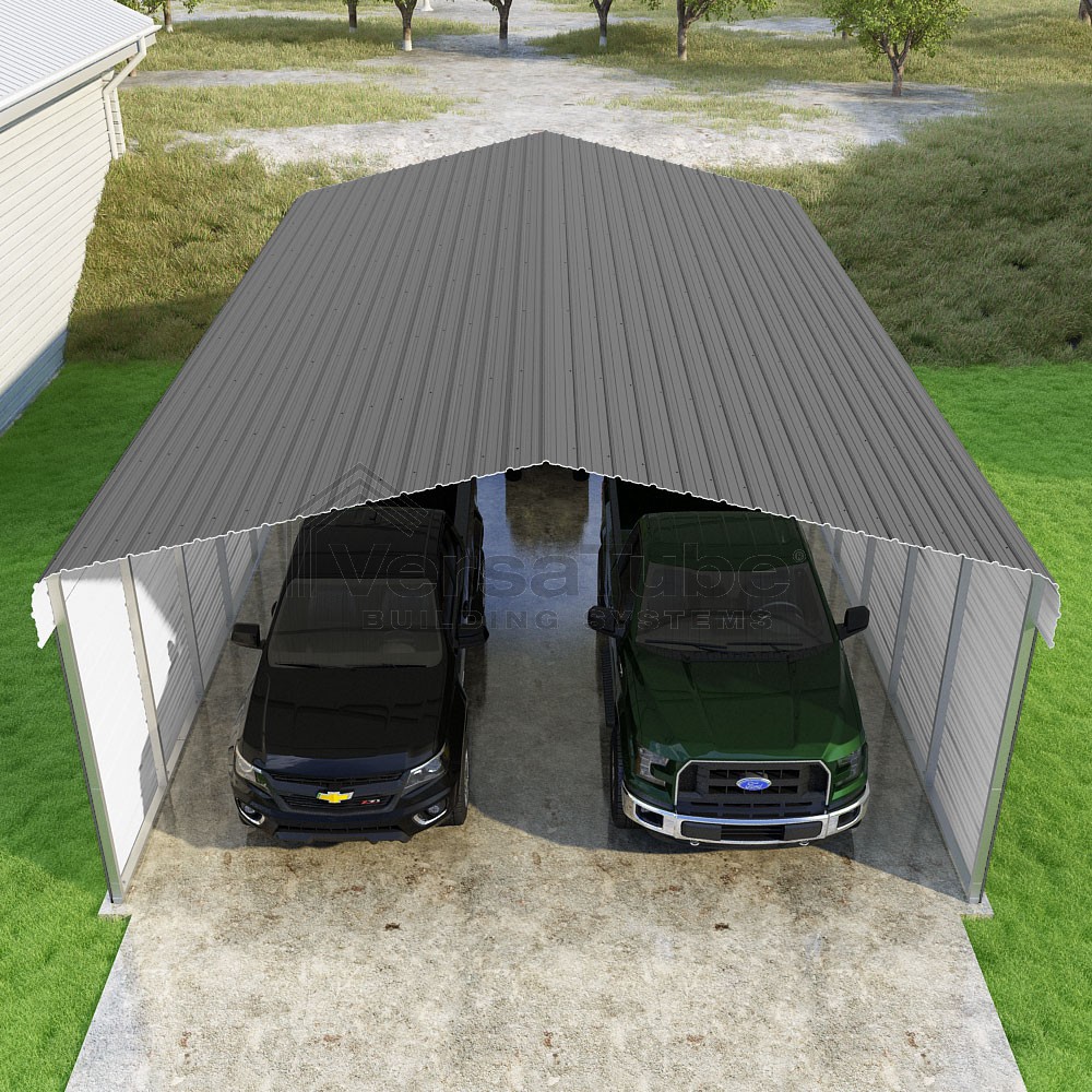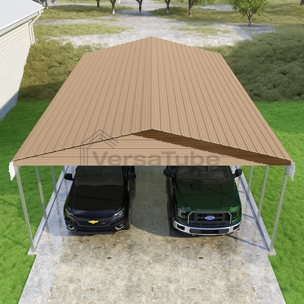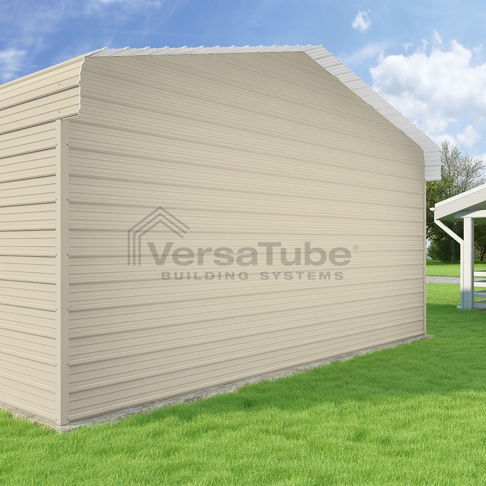 Classic Series DIY carport kit features horizontal application of sheet metal panels with the extra protection of rounded eaves.