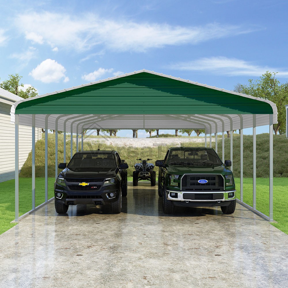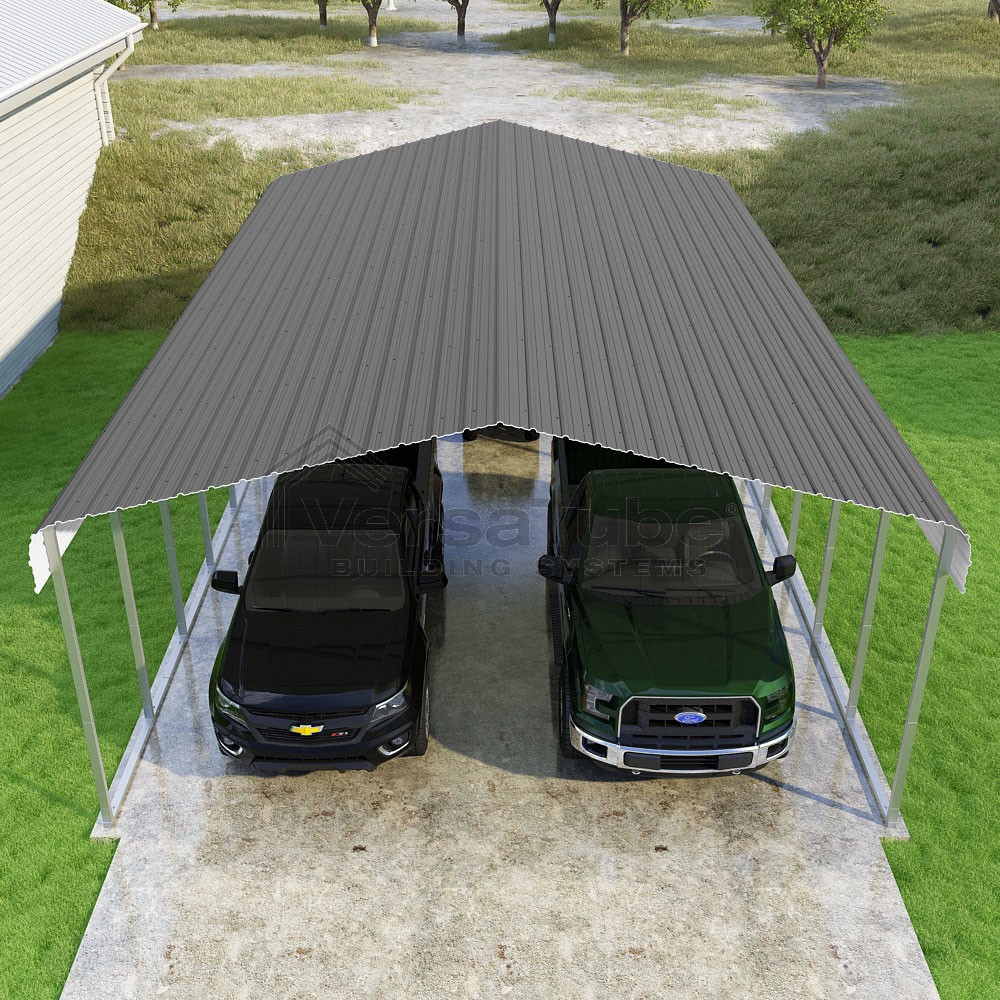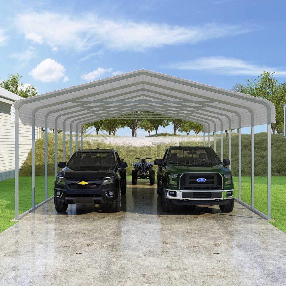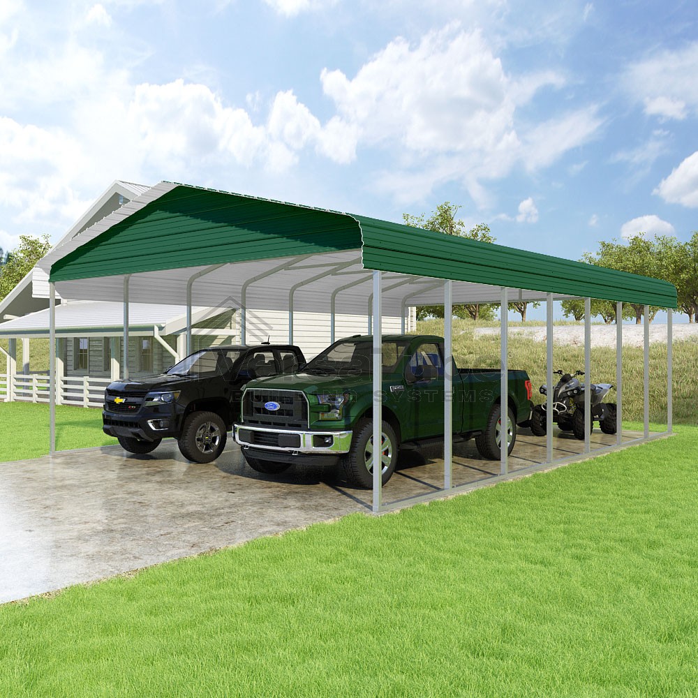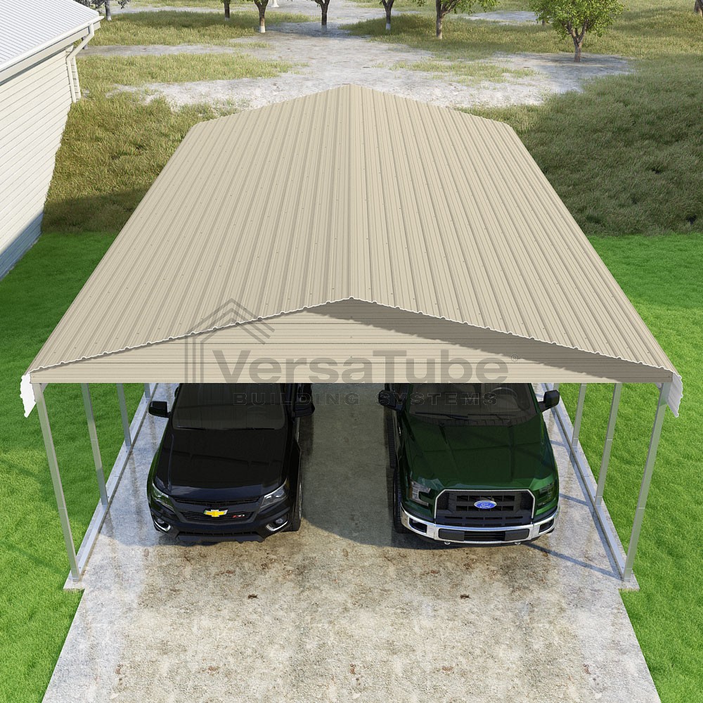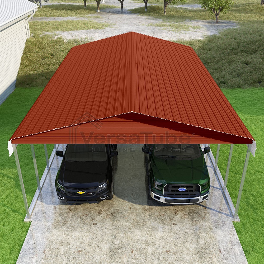 Classic Series DIY carport kit features horizontal application of sheet metal panels with the extra protection of rounded eaves.