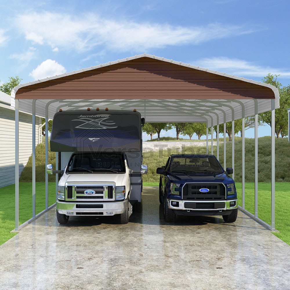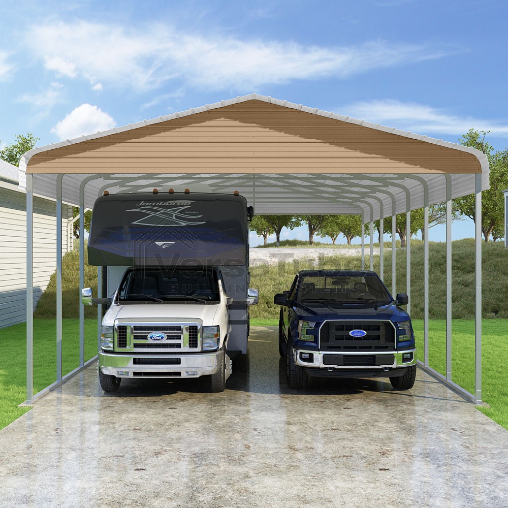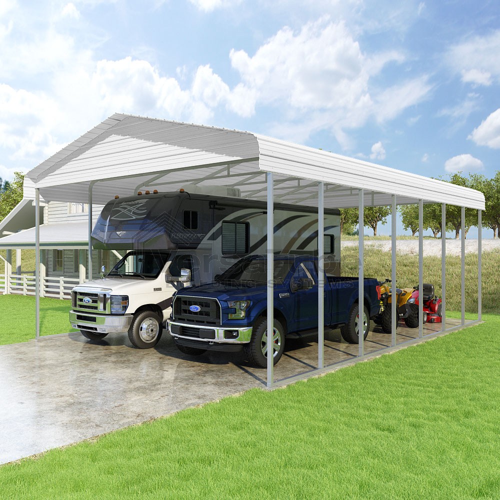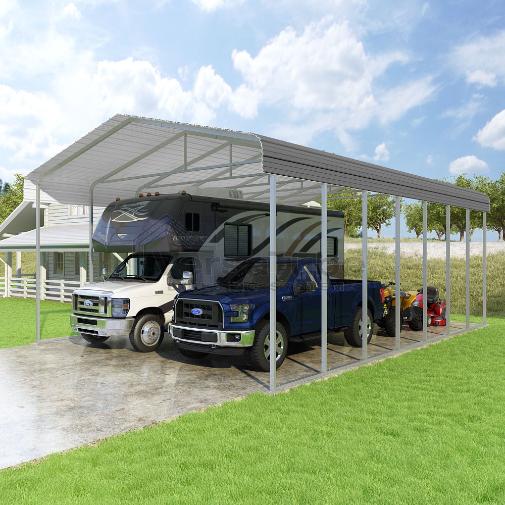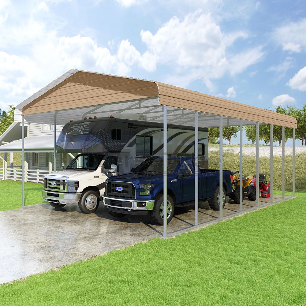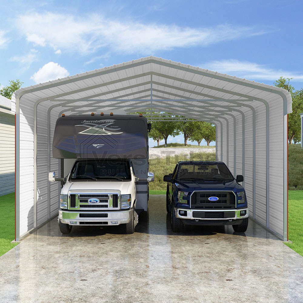 Classic Series DIY carport kit features horizontal application of sheet metal panels with the extra protection of rounded eaves.