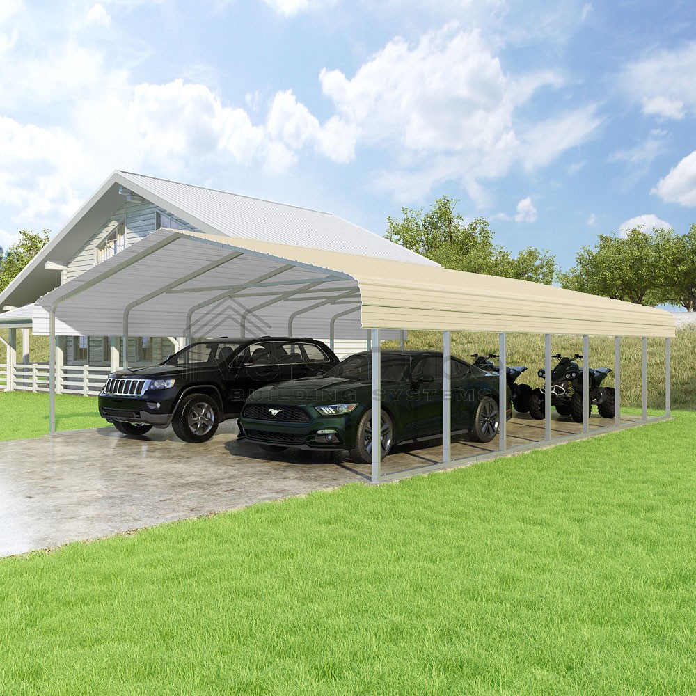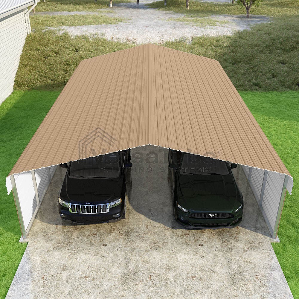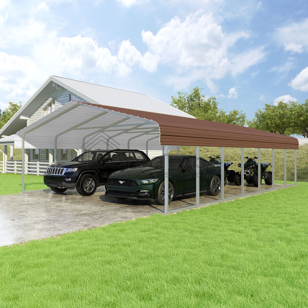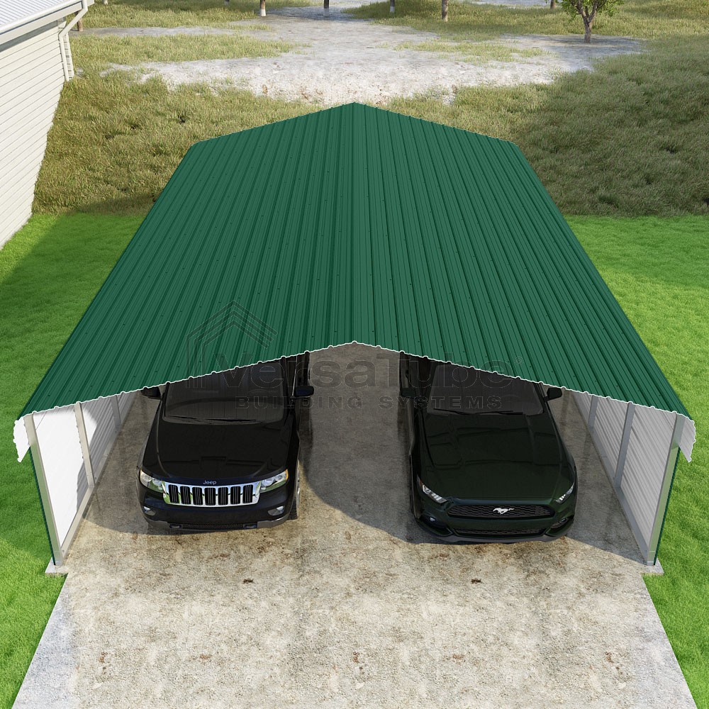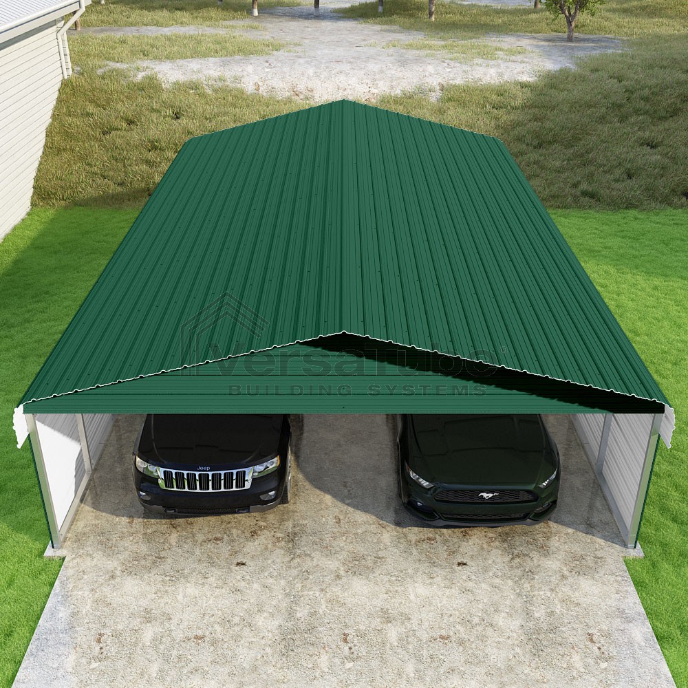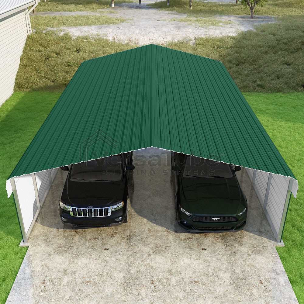 Classic Series DIY carport kit features horizontal application of sheet metal panels with the extra protection of rounded eaves.