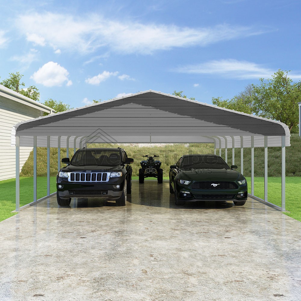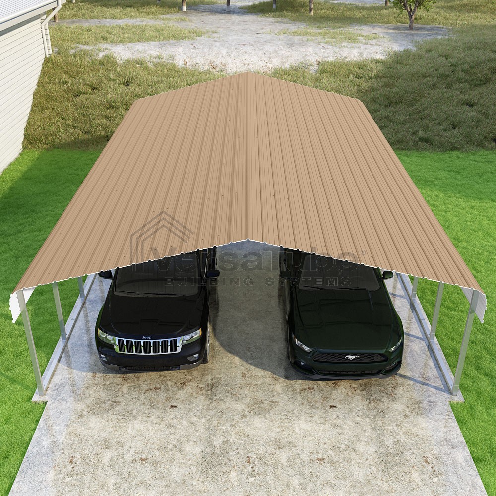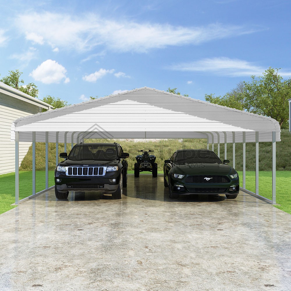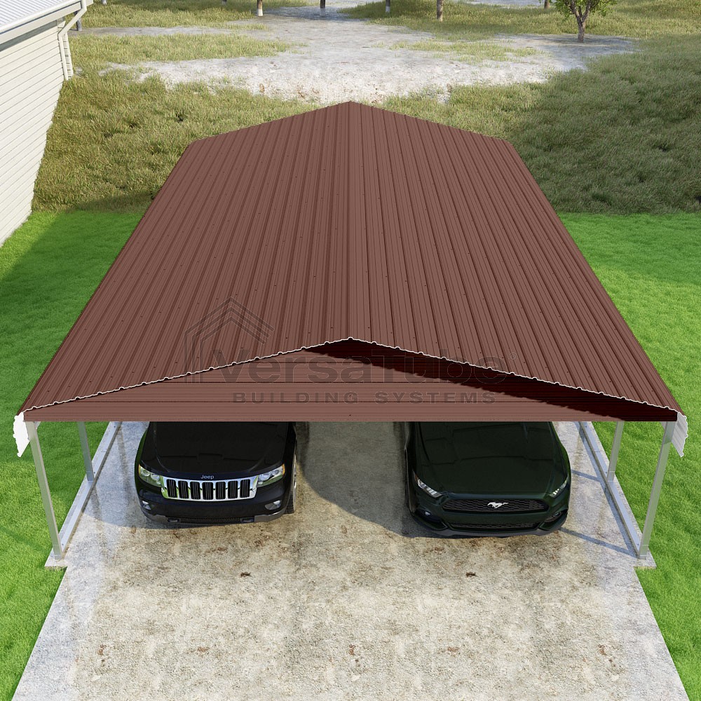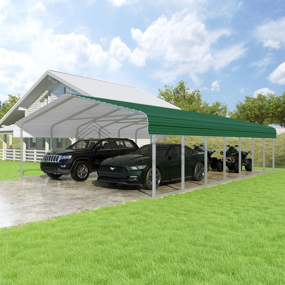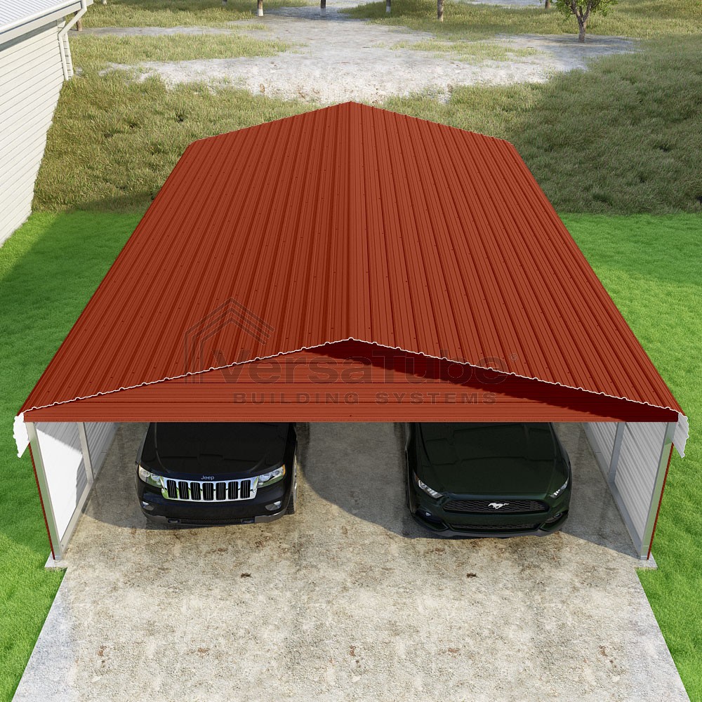 Classic Series DIY carport kit features horizontal application of sheet metal panels with the extra protection of rounded eaves.