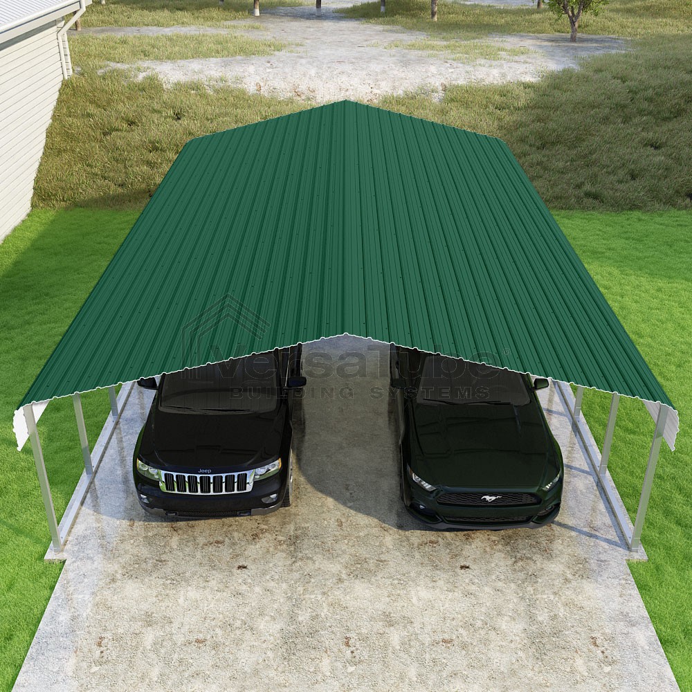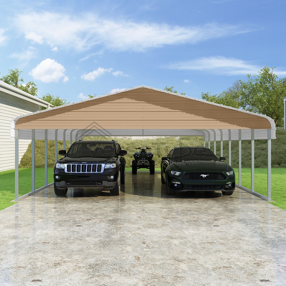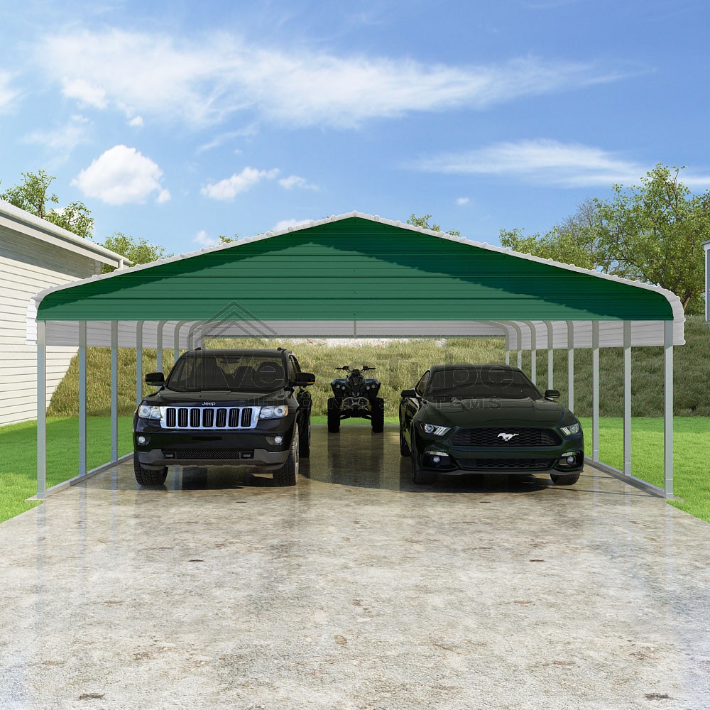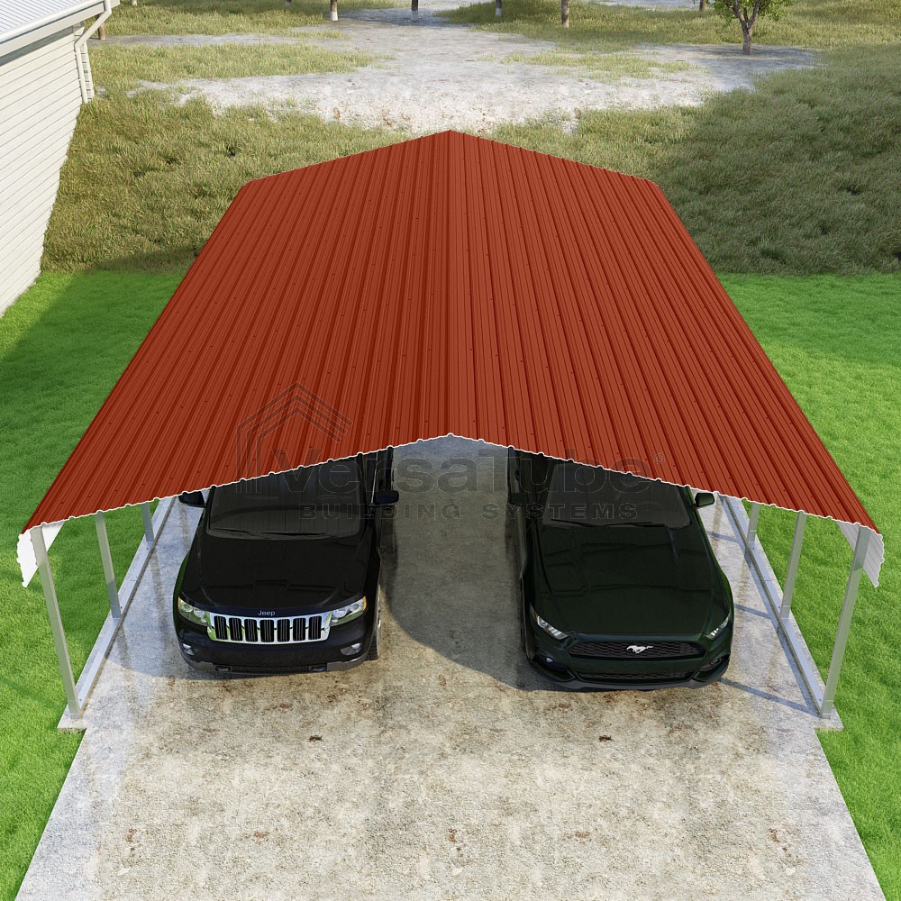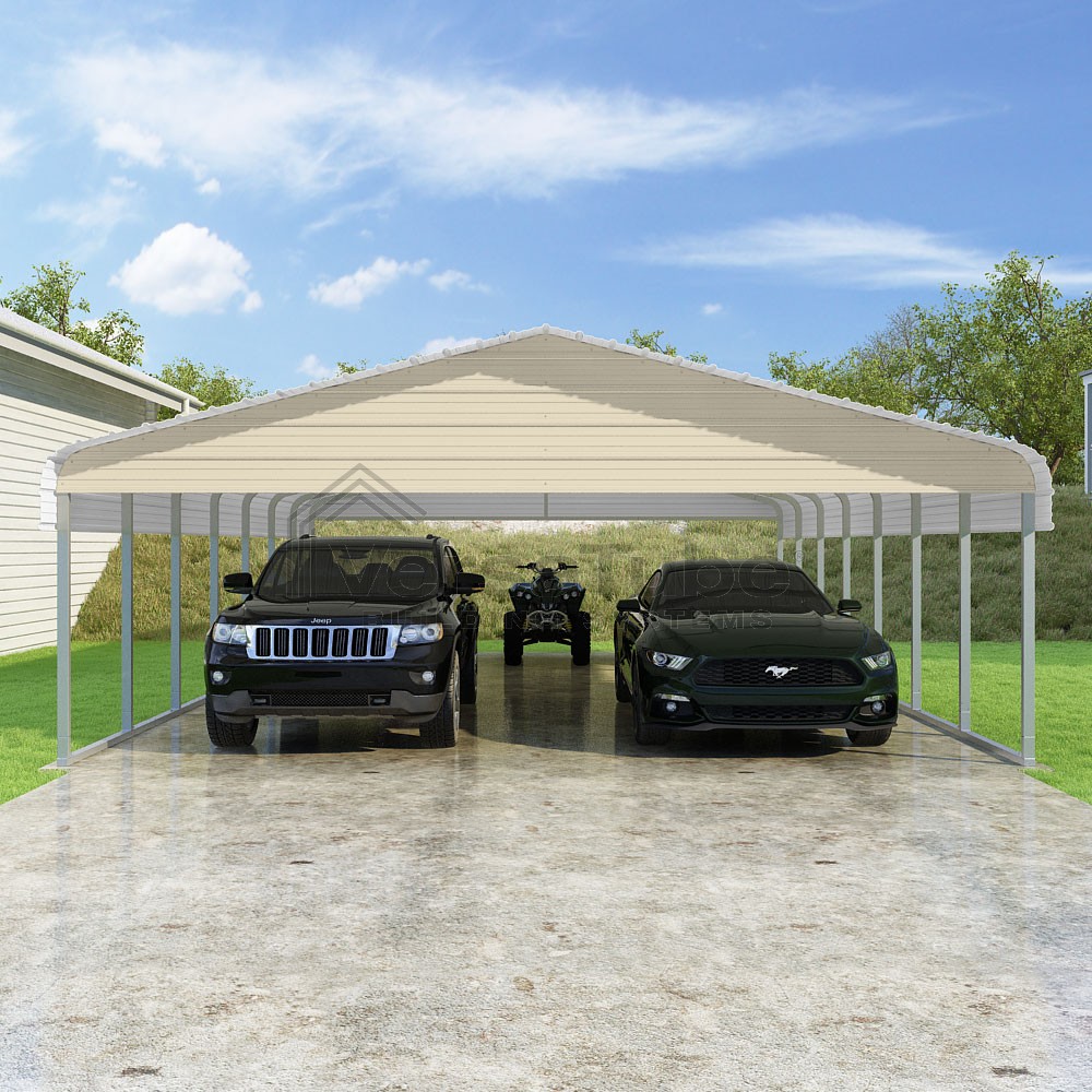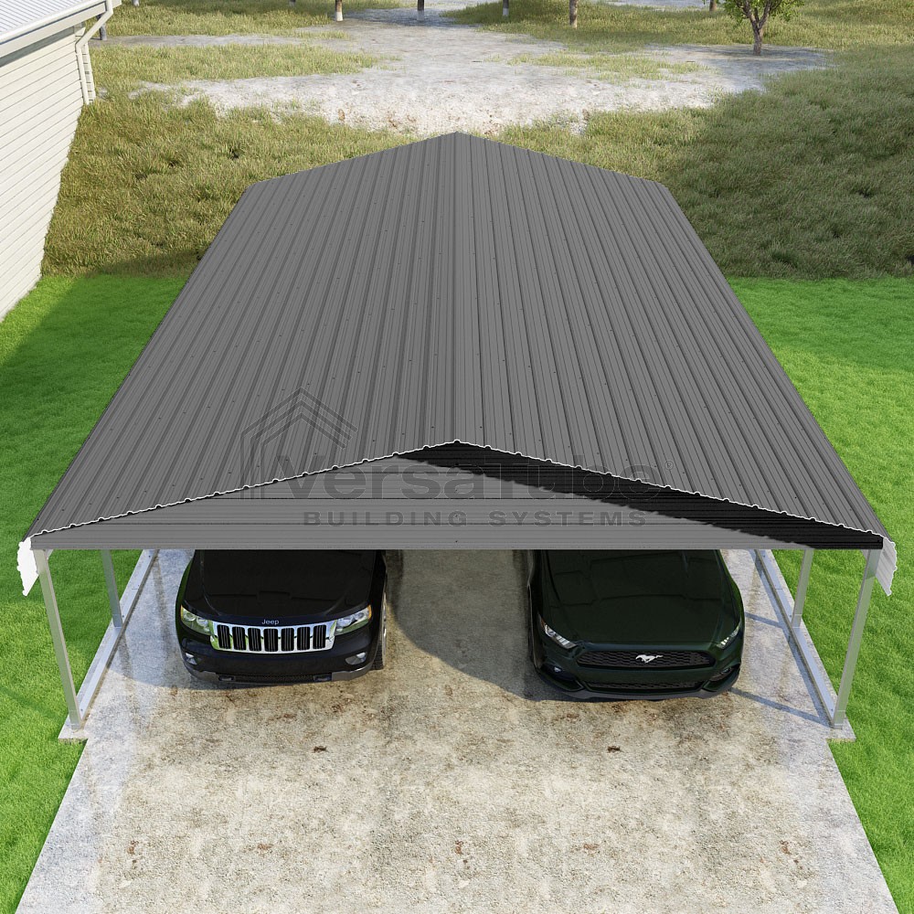 Classic Series DIY carport kit features horizontal application of sheet metal panels with the extra protection of rounded eaves.