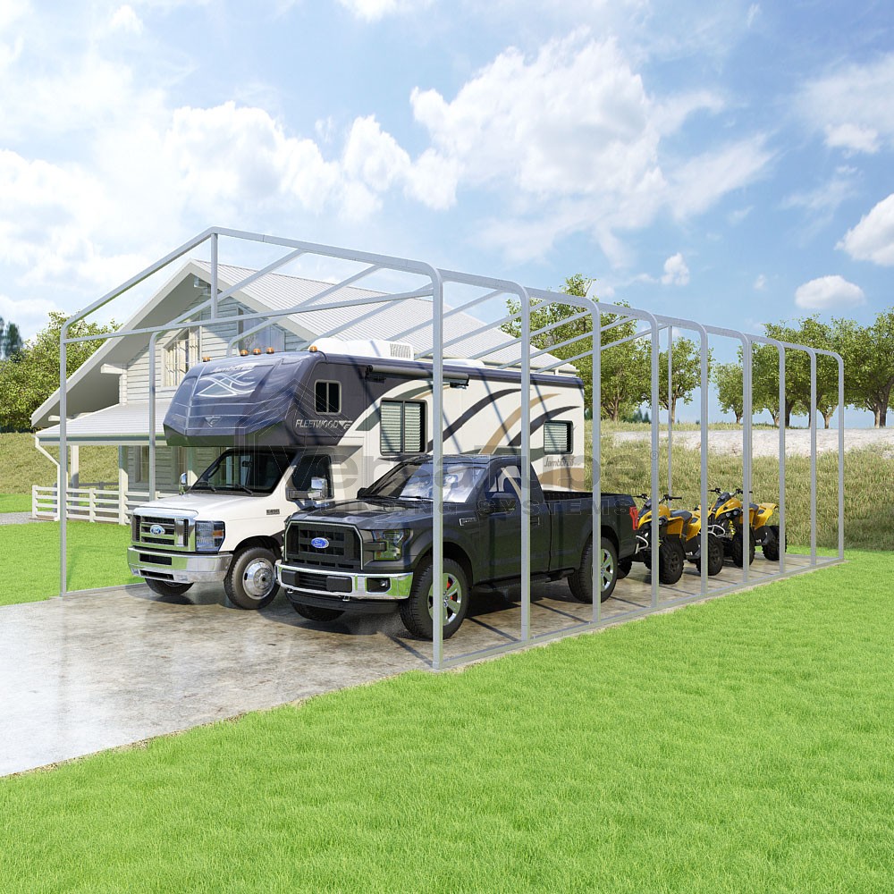 Classic Series DIY carport frame kit is designed for horizontal sheet metal application, resulting in a more cost-effective shelter or canopy solution. The rounded bends allow the sheet metal to naturally roll over the sides ensuring additional protection from elements entering from the sides.
