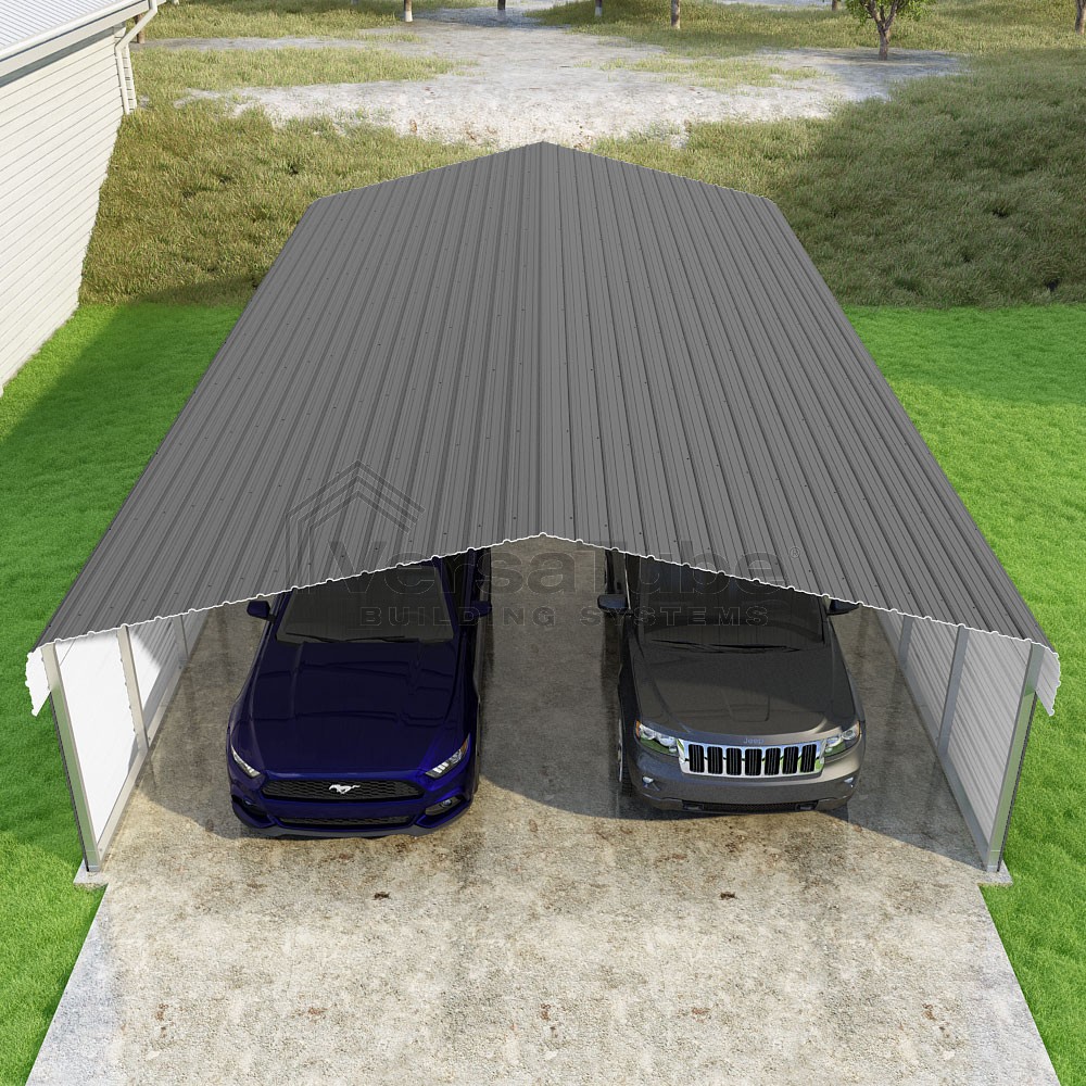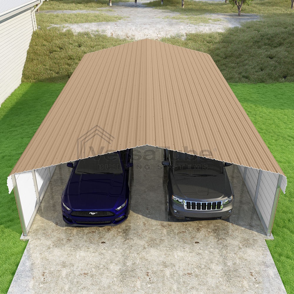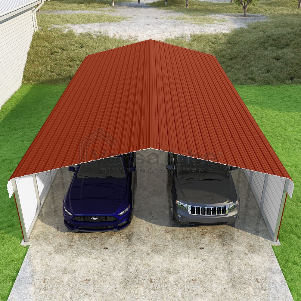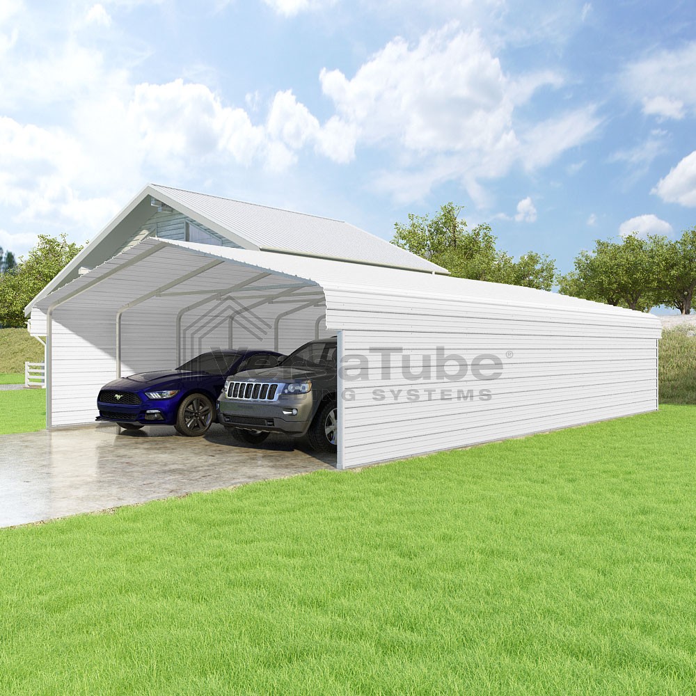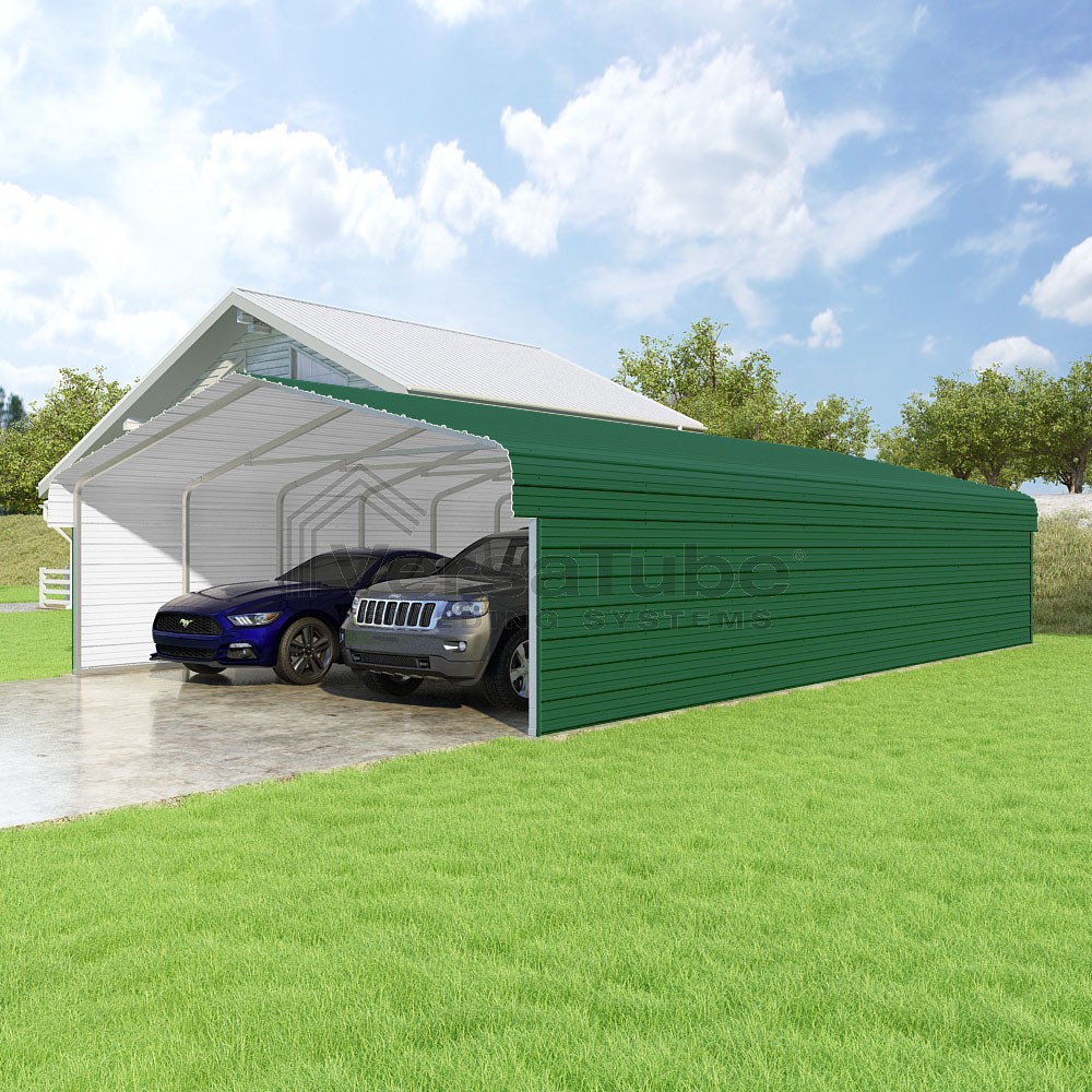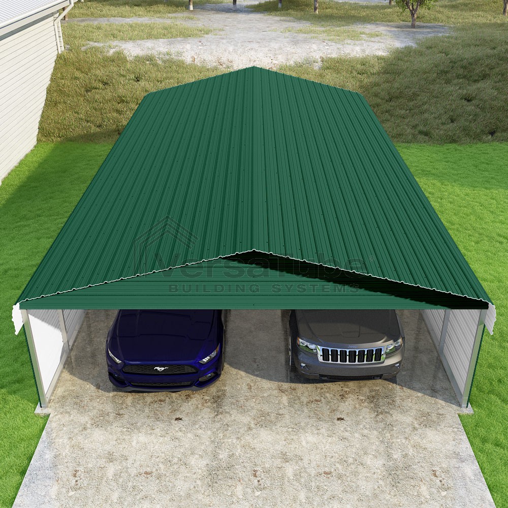Classic Series DIY carport kit features horizontal application of sheet metal panels with the extra protection of rounded eaves.