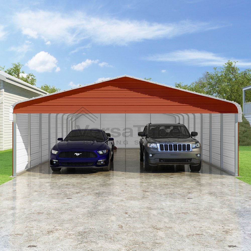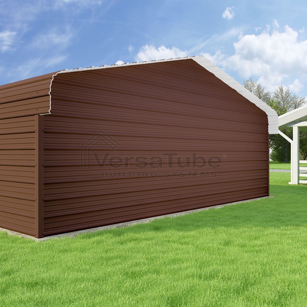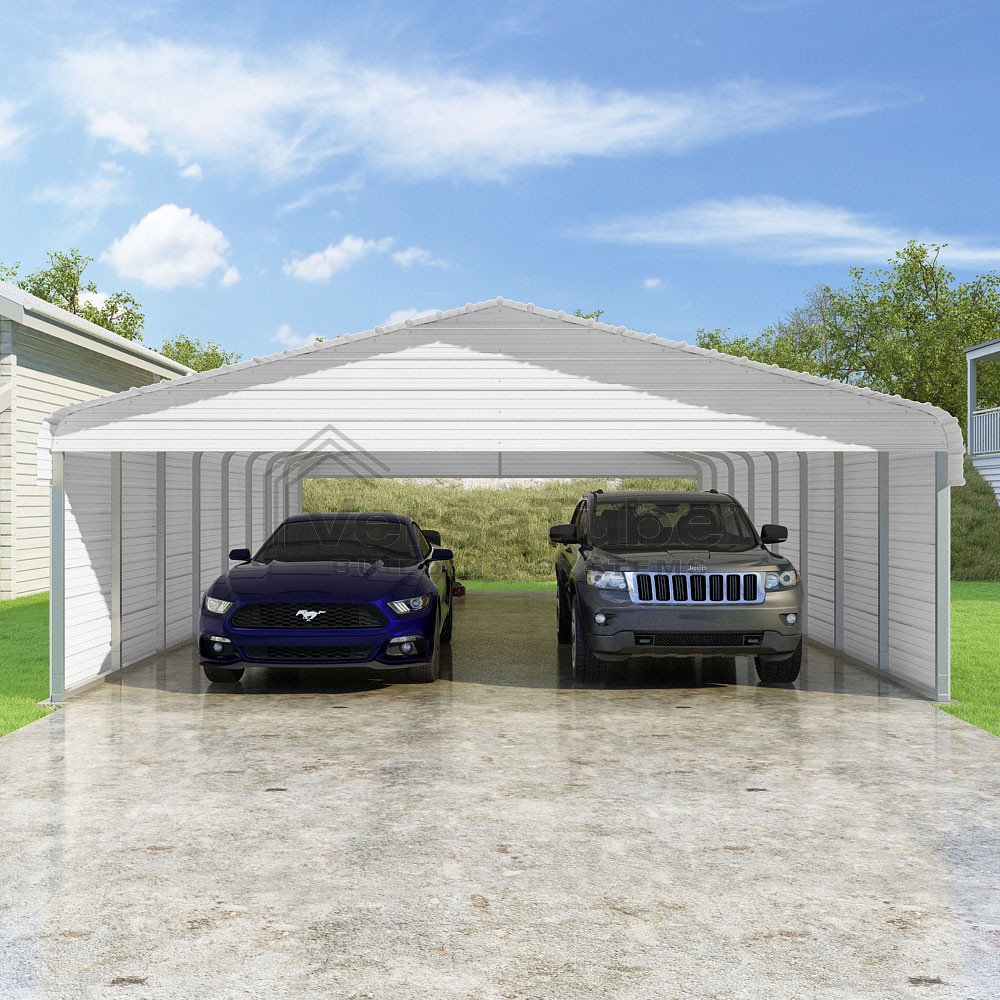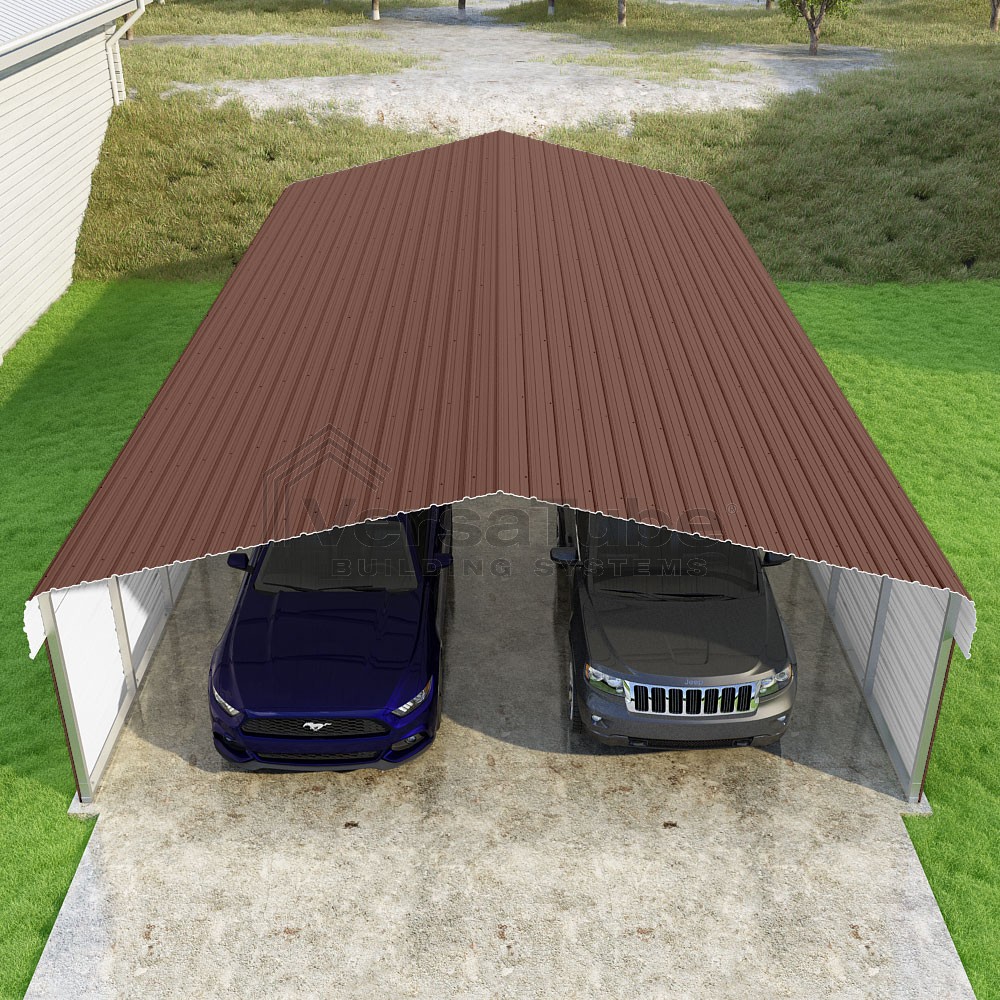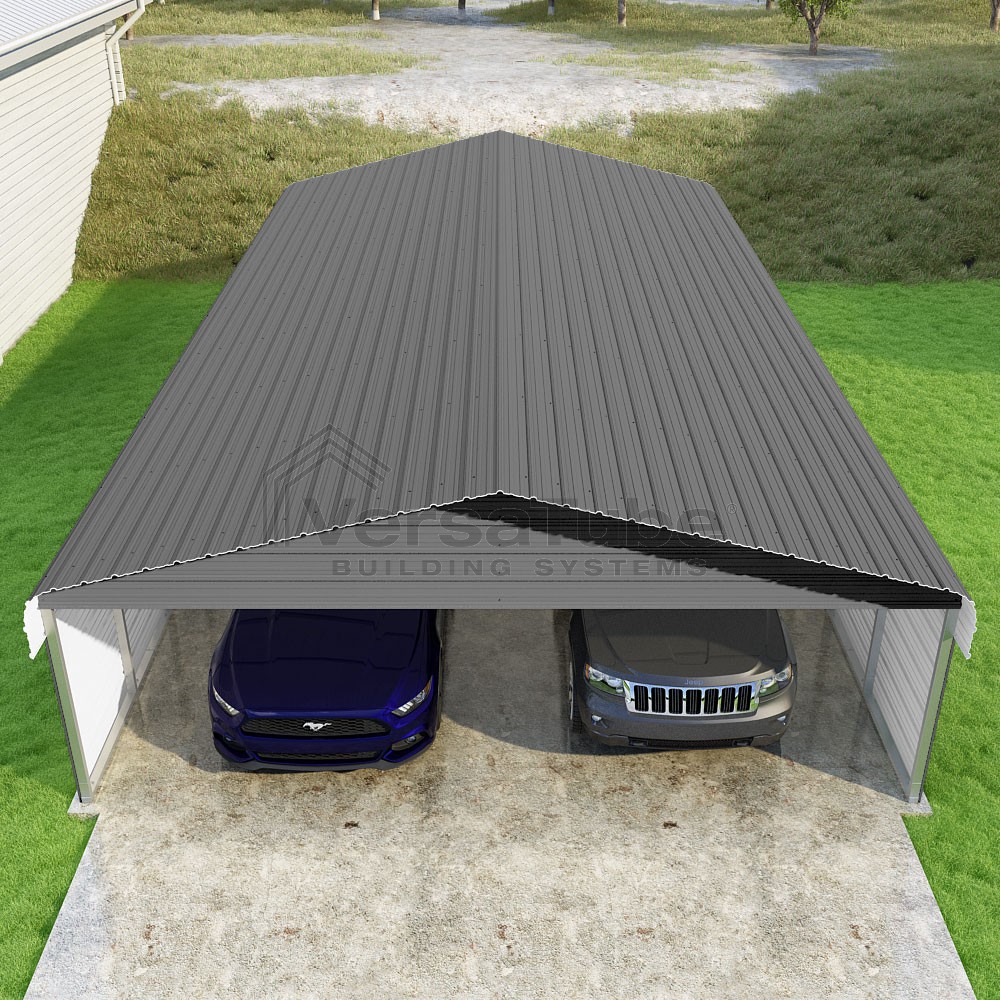 Classic Series DIY carport kit features horizontal application of sheet metal panels with the extra protection of rounded eaves.