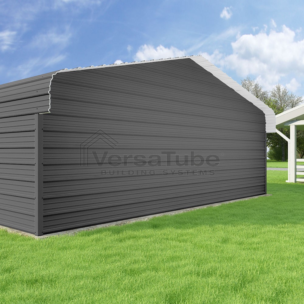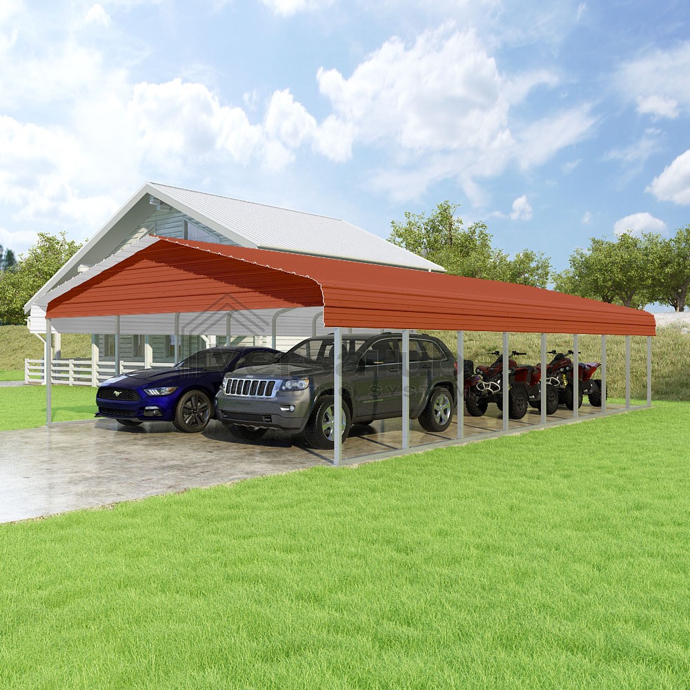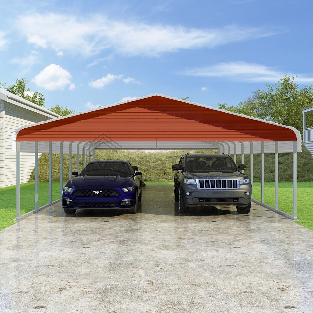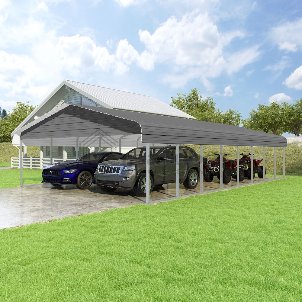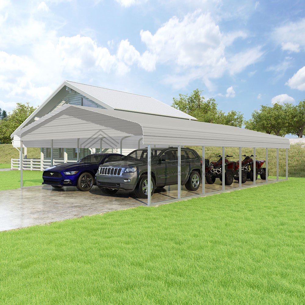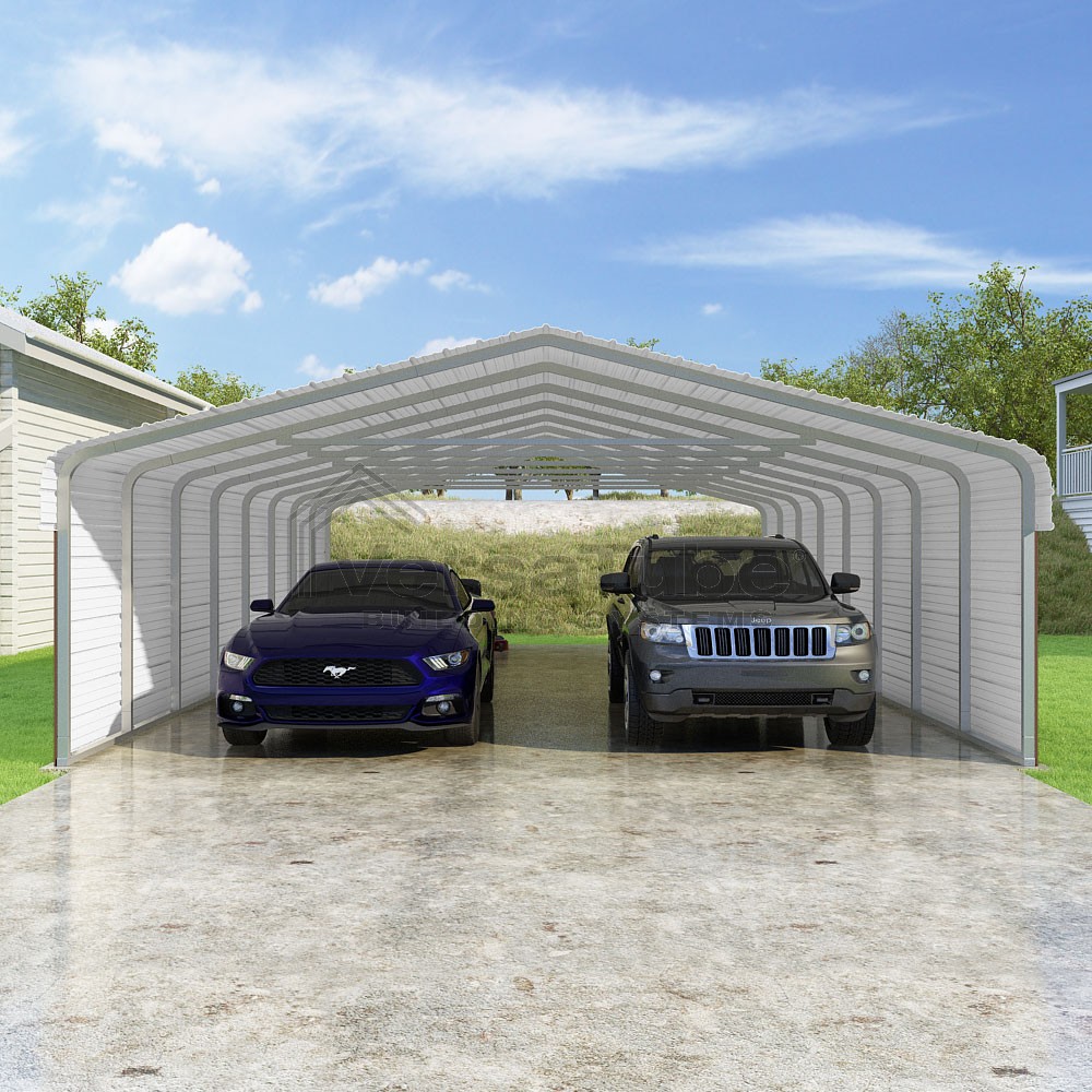 Classic Series DIY carport kit features horizontal application of sheet metal panels with the extra protection of rounded eaves.