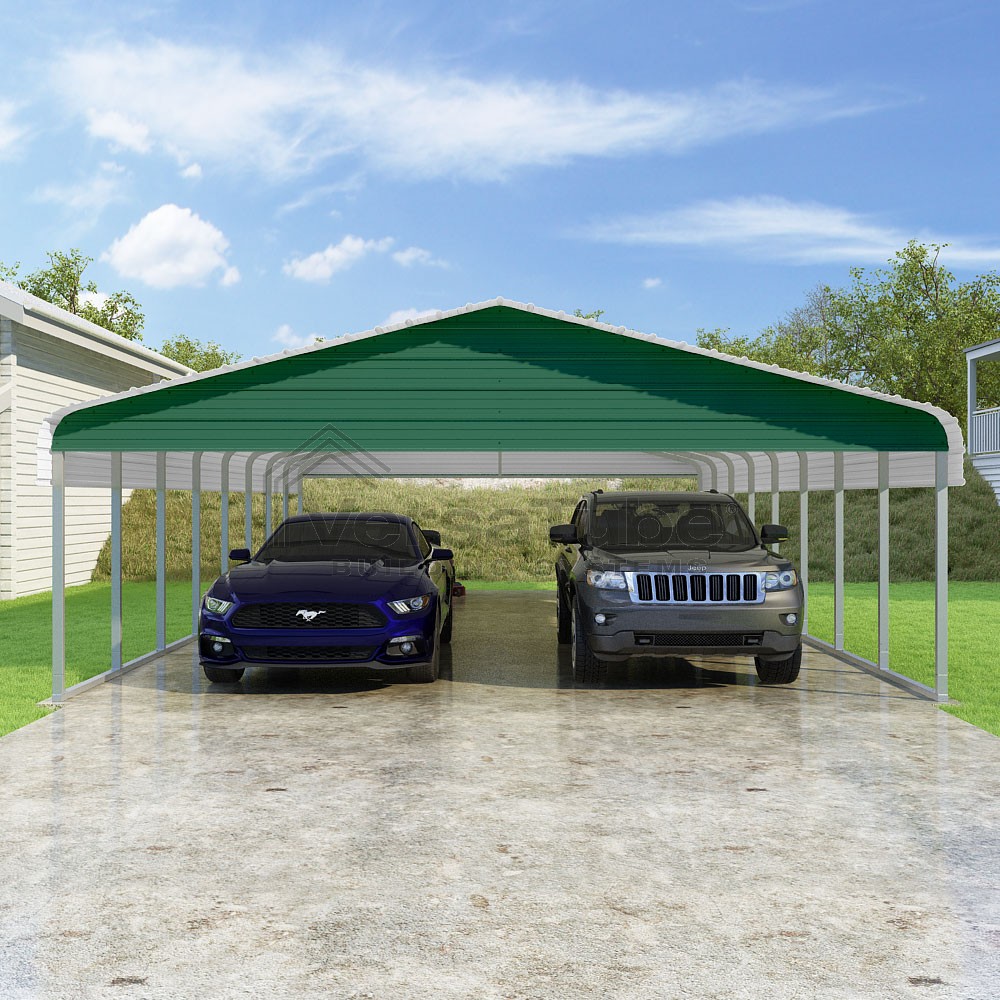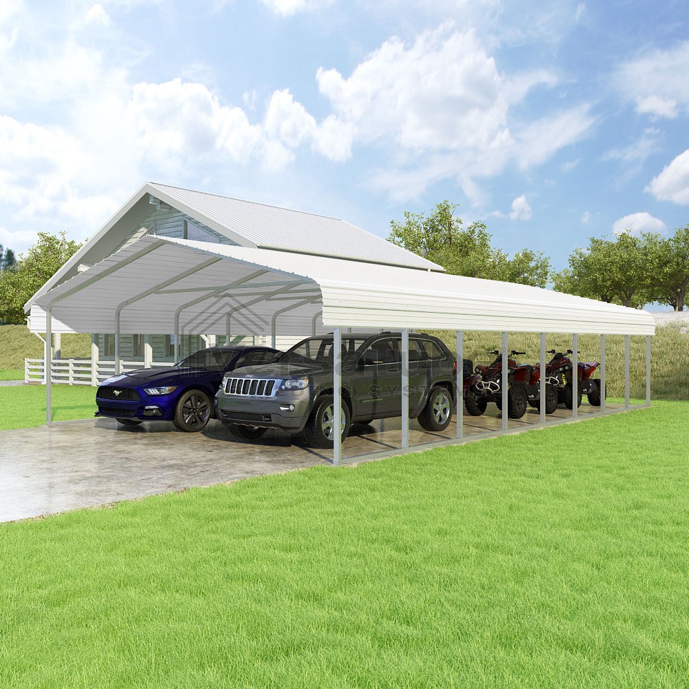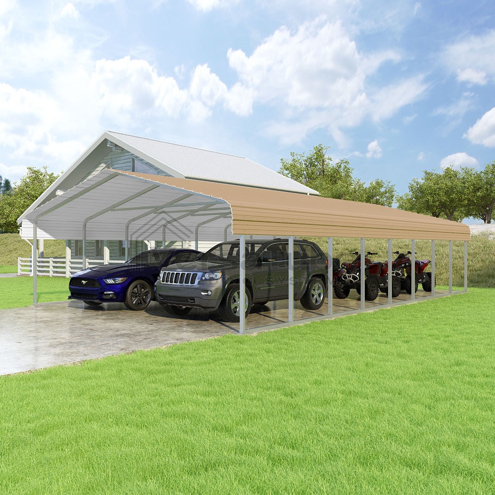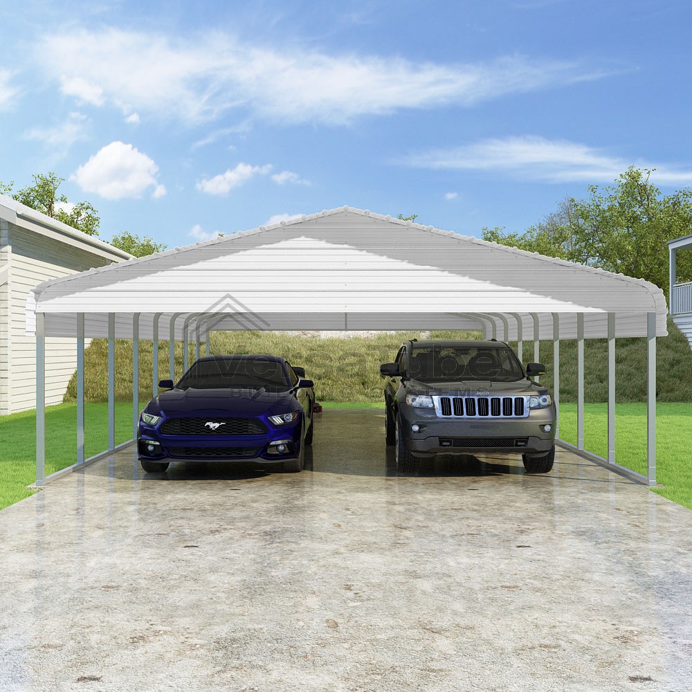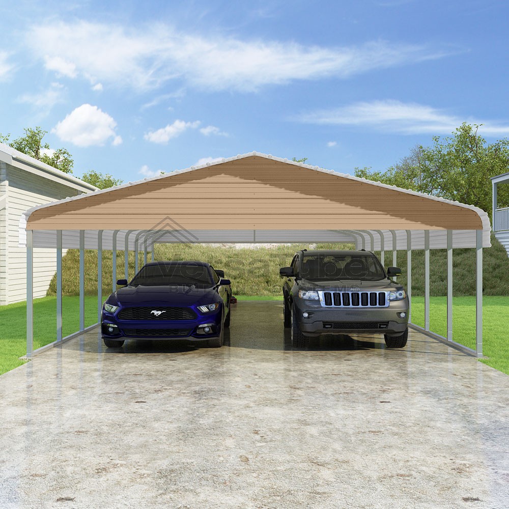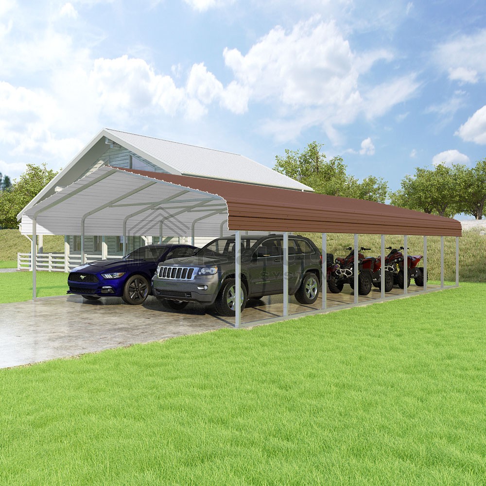 Classic Series DIY carport kit features horizontal application of sheet metal panels with the extra protection of rounded eaves.
