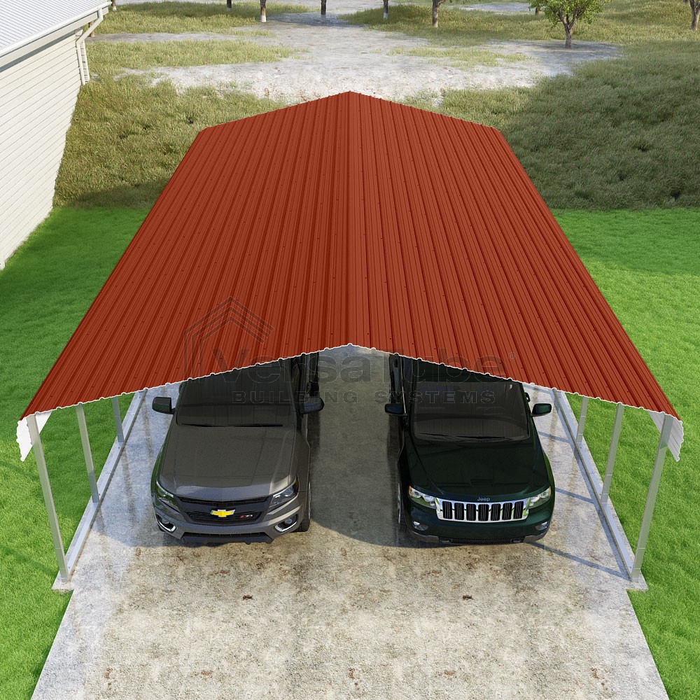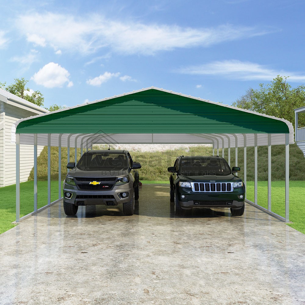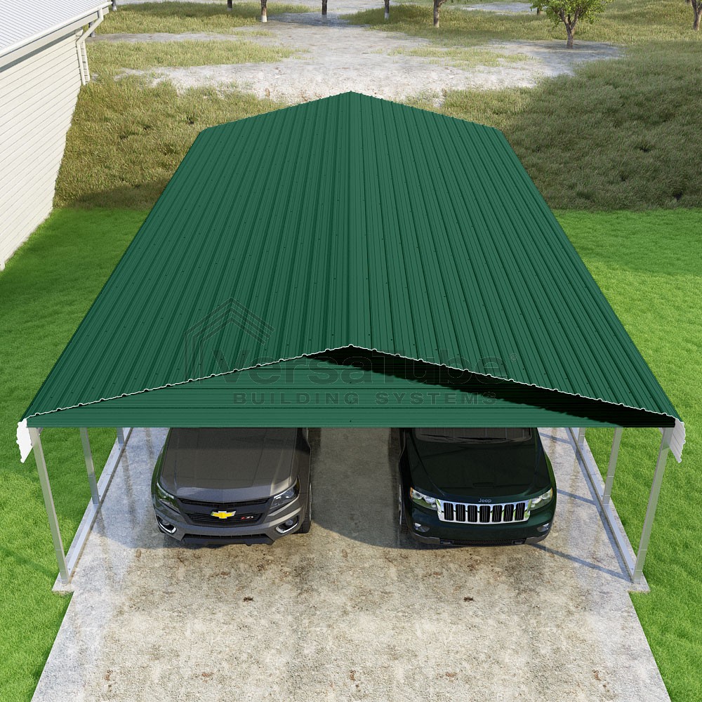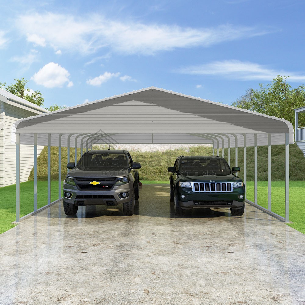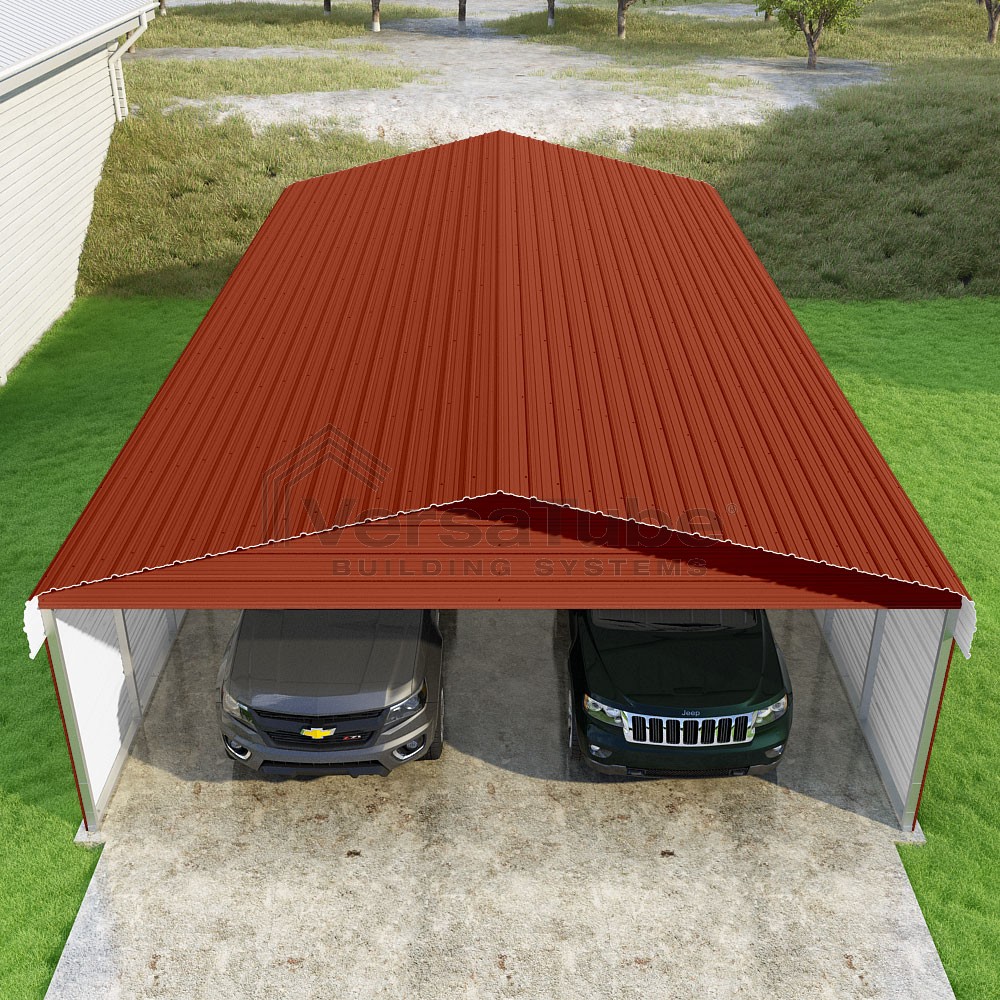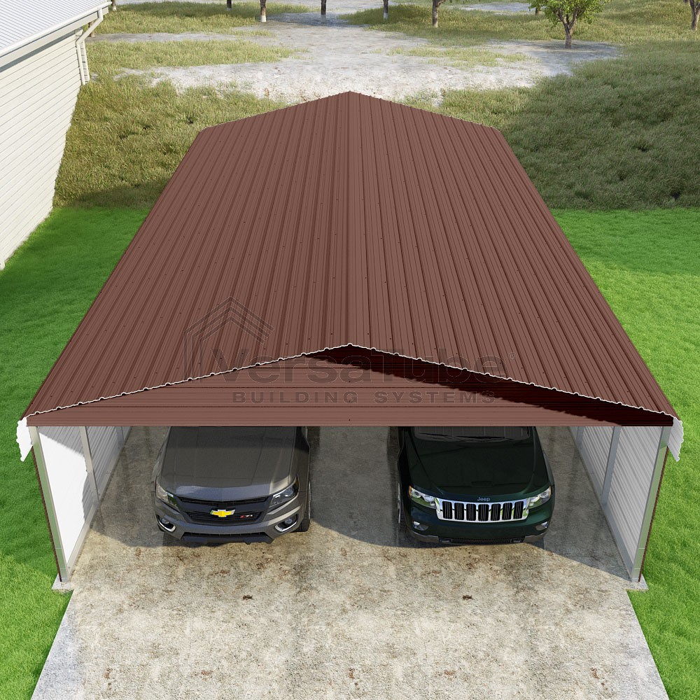 Classic Series DIY carport kit features horizontal application of sheet metal panels with the extra protection of rounded eaves.