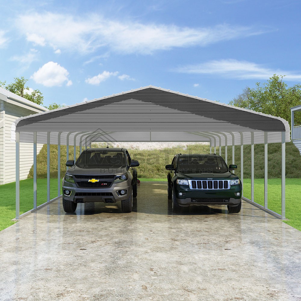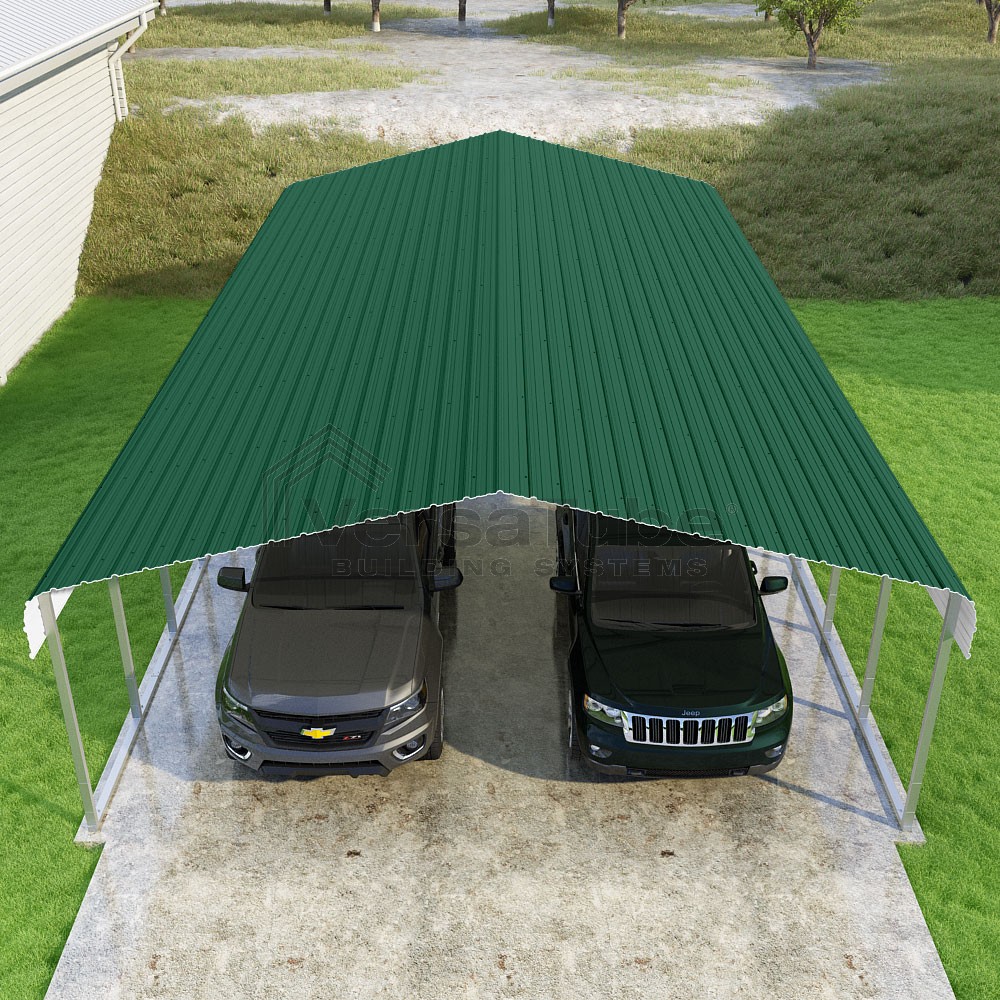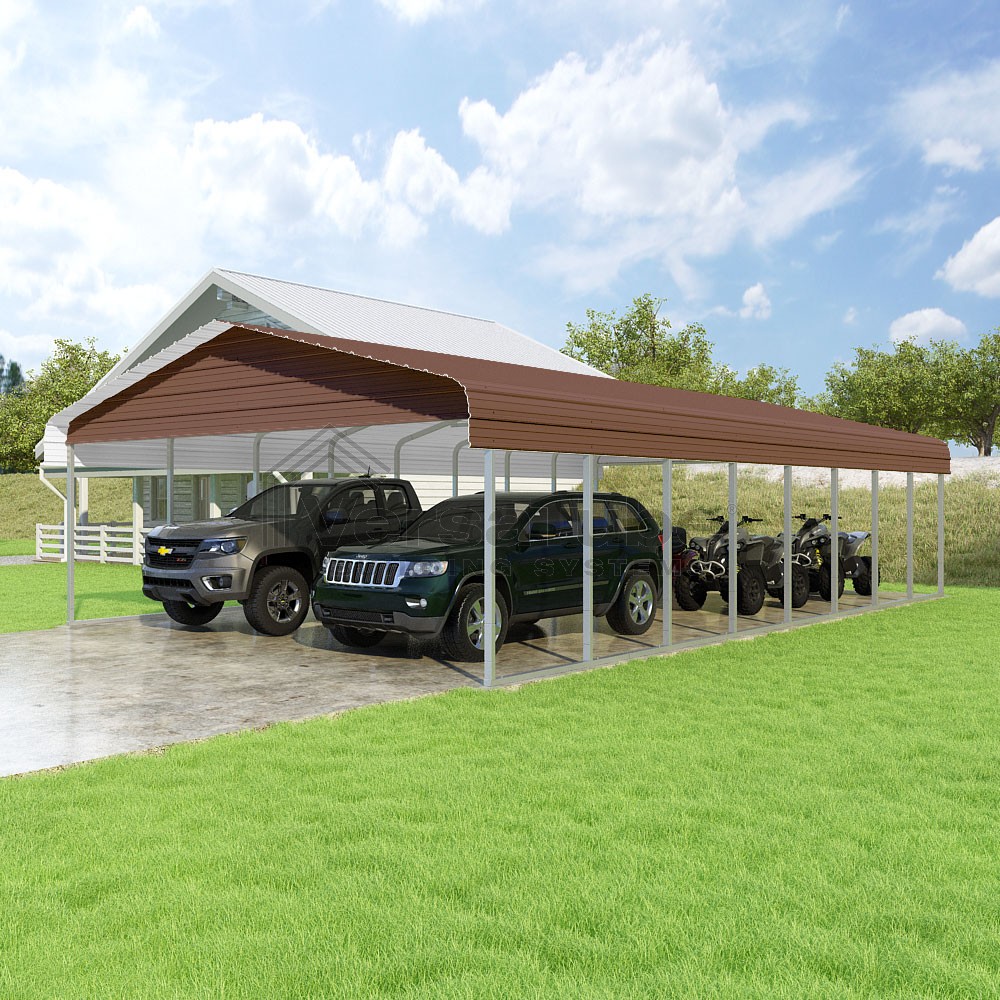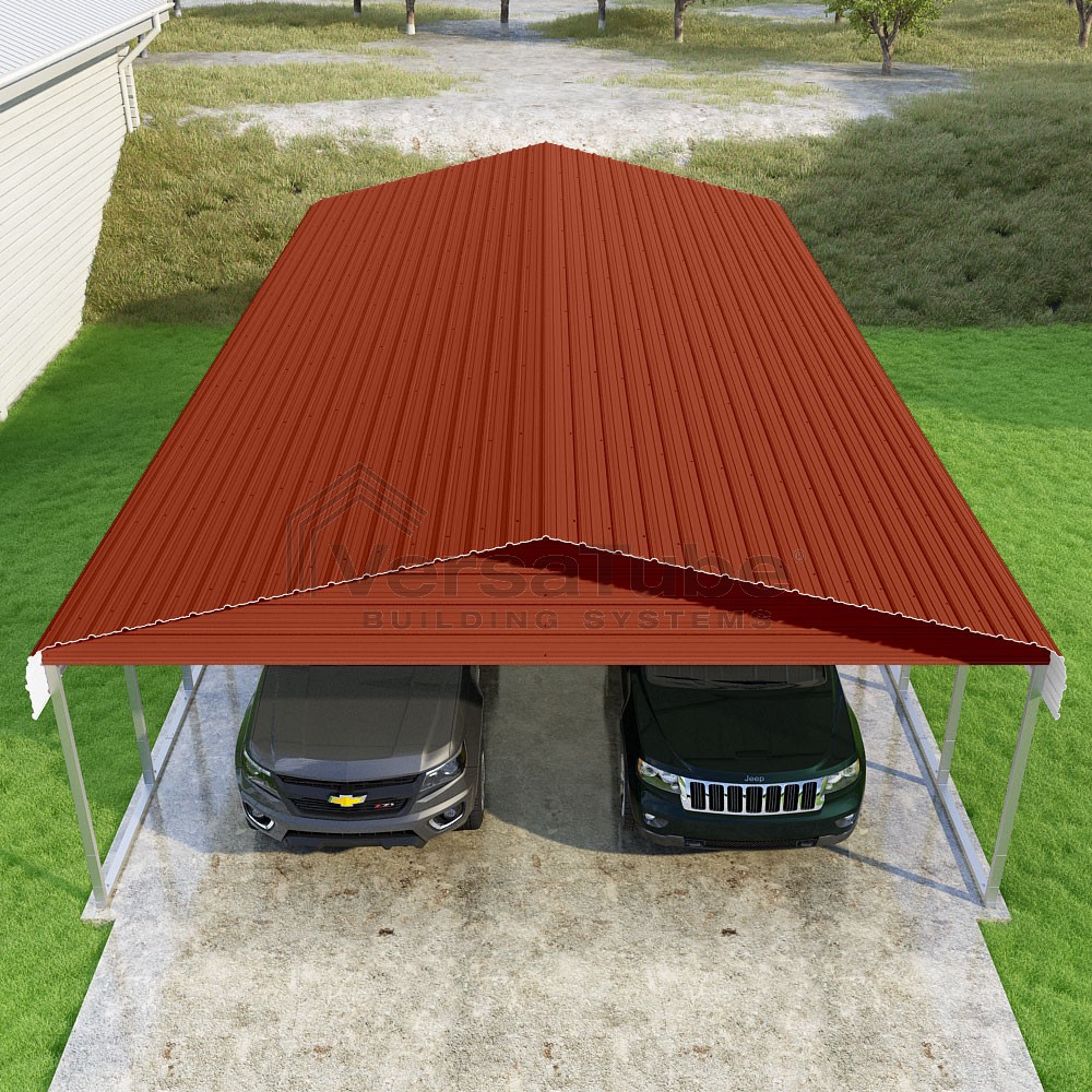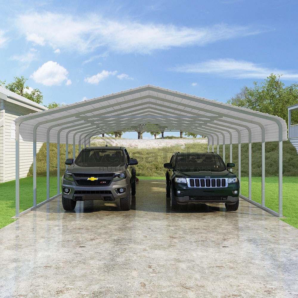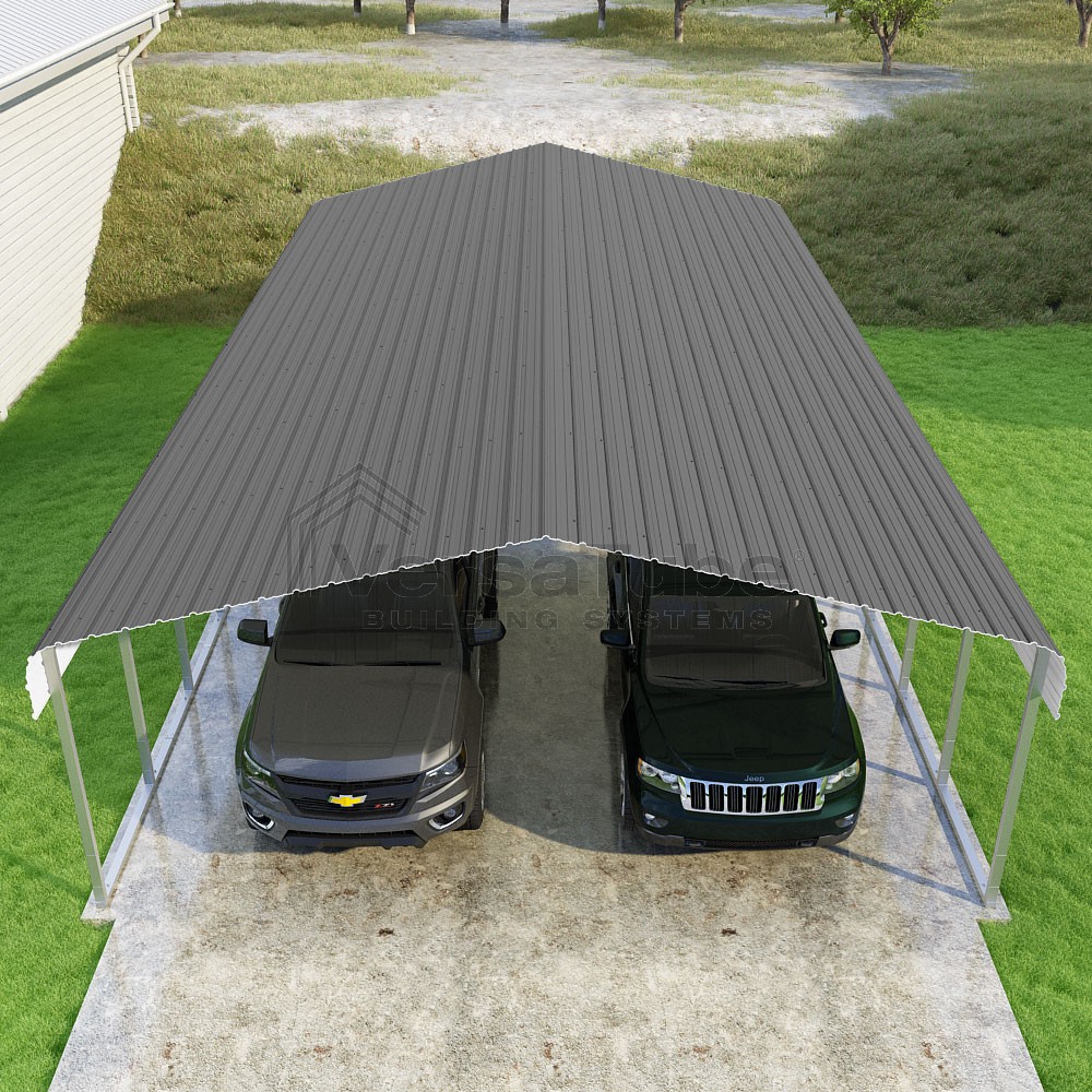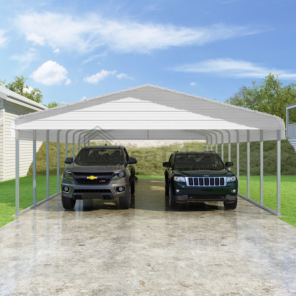 Classic Series DIY carport kit features horizontal application of sheet metal panels with the extra protection of rounded eaves.