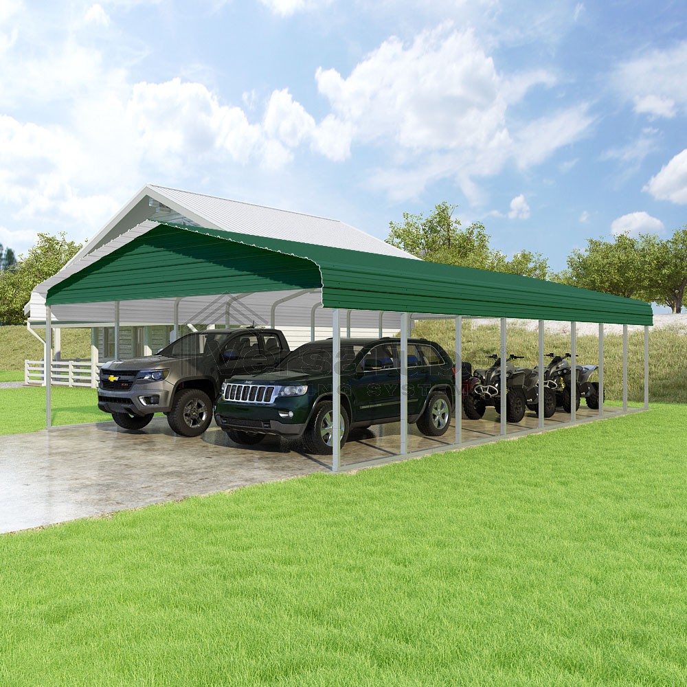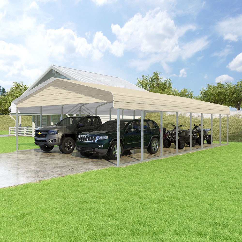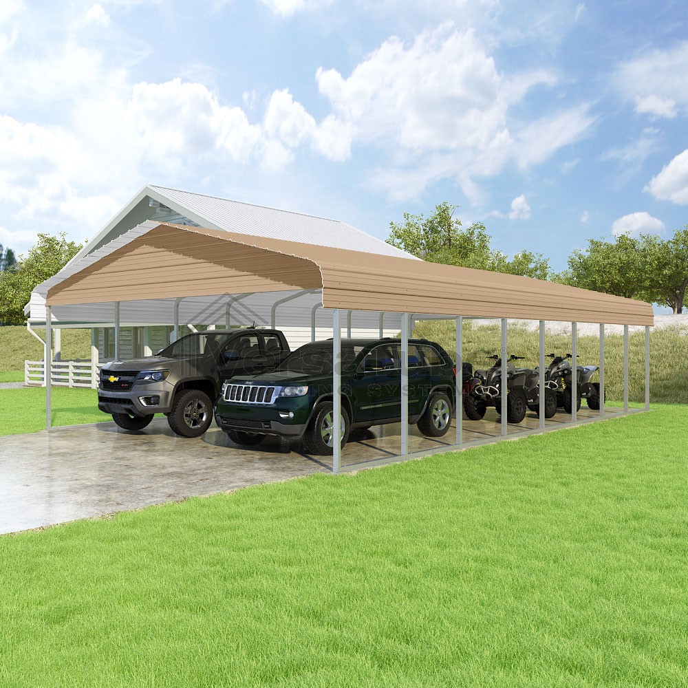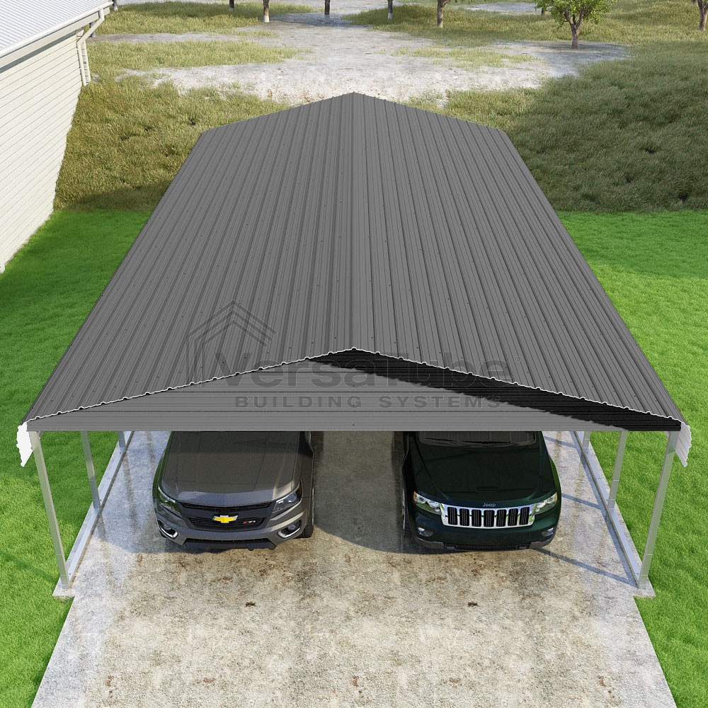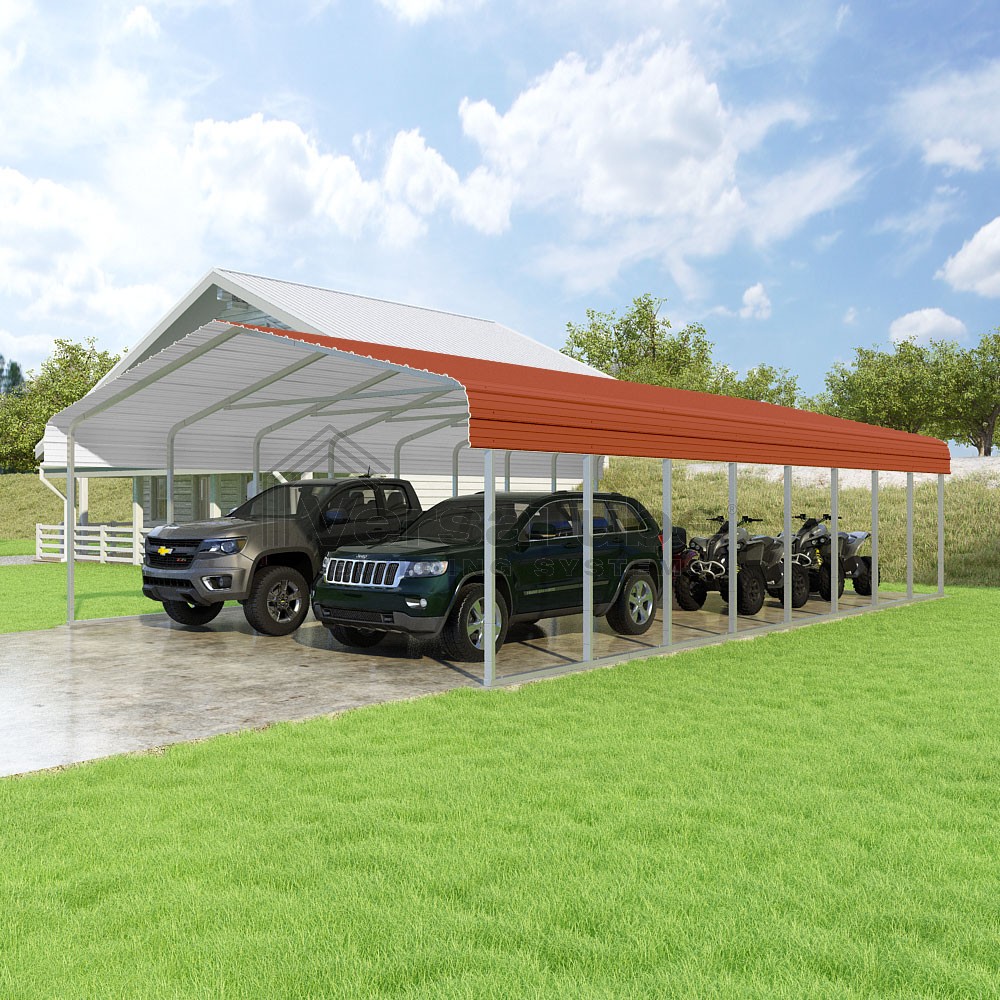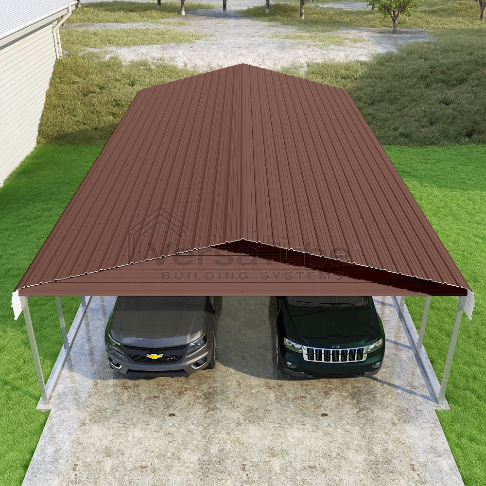 Classic Series DIY carport kit features horizontal application of sheet metal panels with the extra protection of rounded eaves.