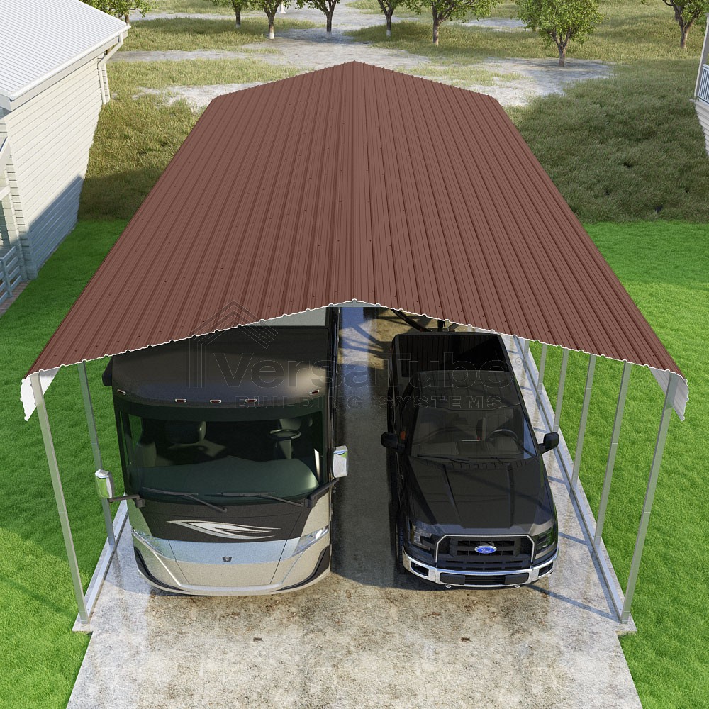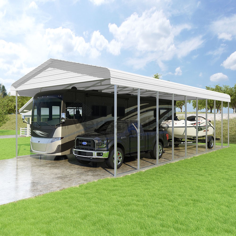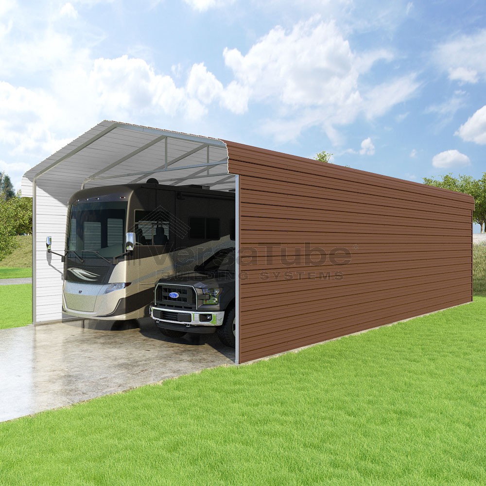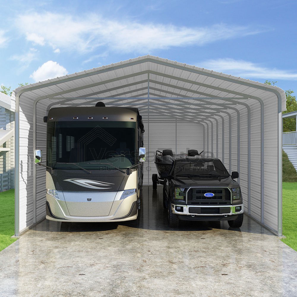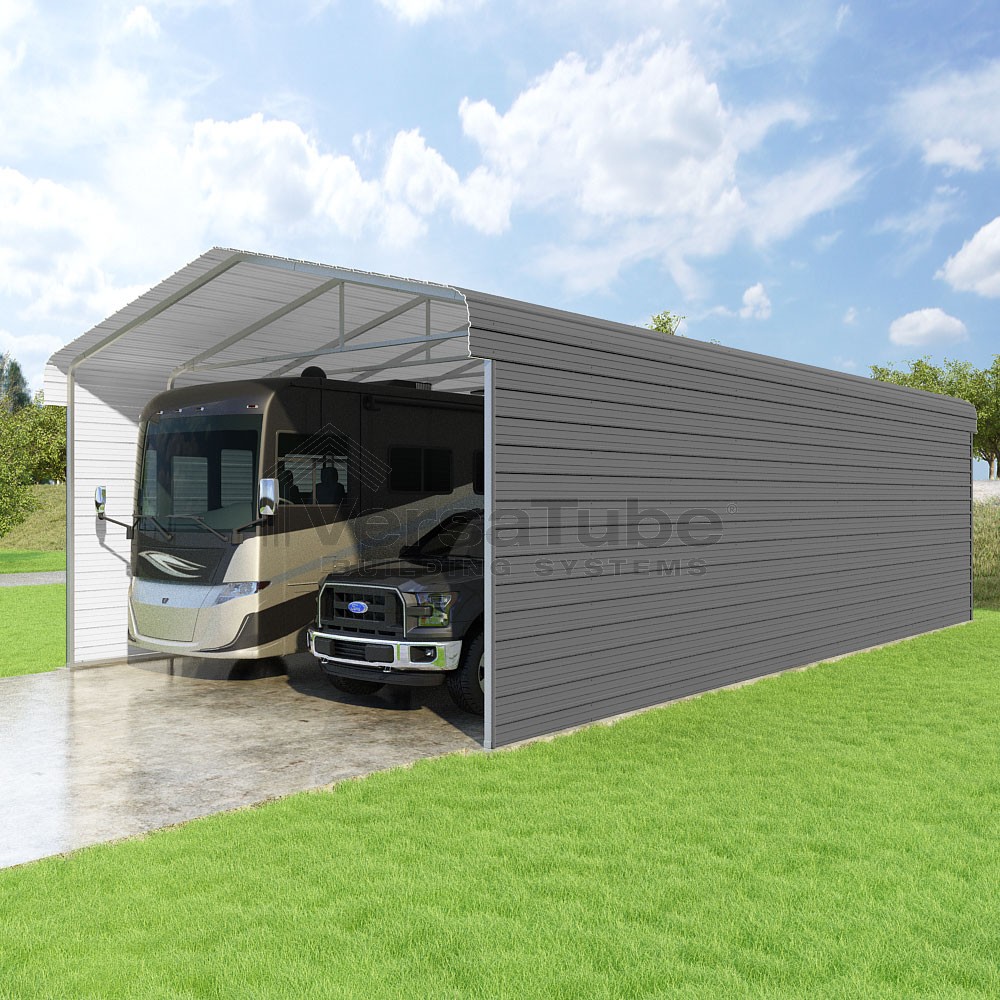 Classic Series DIY carport kit features horizontal application of sheet metal panels with the extra protection of rounded eaves.