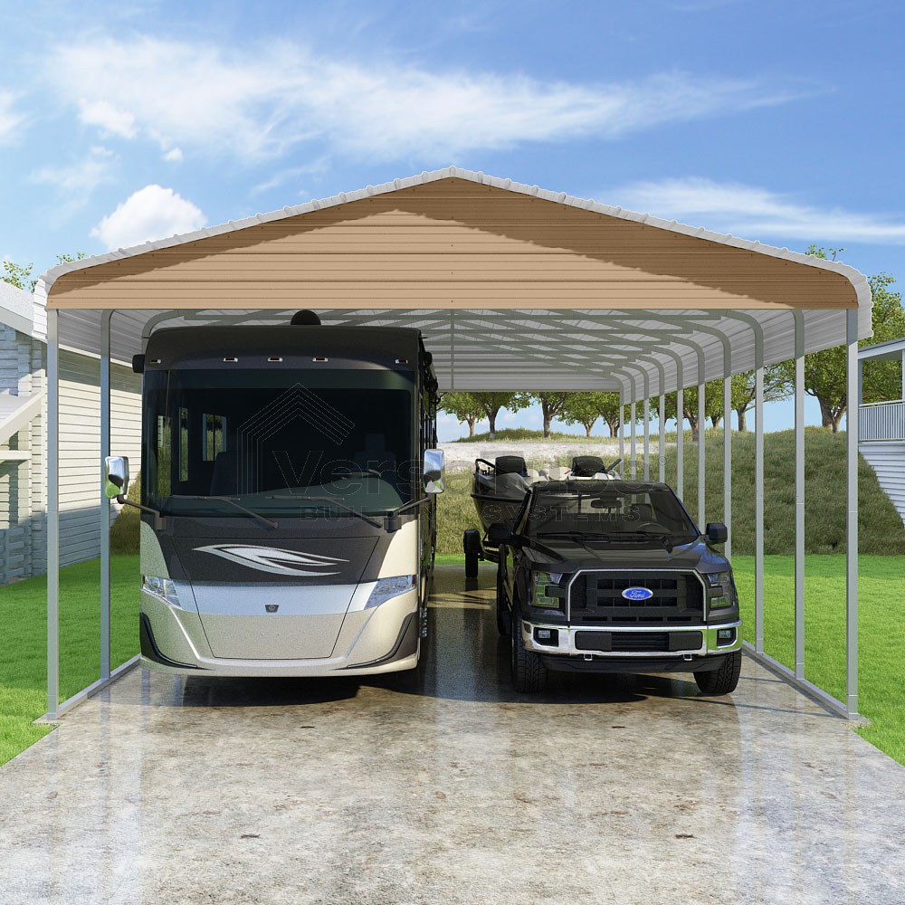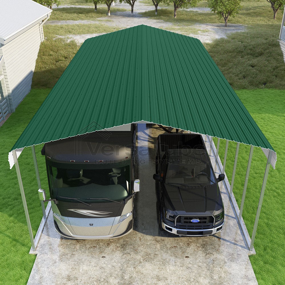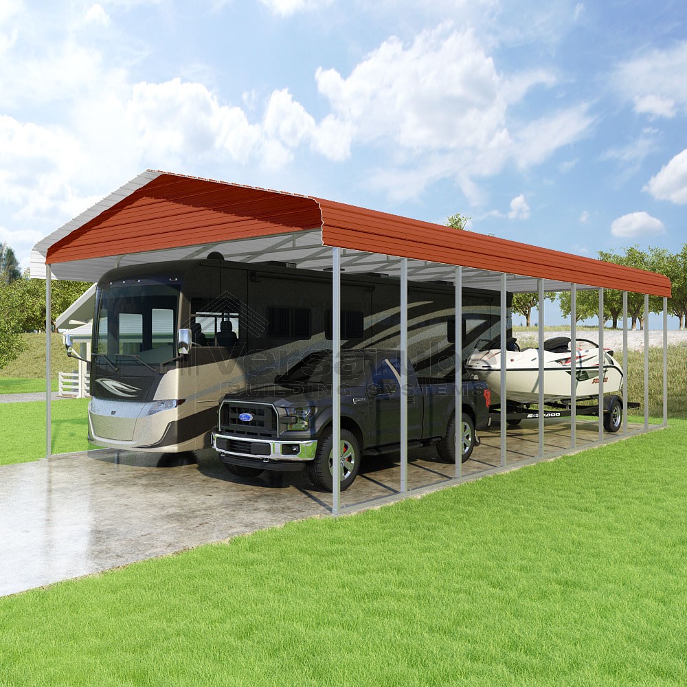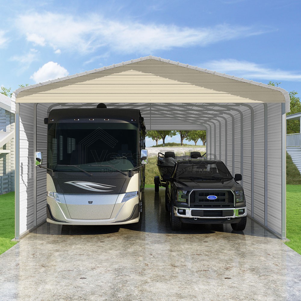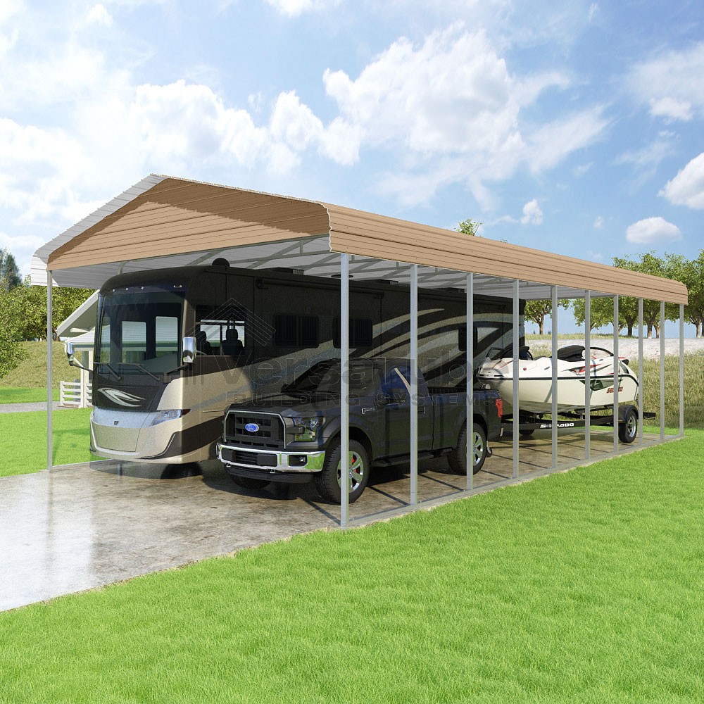Classic Series DIY carport kit features horizontal application of sheet metal panels with the extra protection of rounded eaves.