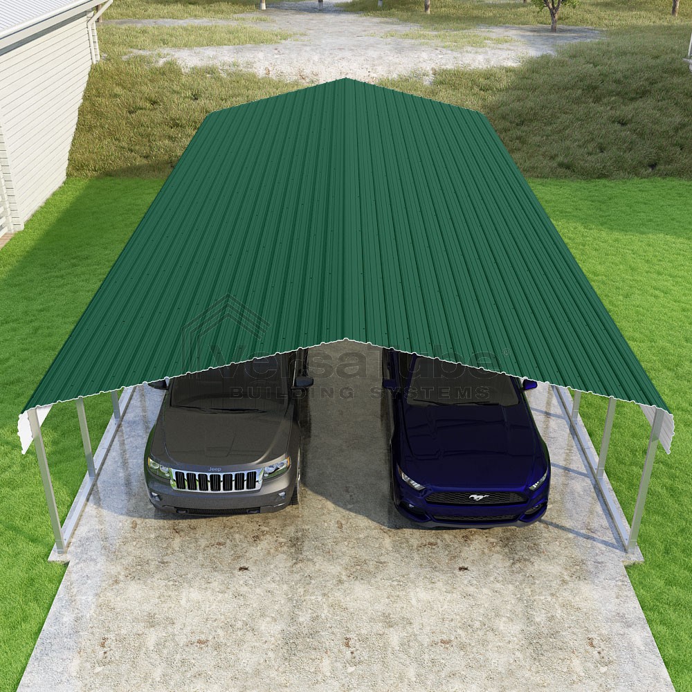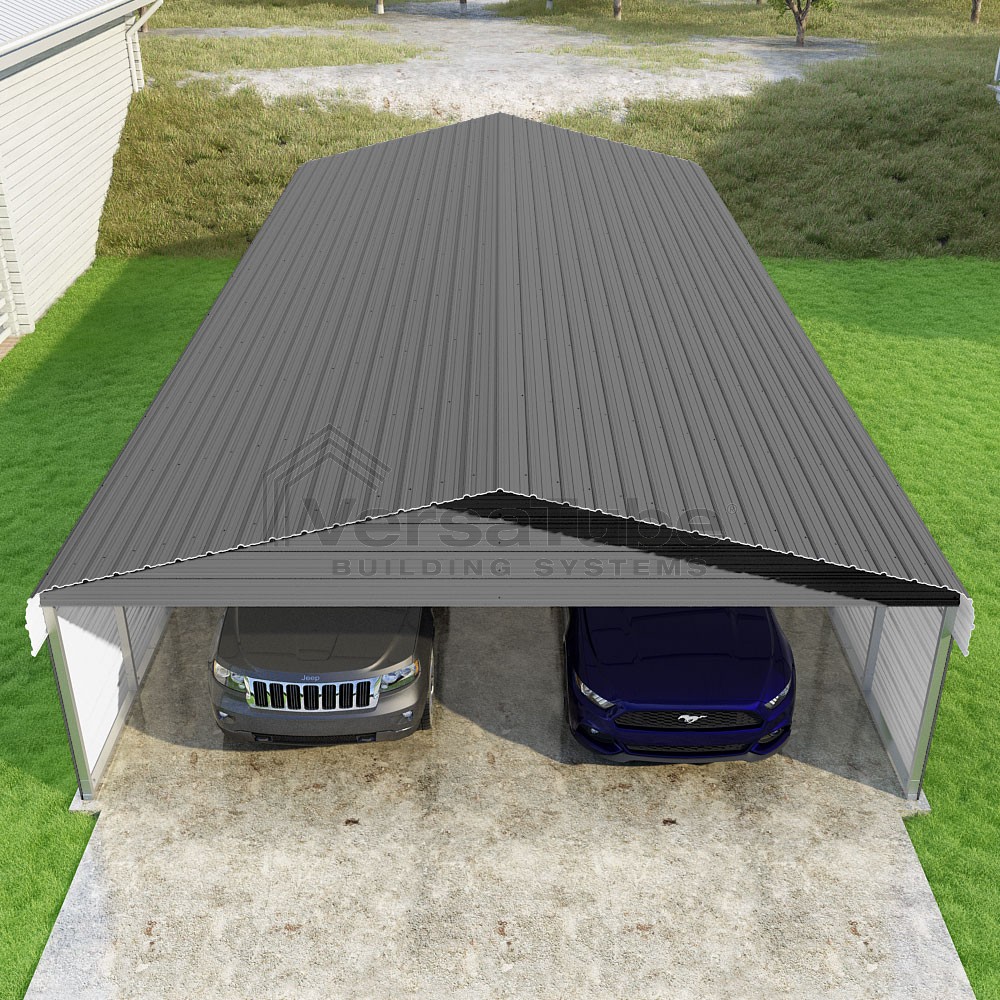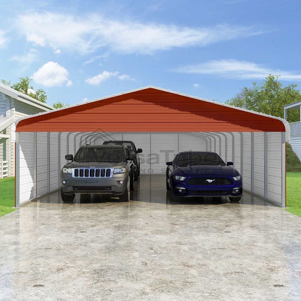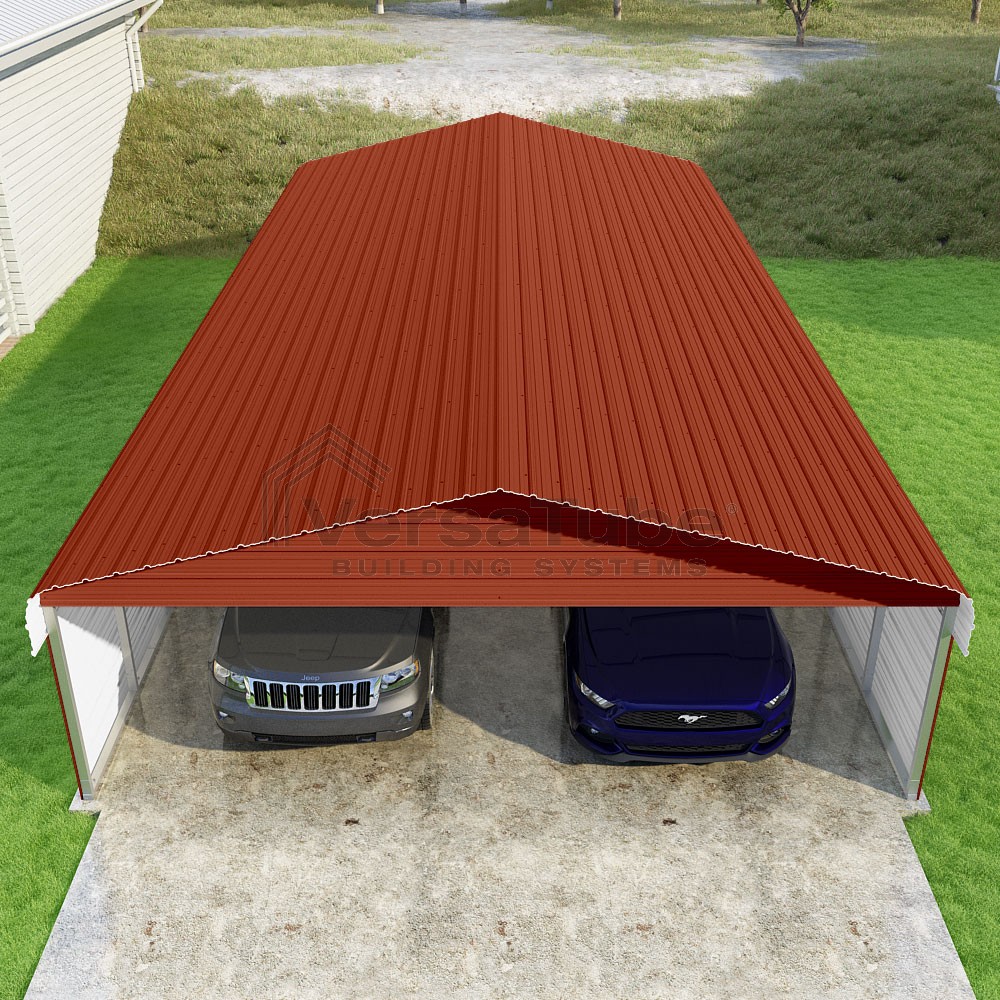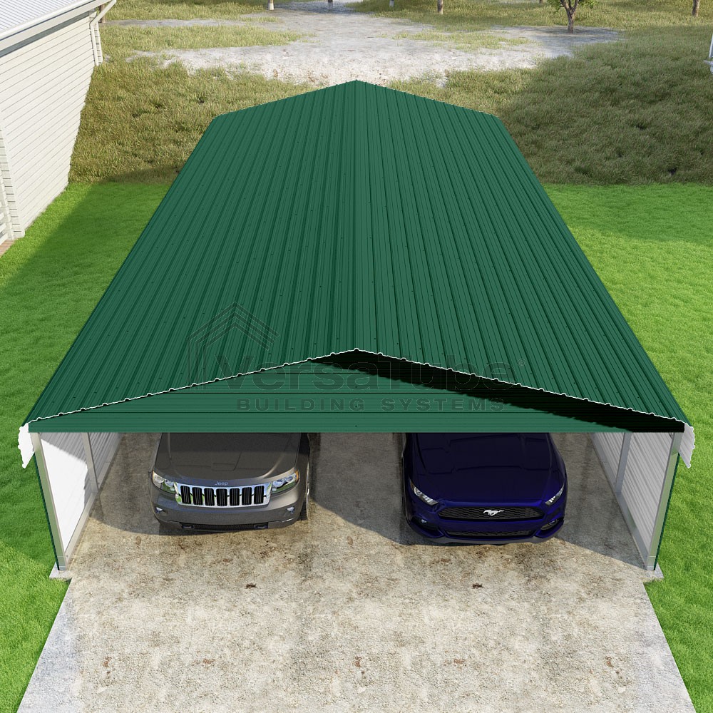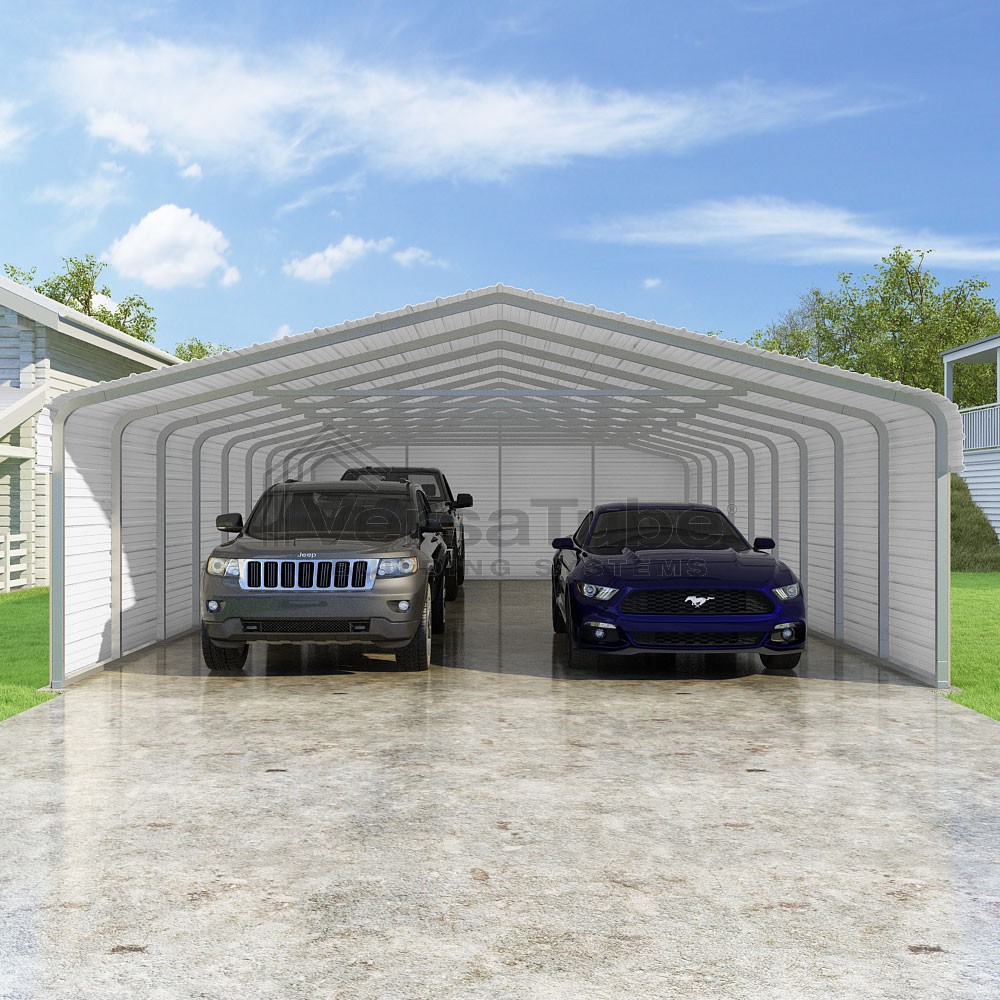 Classic Series DIY carport kit features horizontal application of sheet metal panels with the extra protection of rounded eaves.