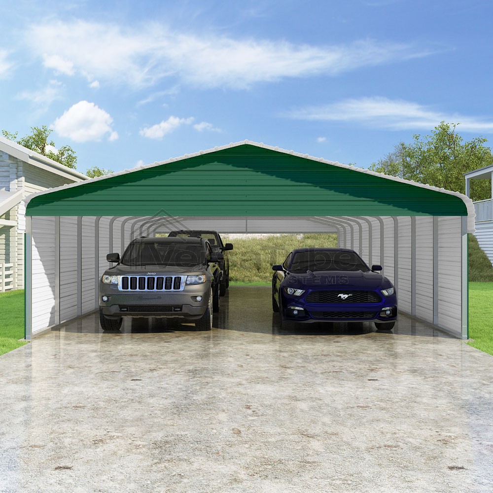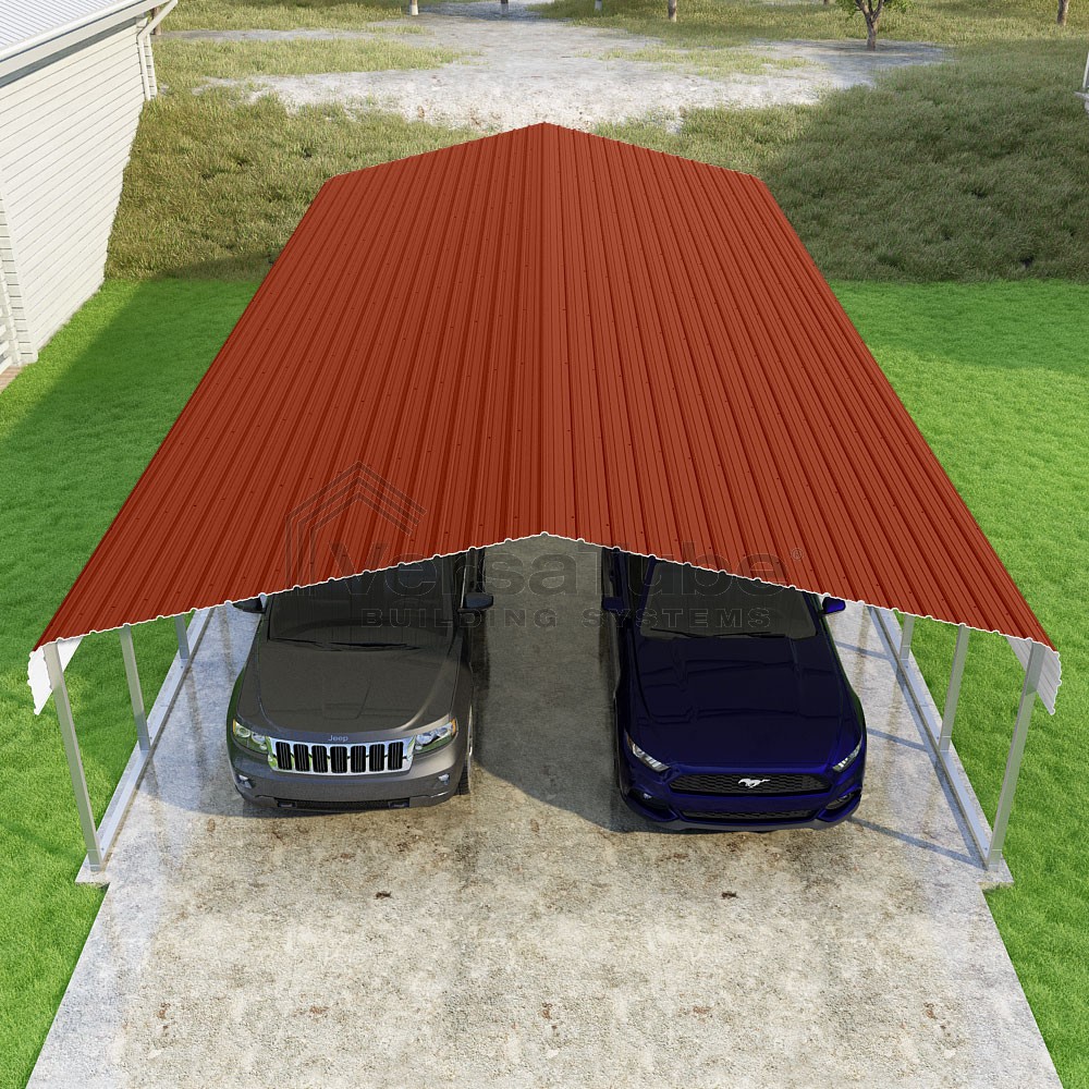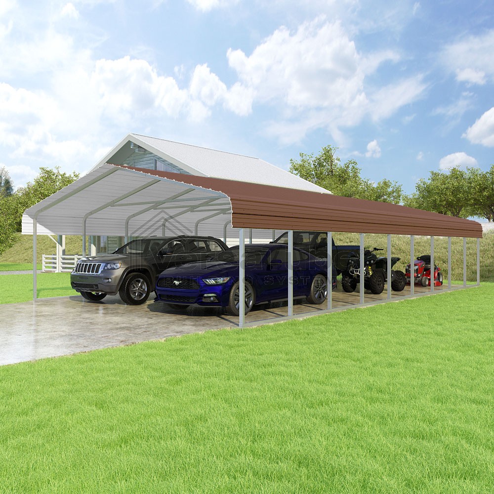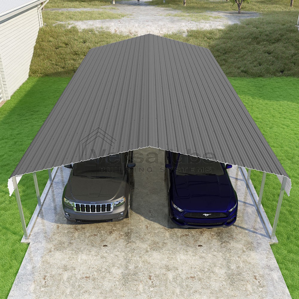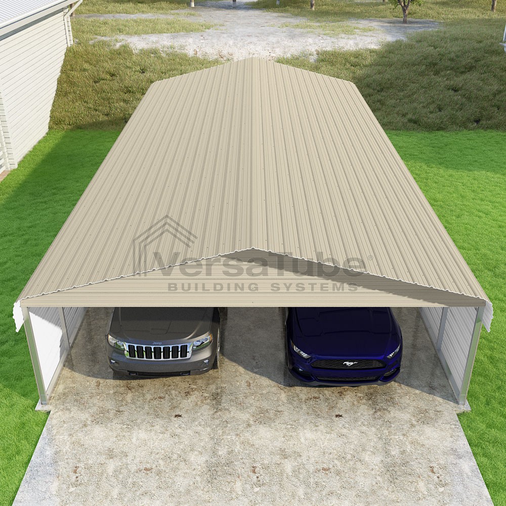 Classic Series DIY carport kit features horizontal application of sheet metal panels with the extra protection of rounded eaves.