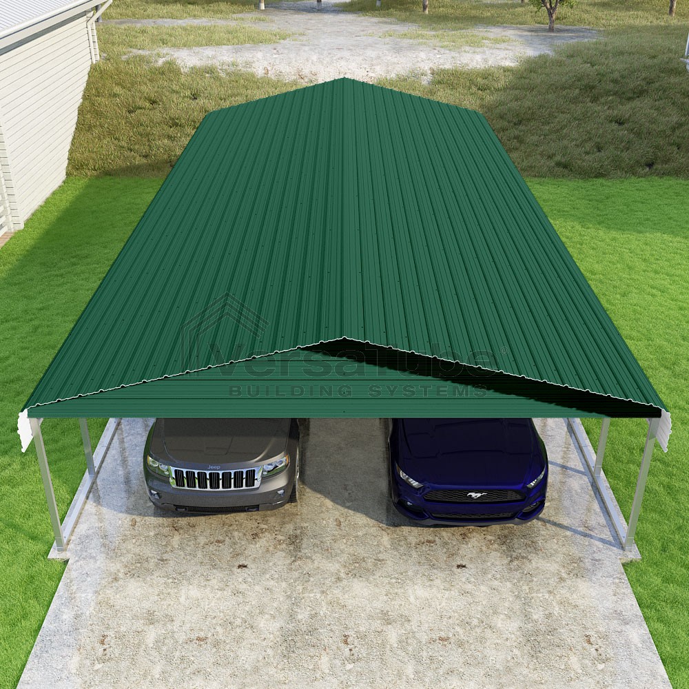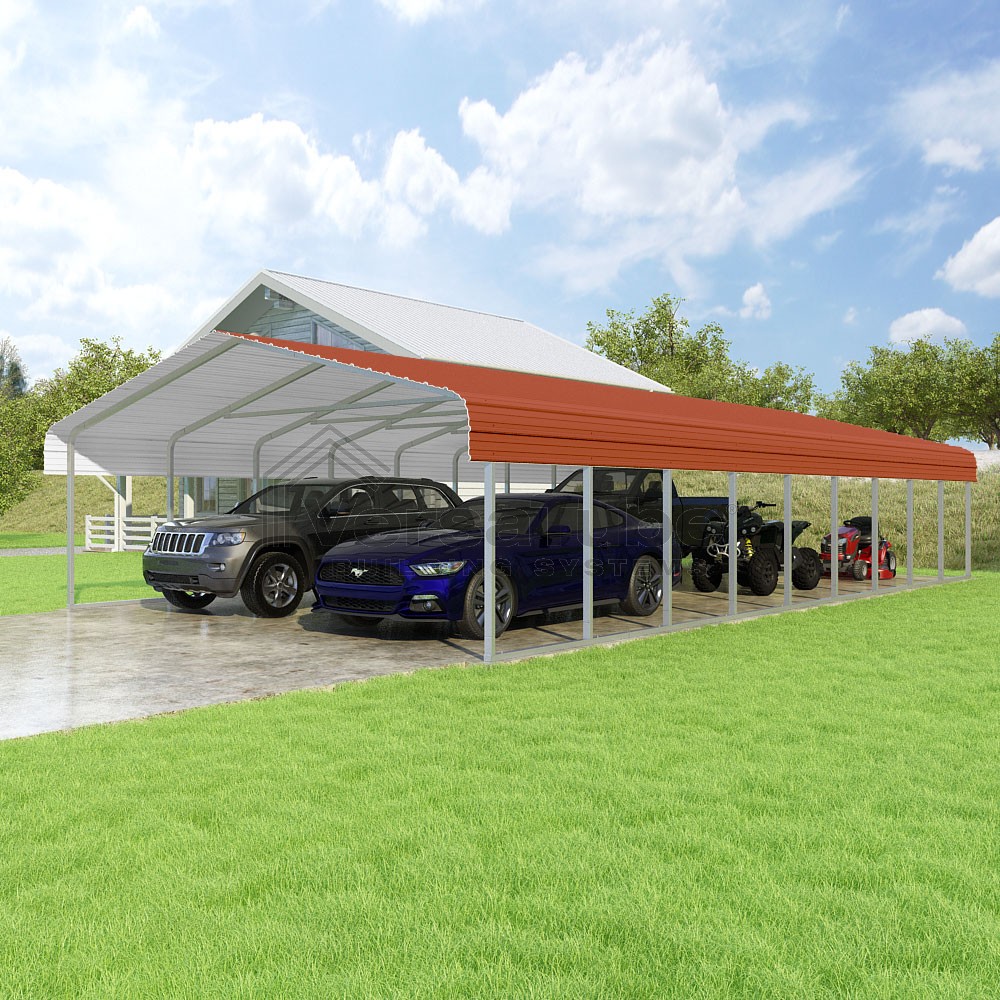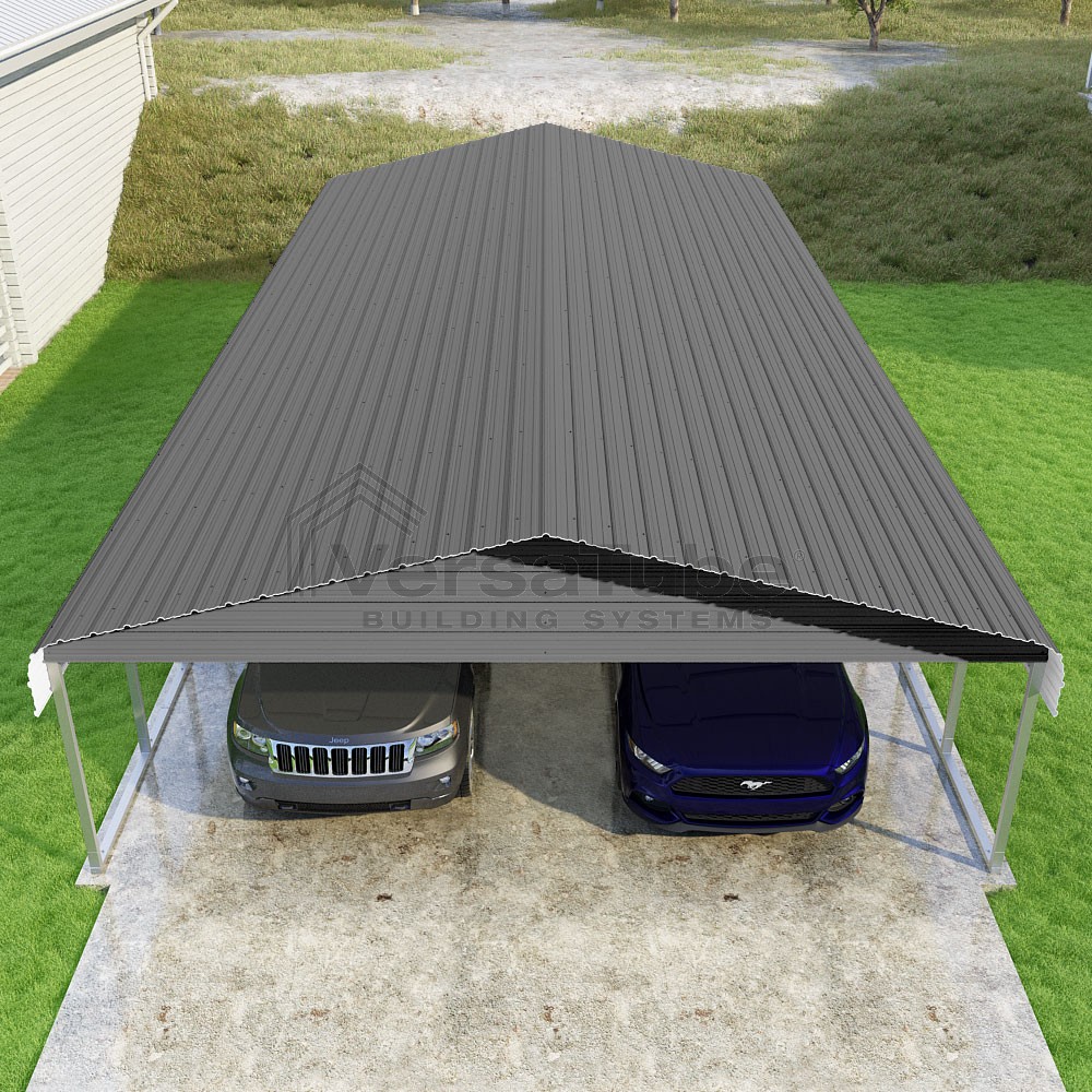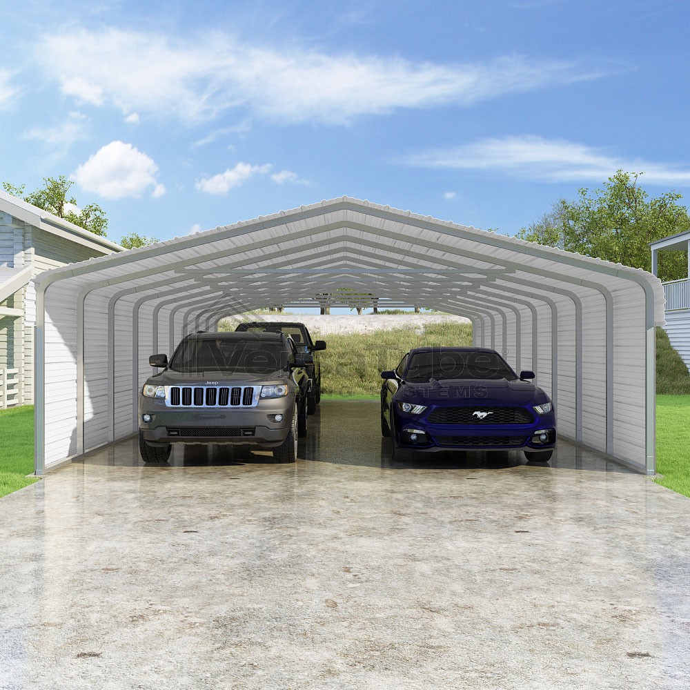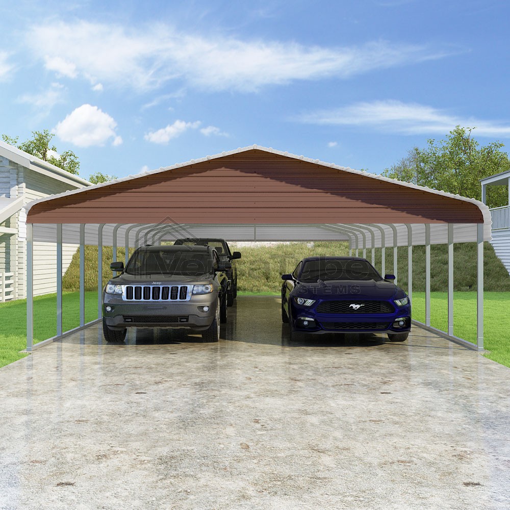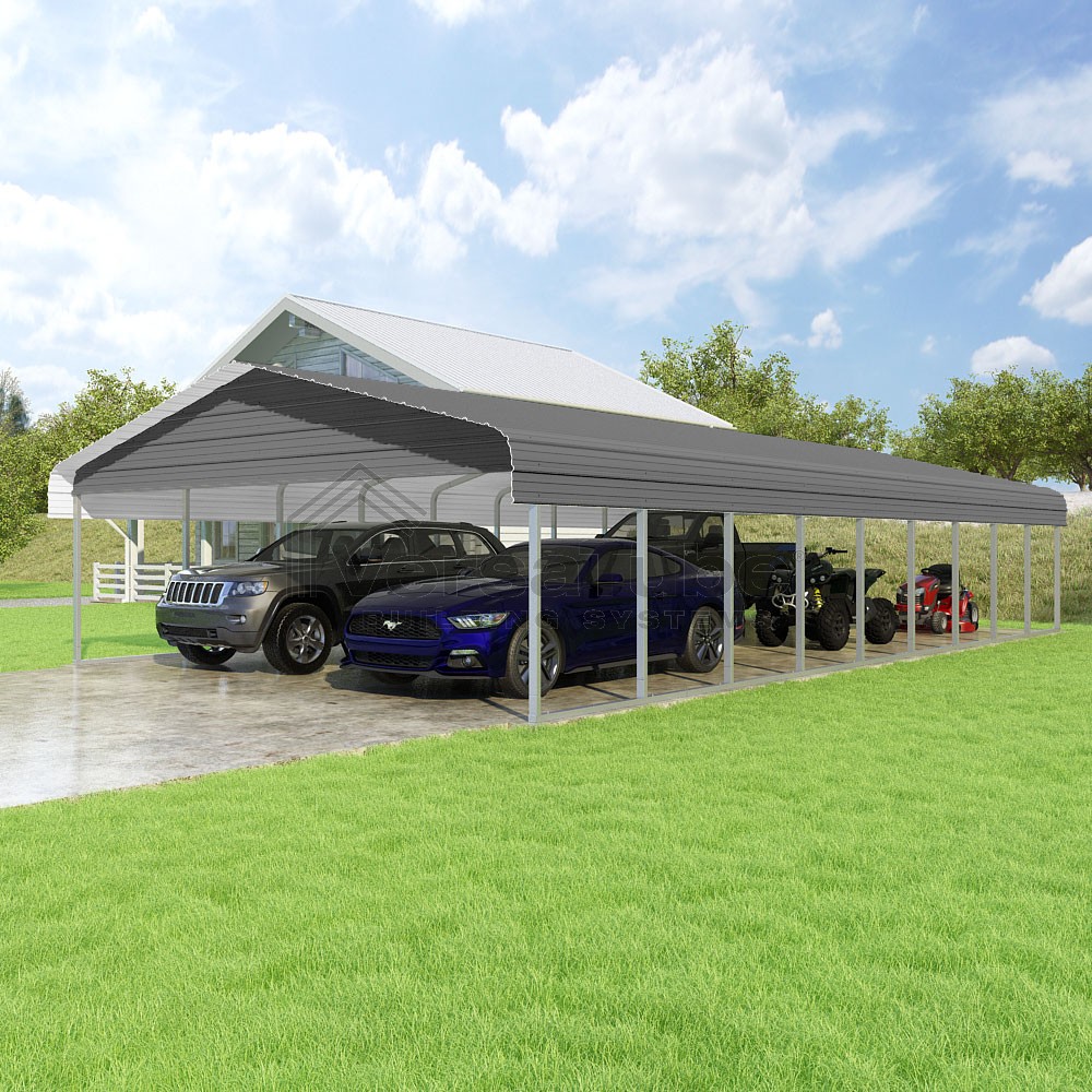 Classic Series DIY carport kit features horizontal application of sheet metal panels with the extra protection of rounded eaves.