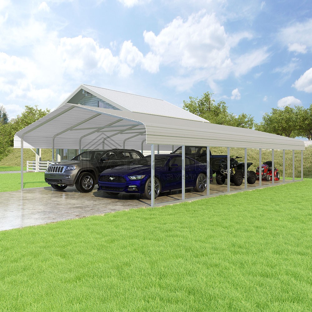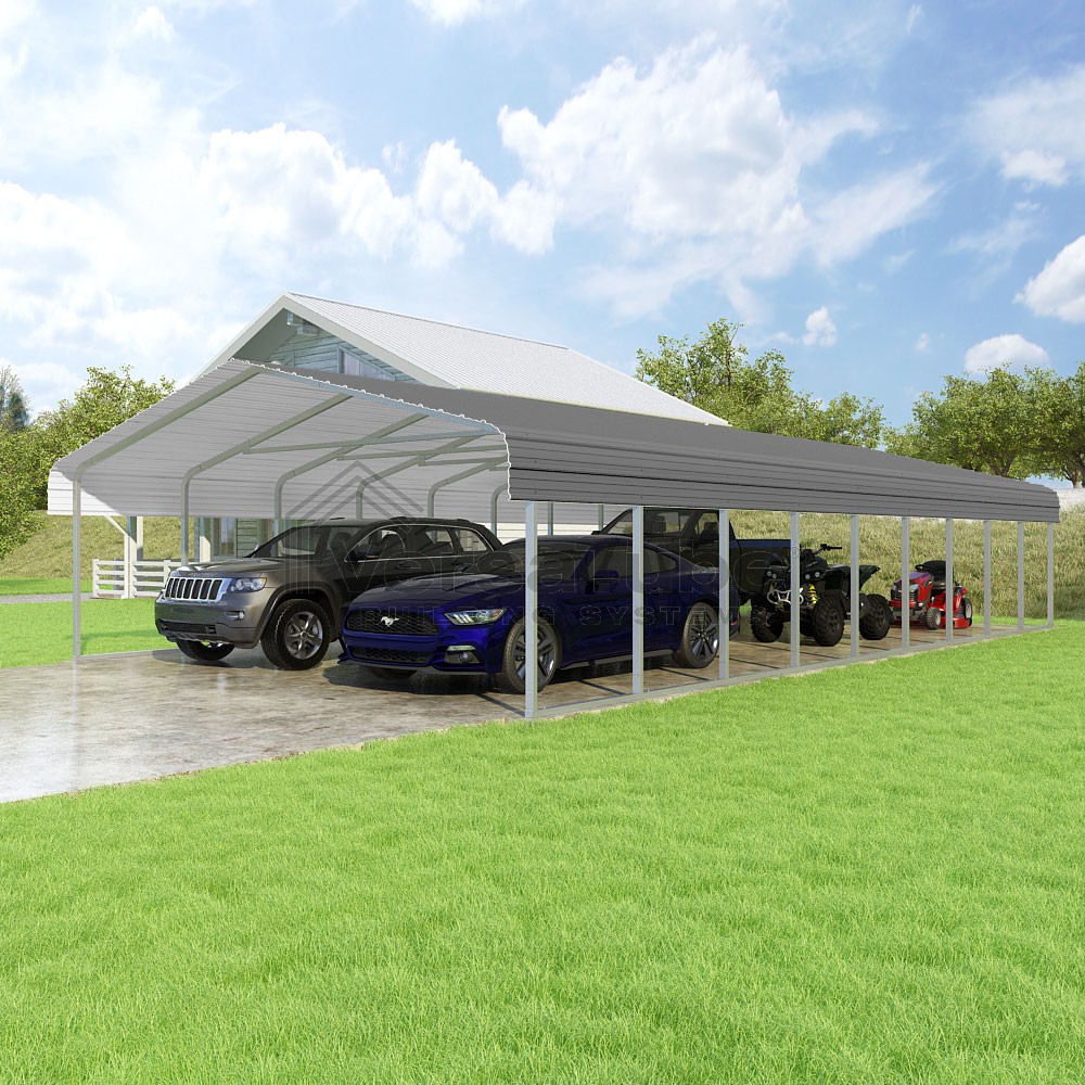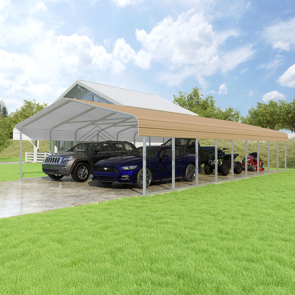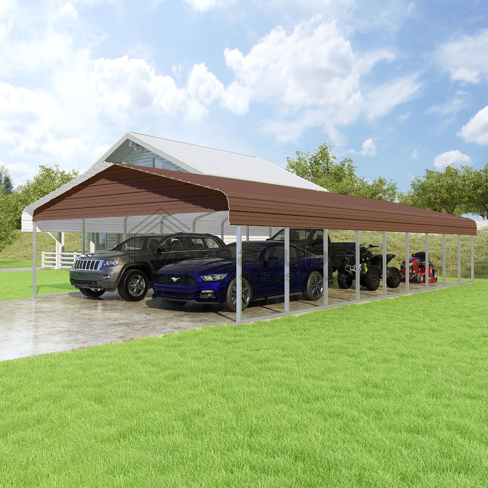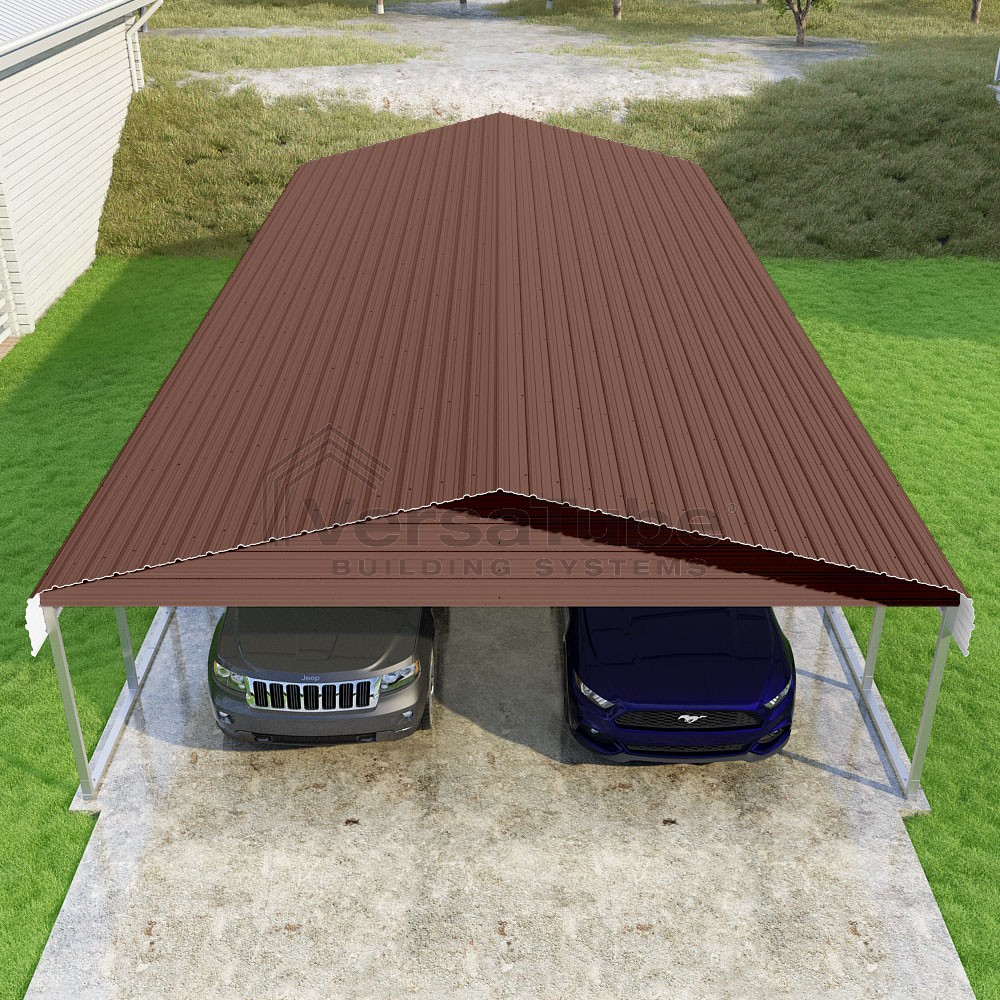 Classic Series DIY carport kit features horizontal application of sheet metal panels with the extra protection of rounded eaves.