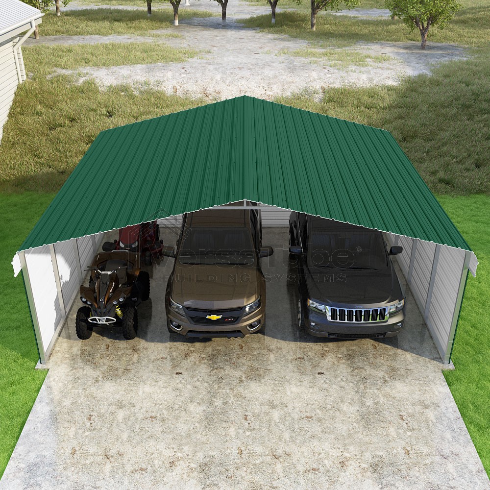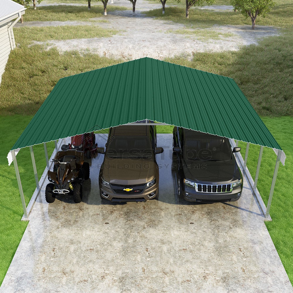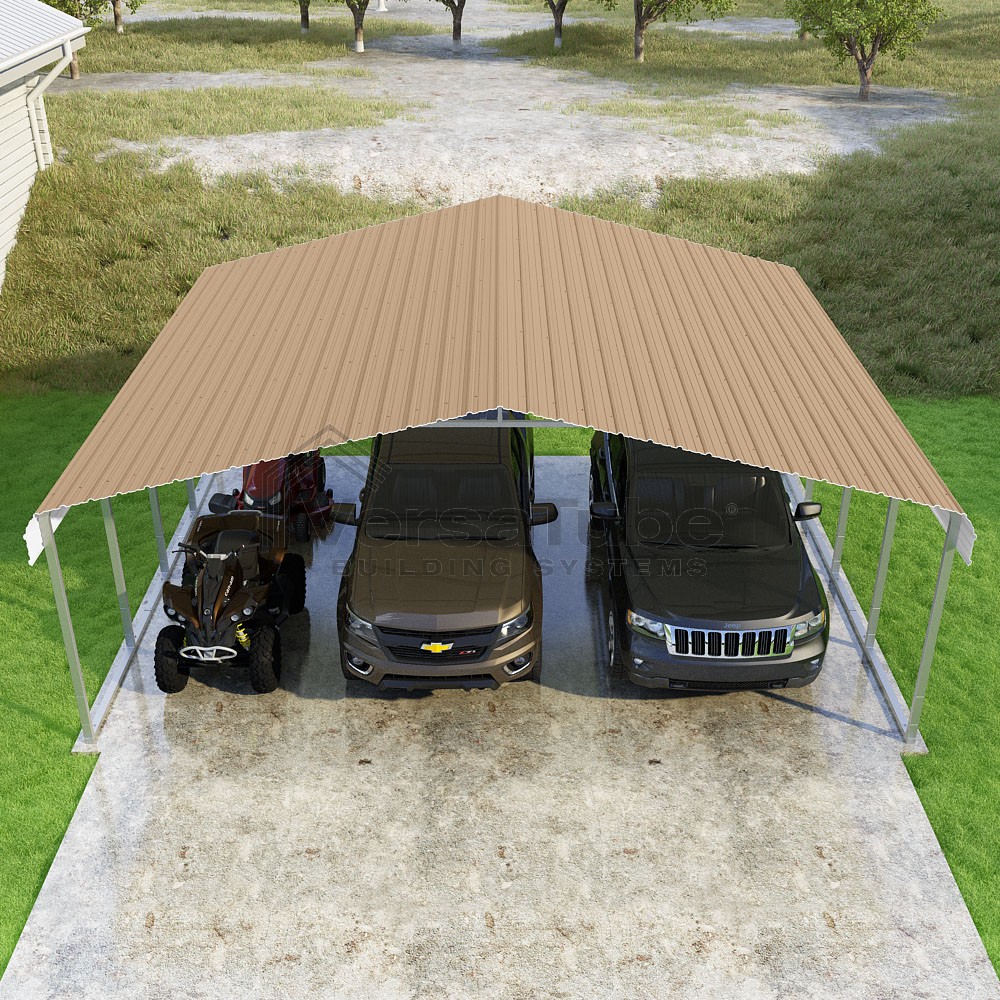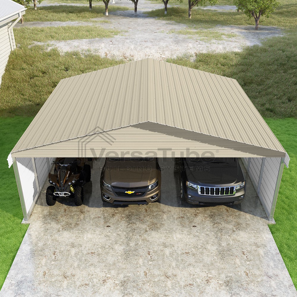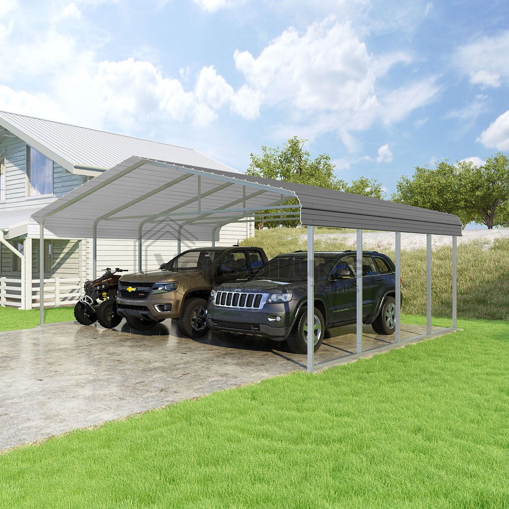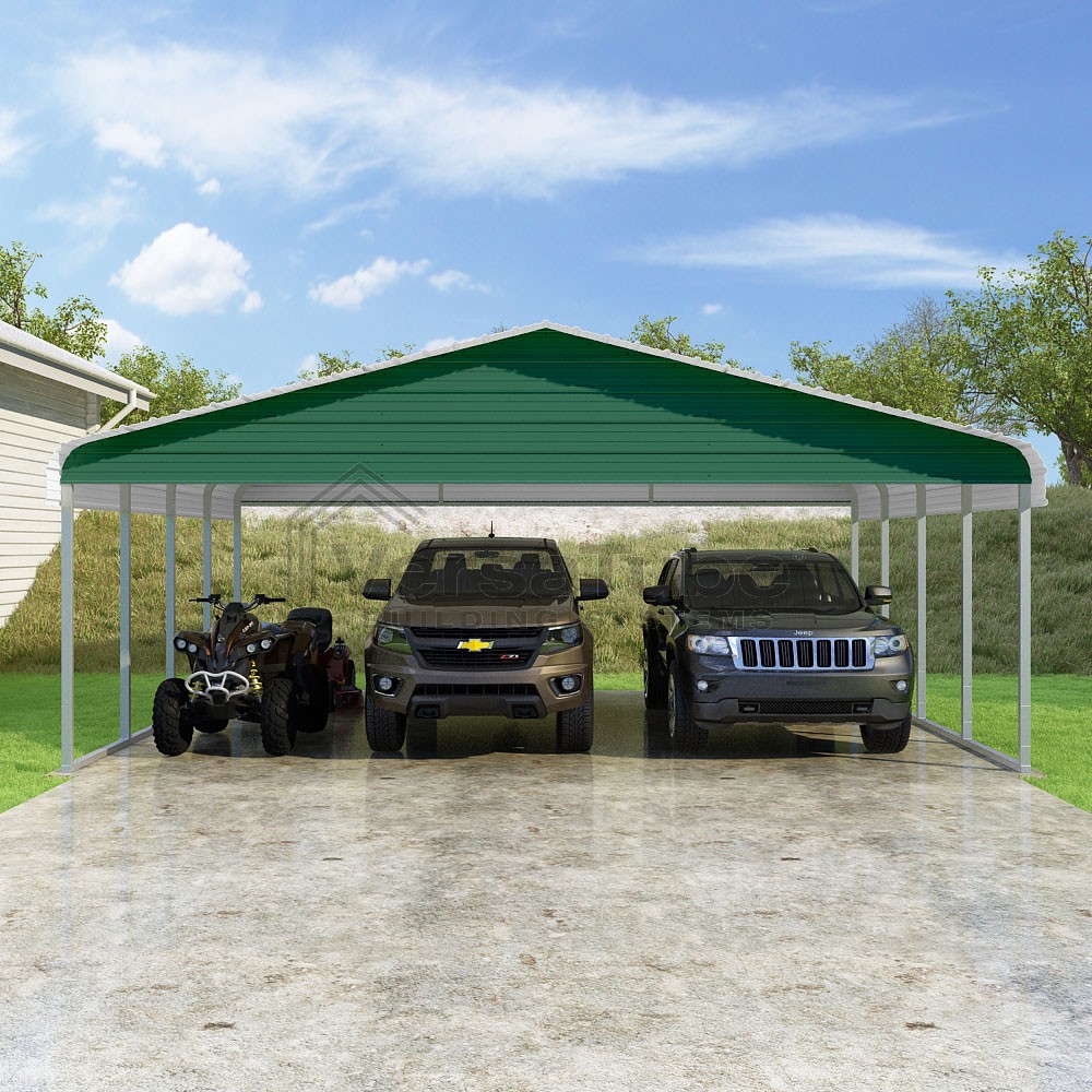 Classic Series DIY carport kit features horizontal application of sheet metal panels with the extra protection of rounded eaves.