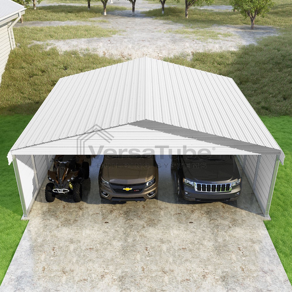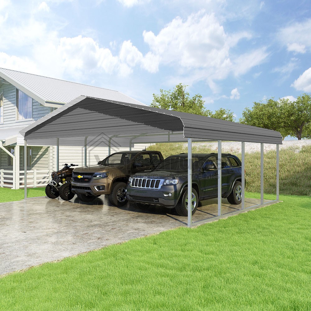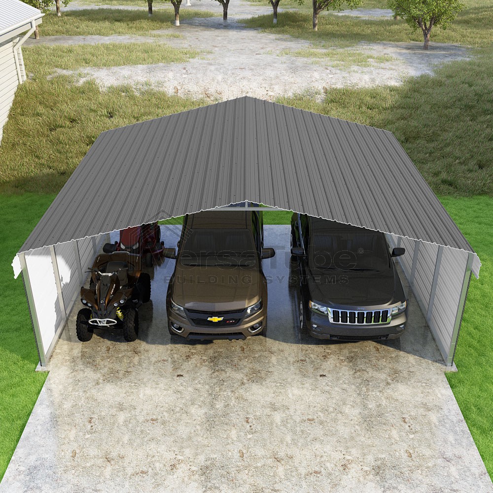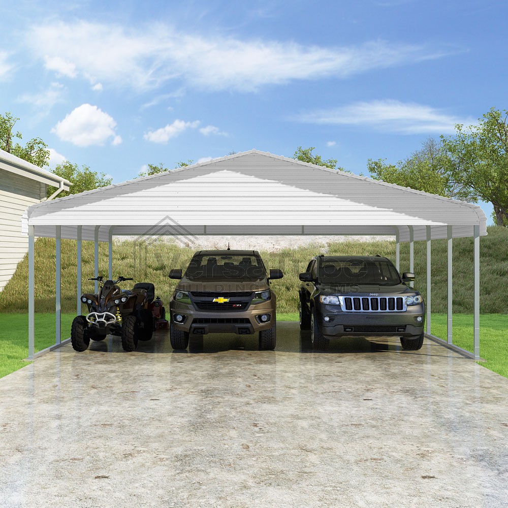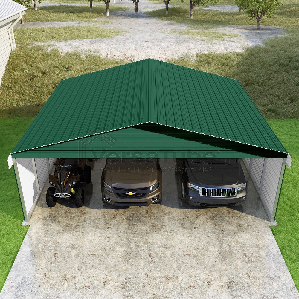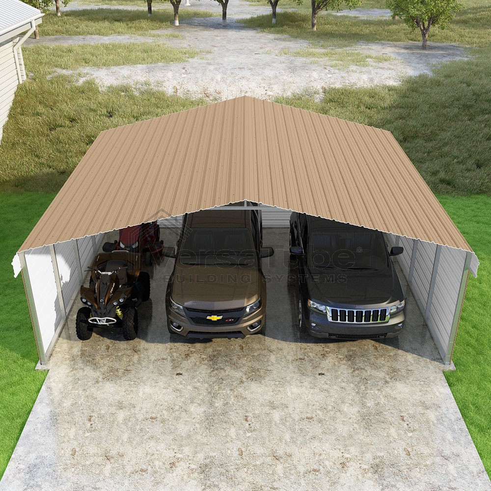 Classic Series DIY carport kit features horizontal application of sheet metal panels with the extra protection of rounded eaves.