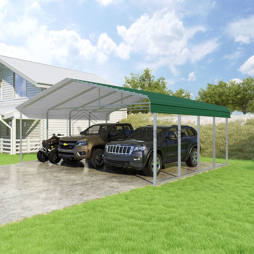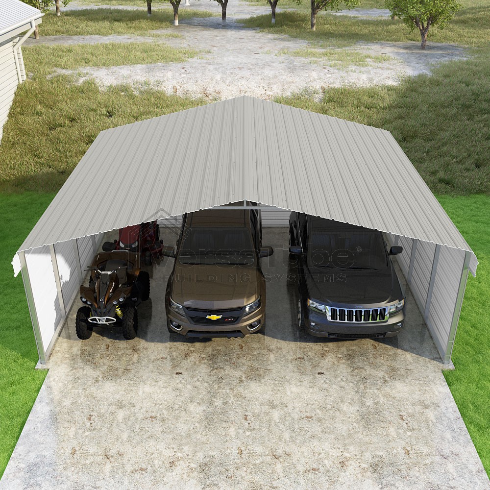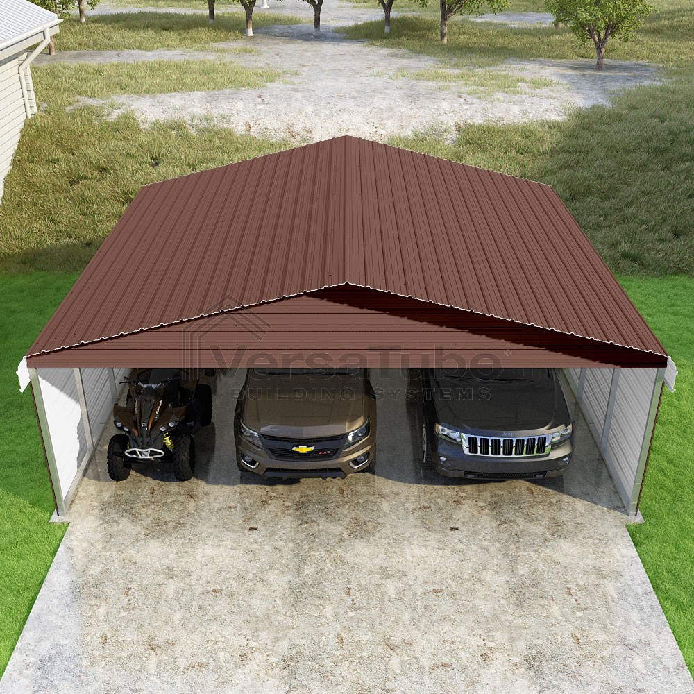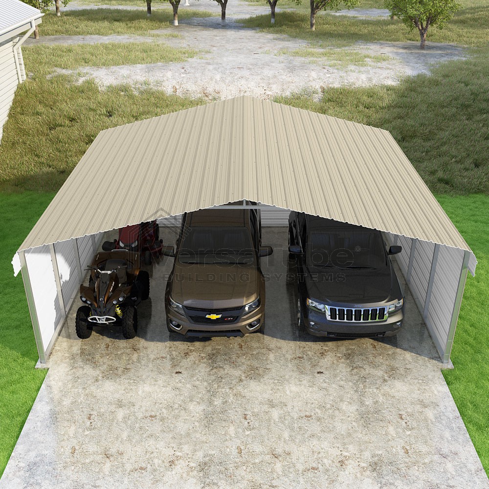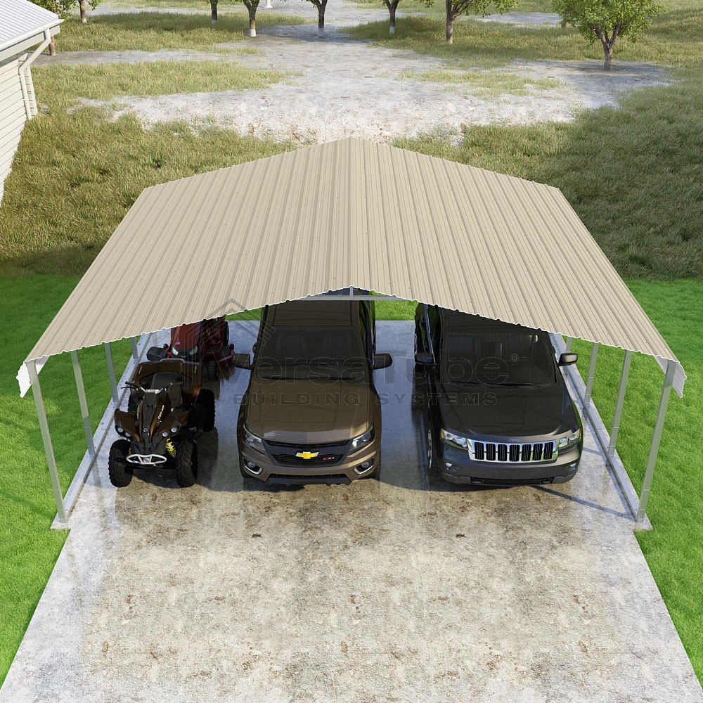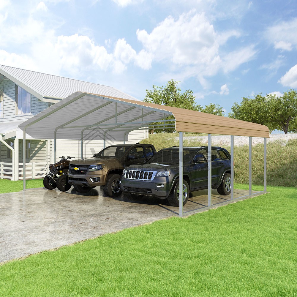 Classic Series DIY carport kit features horizontal application of sheet metal panels with the extra protection of rounded eaves.