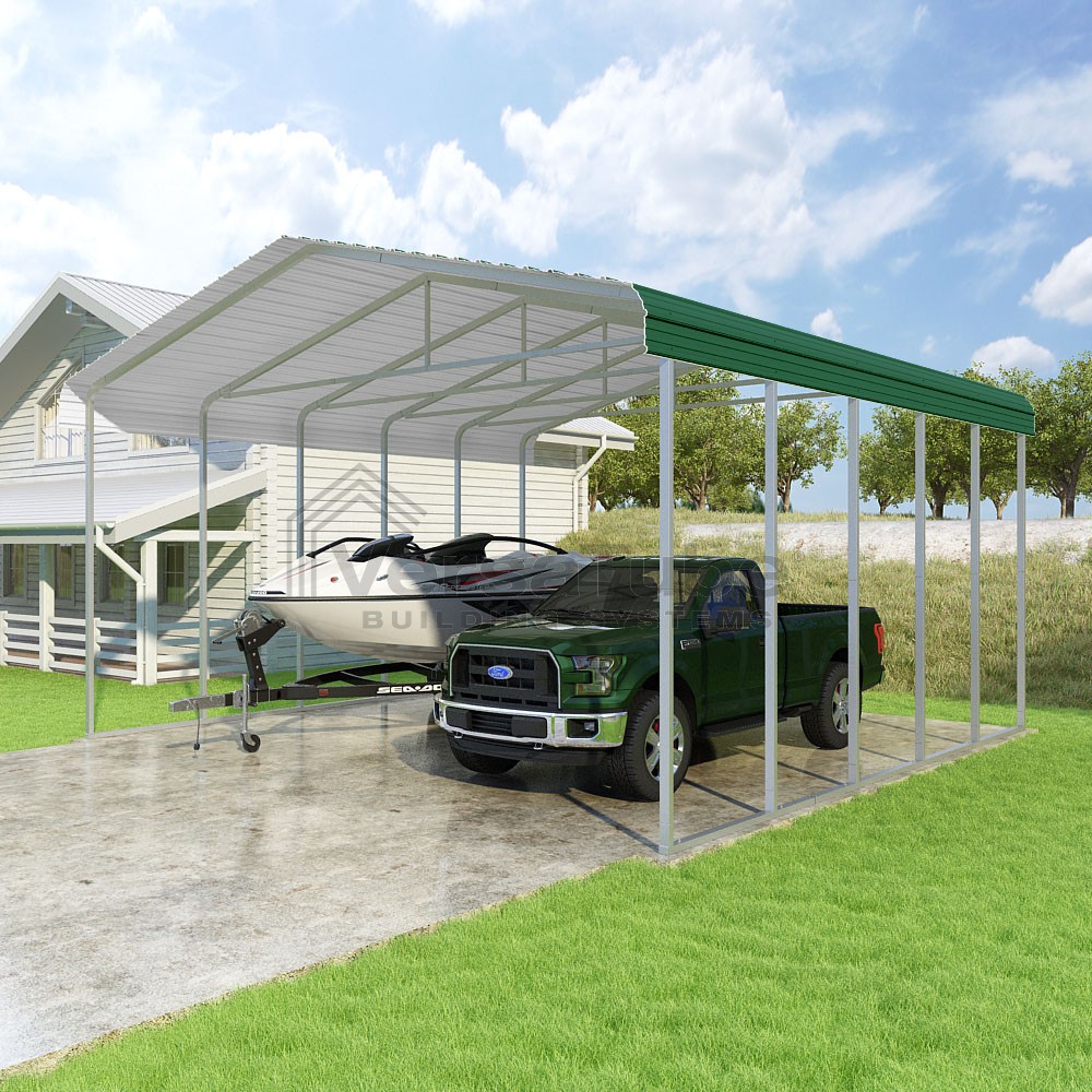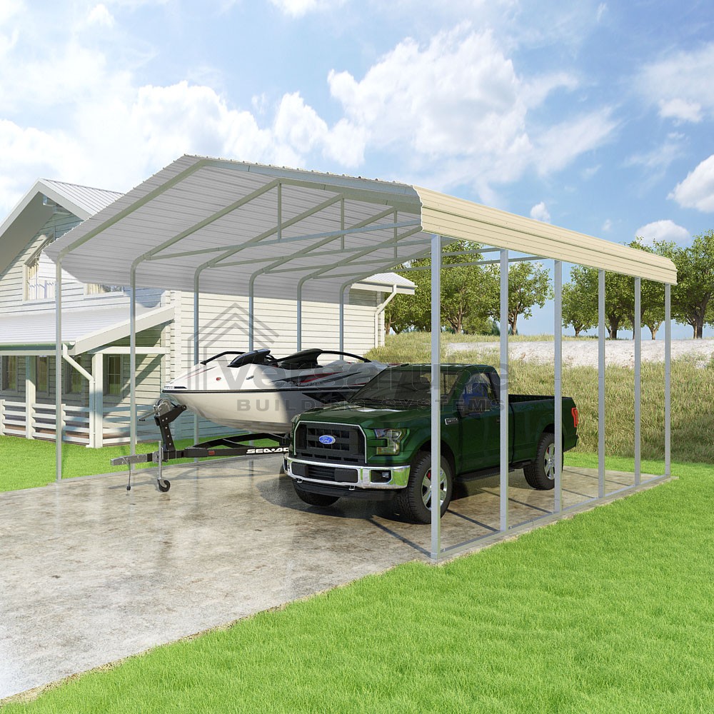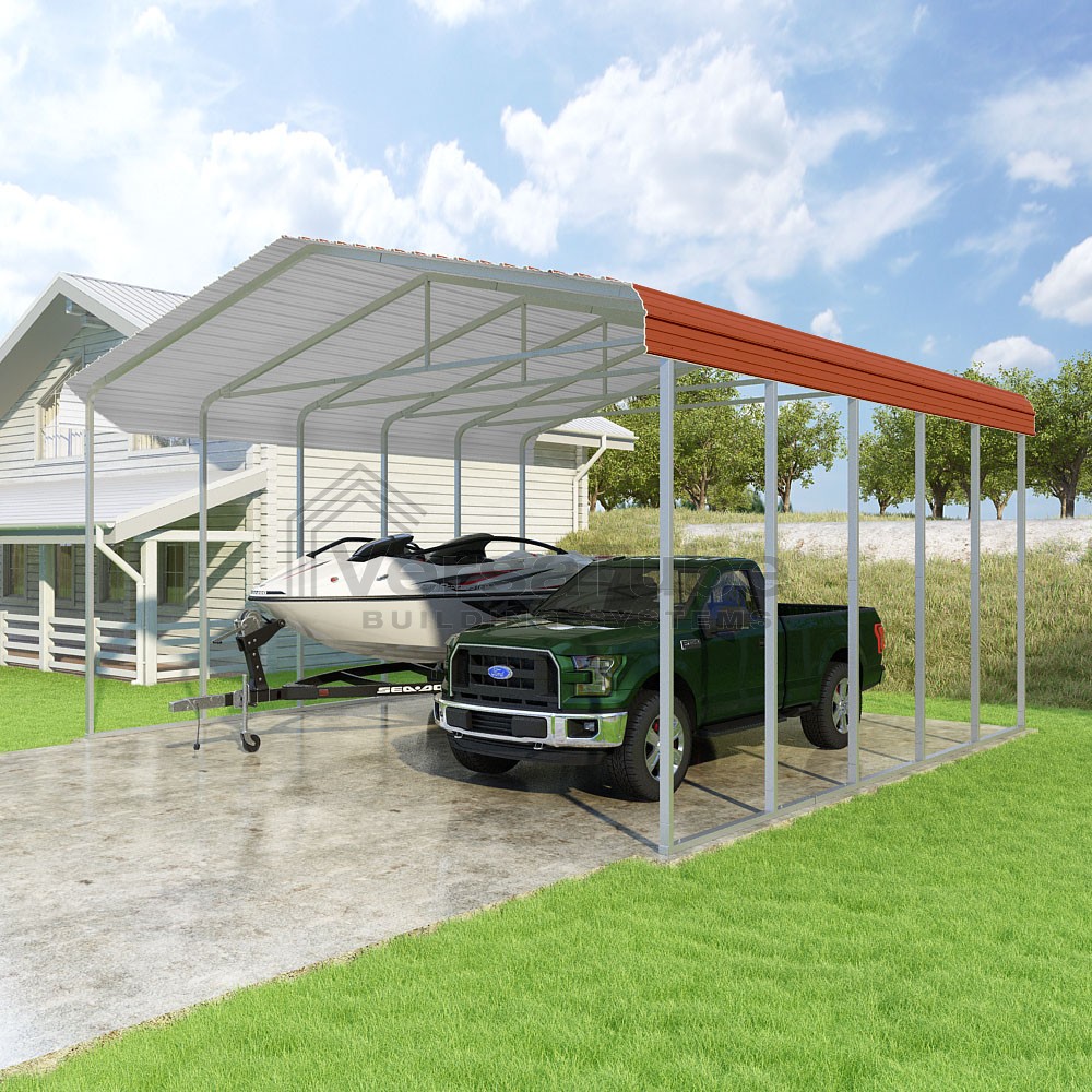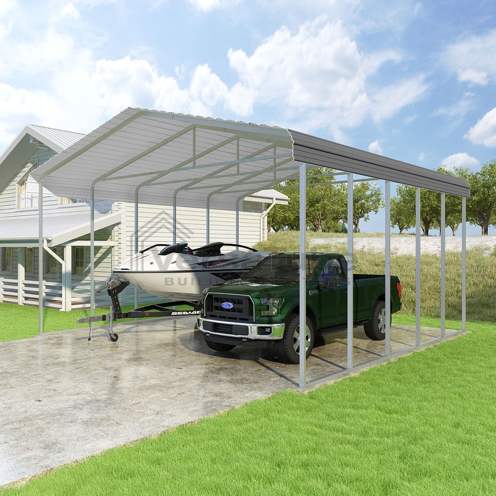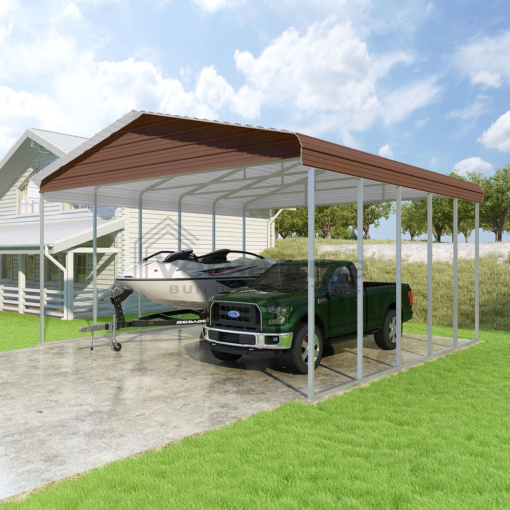 Classic Series DIY carport kit features horizontal application of sheet metal panels with the extra protection of rounded eaves.