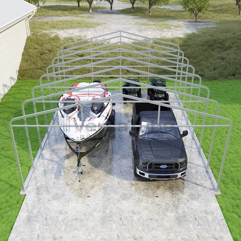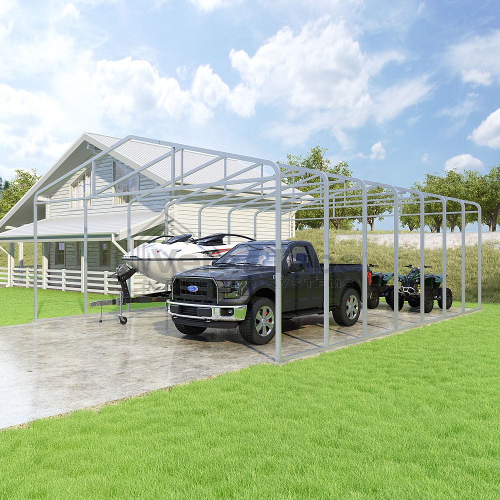 Classic Series DIY carport frame kit is designed for horizontal sheet metal application, resulting in a more cost-effective shelter or canopy solution. The rounded bends allow the sheet metal to naturally roll over the sides ensuring additional protection from elements entering from the sides.