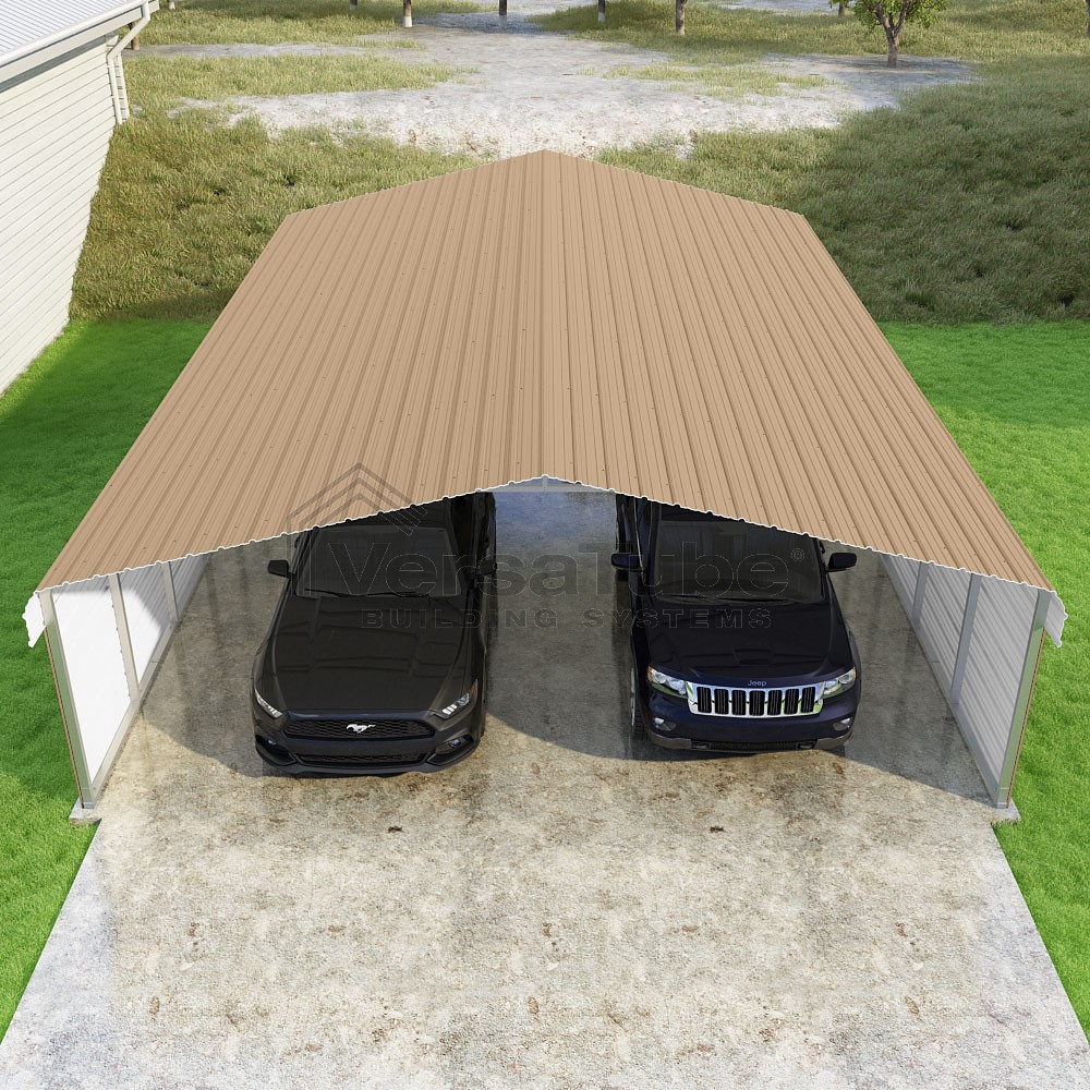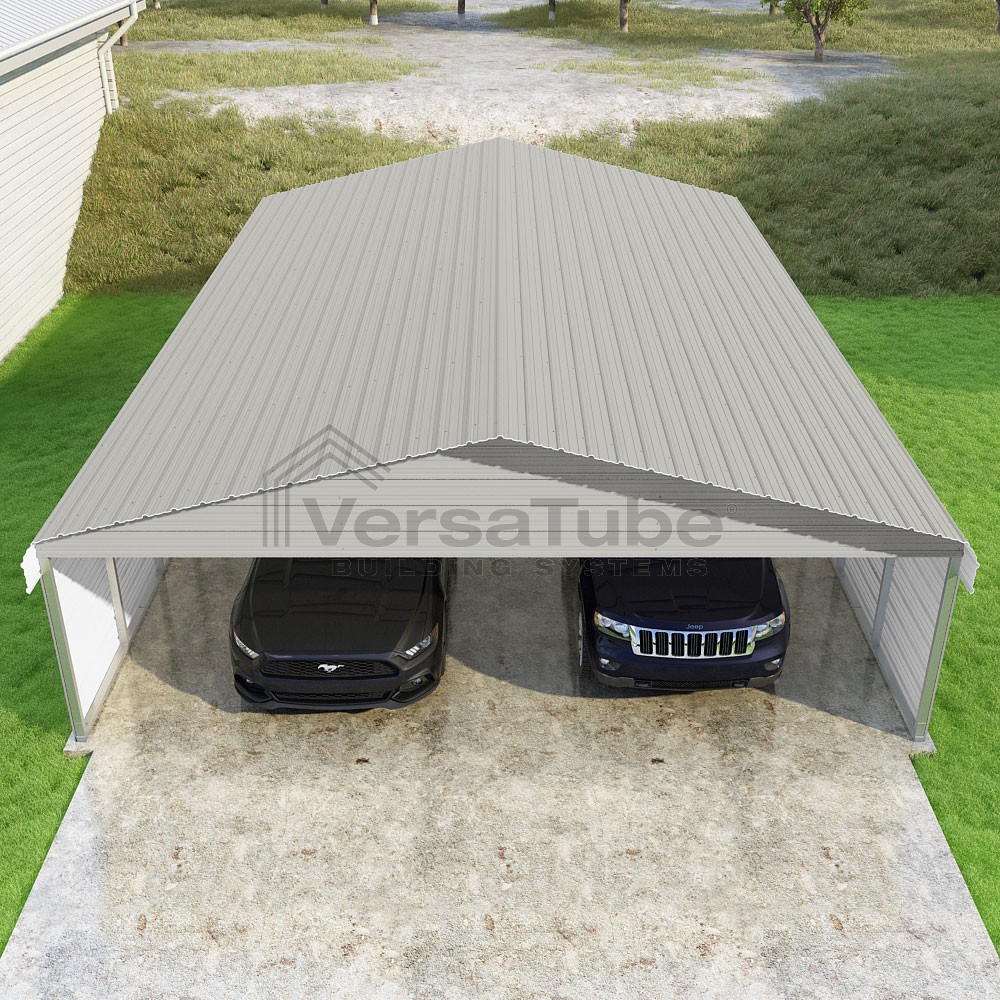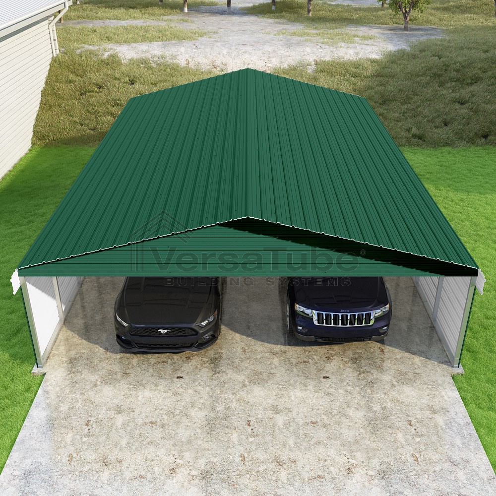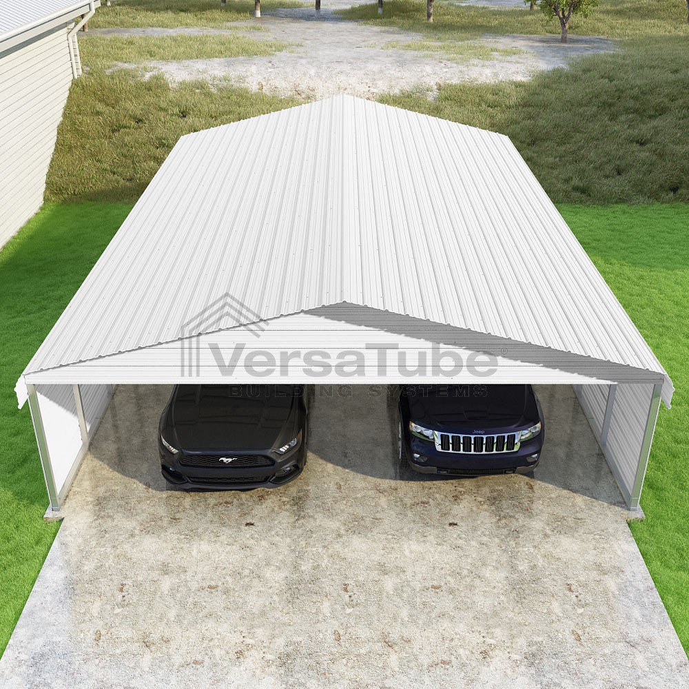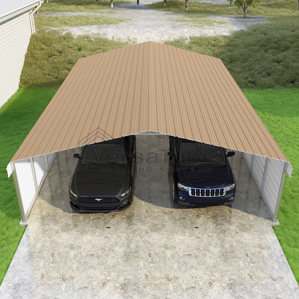 Classic Series DIY carport kit features horizontal application of sheet metal panels with the extra protection of rounded eaves.
