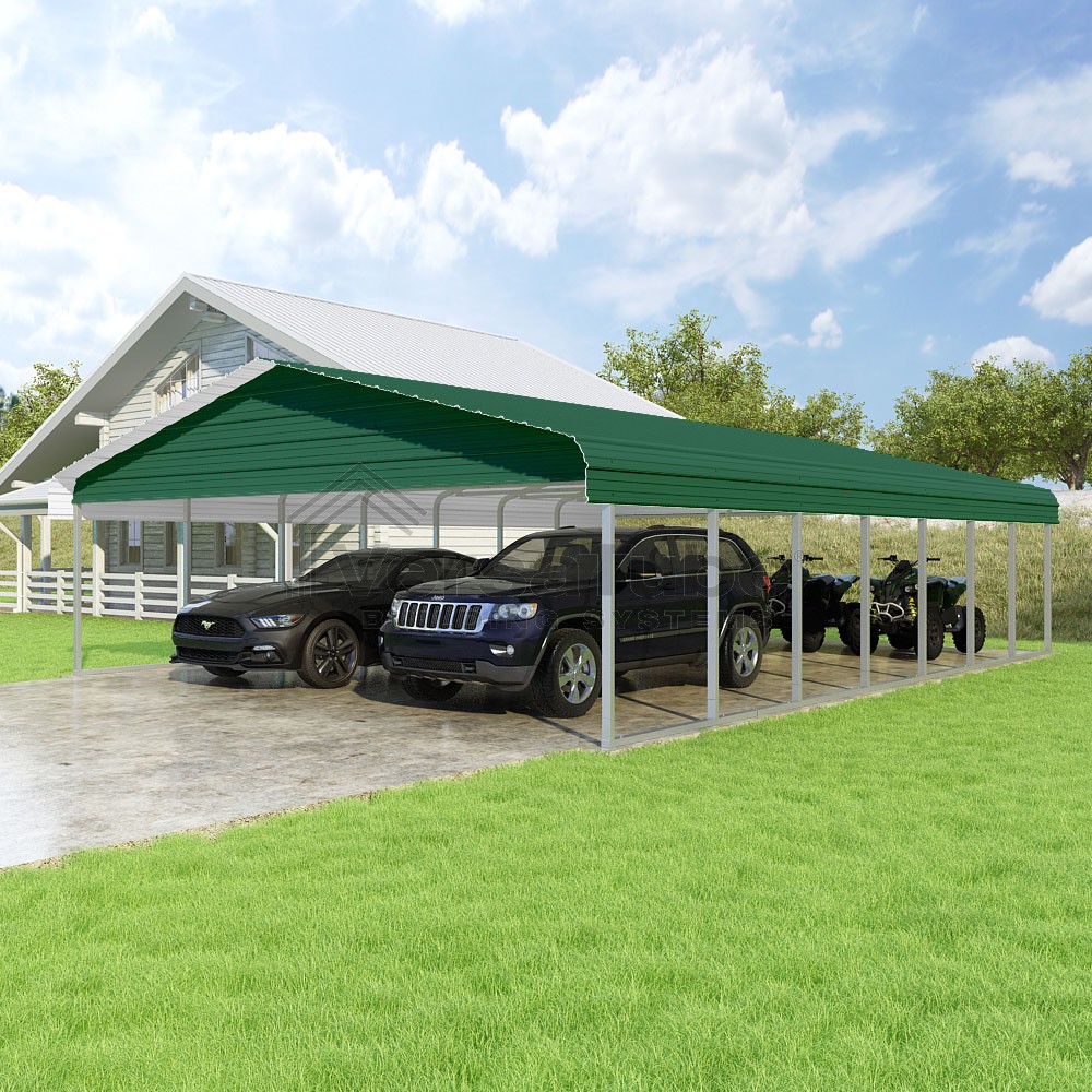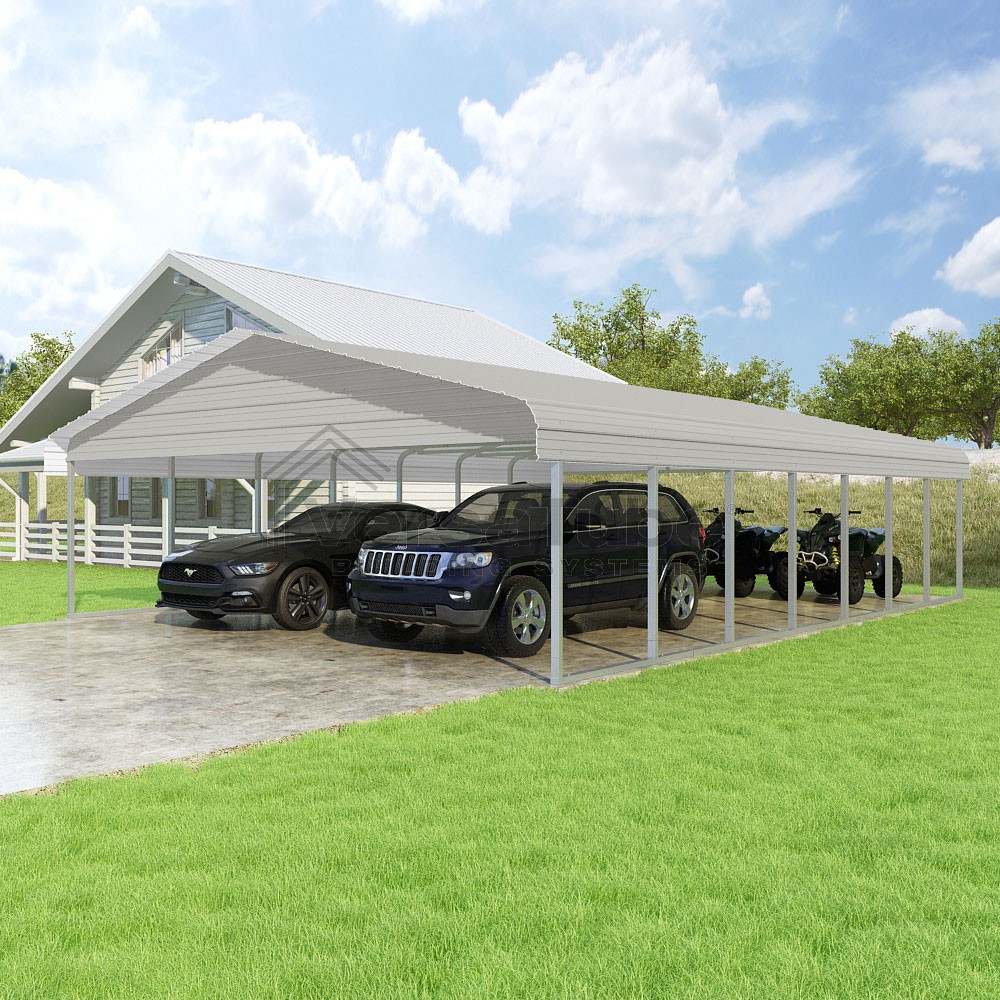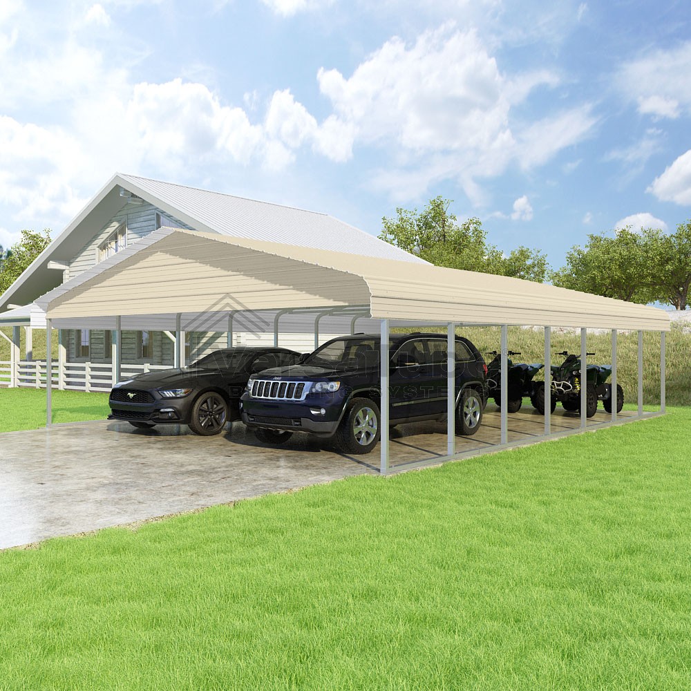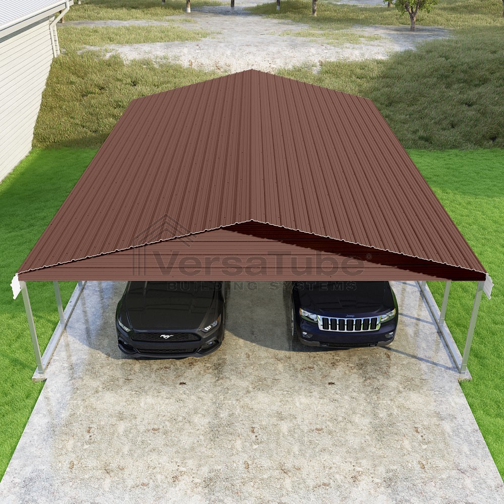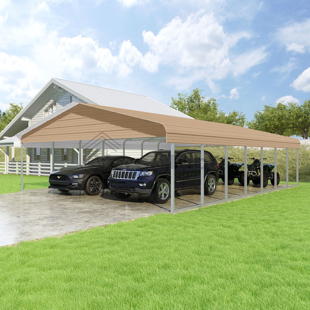 Classic Series DIY carport kit features horizontal application of sheet metal panels with the extra protection of rounded eaves.