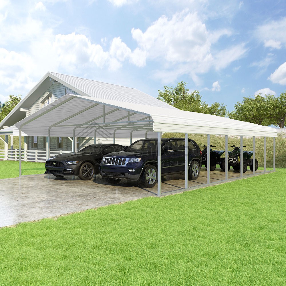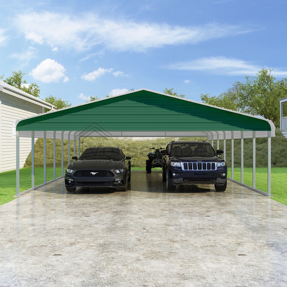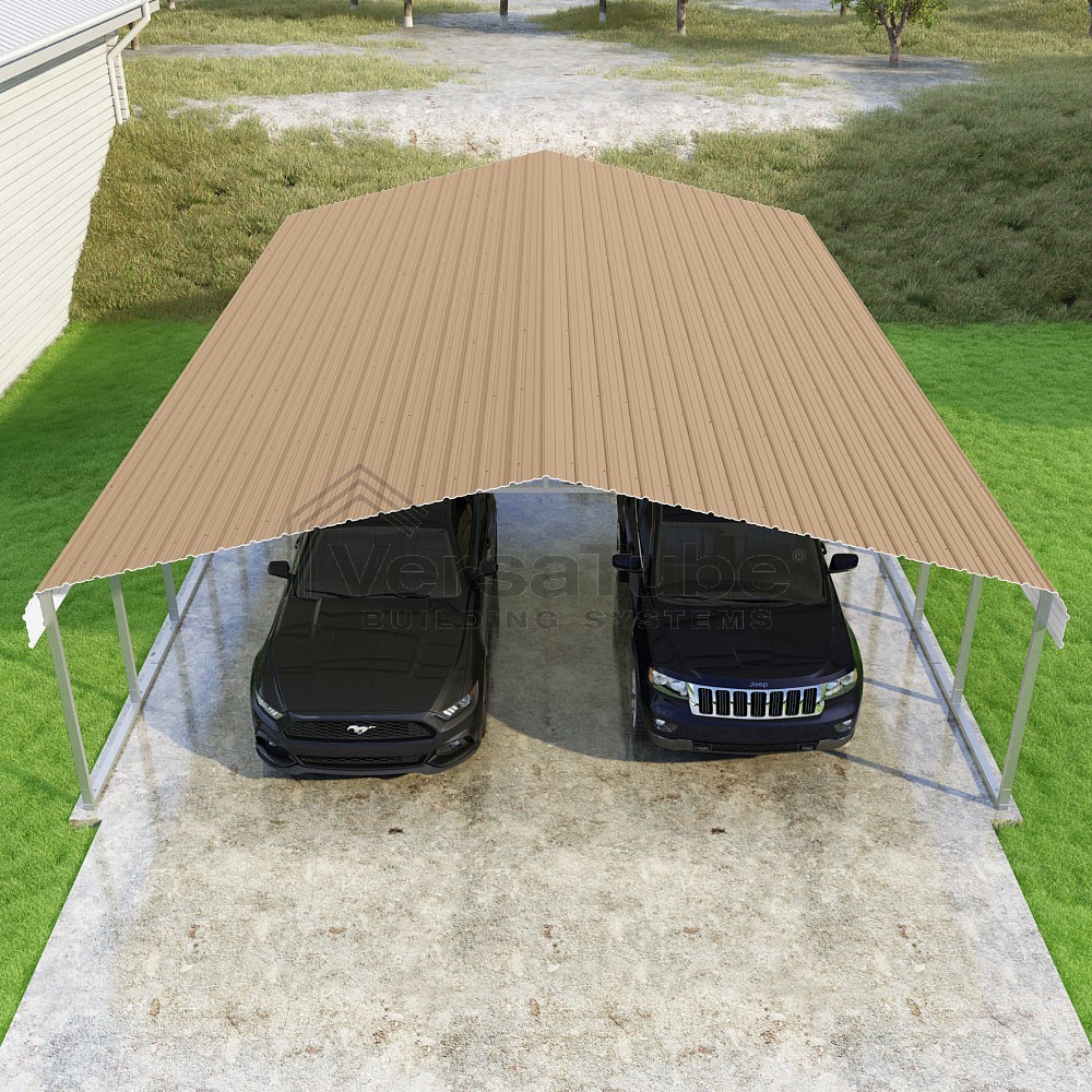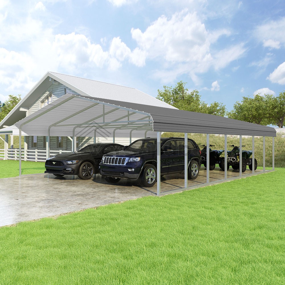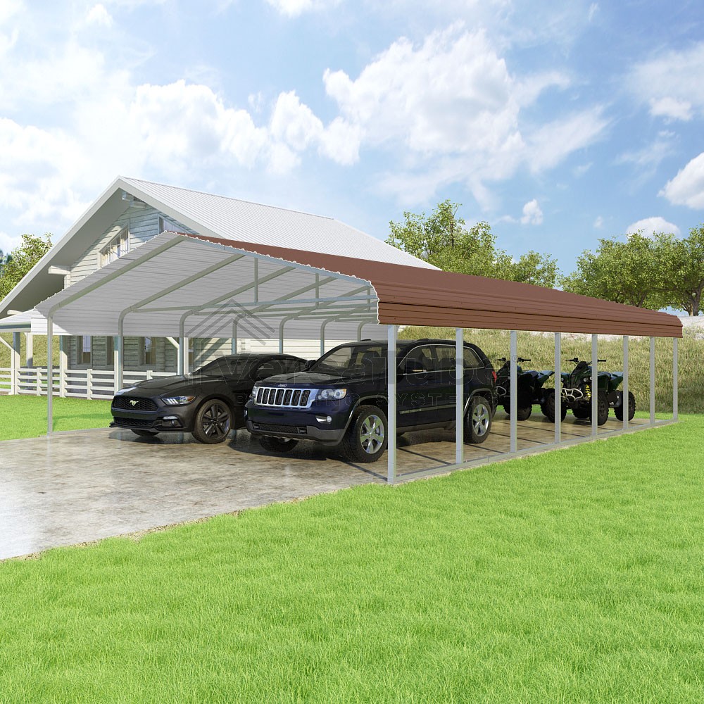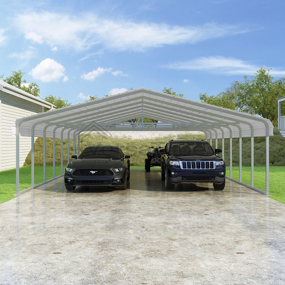 Classic Series DIY carport kit features horizontal application of sheet metal panels with the extra protection of rounded eaves.