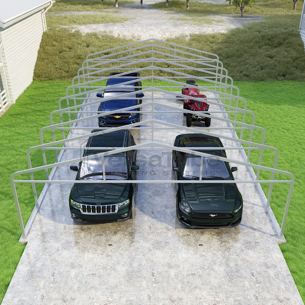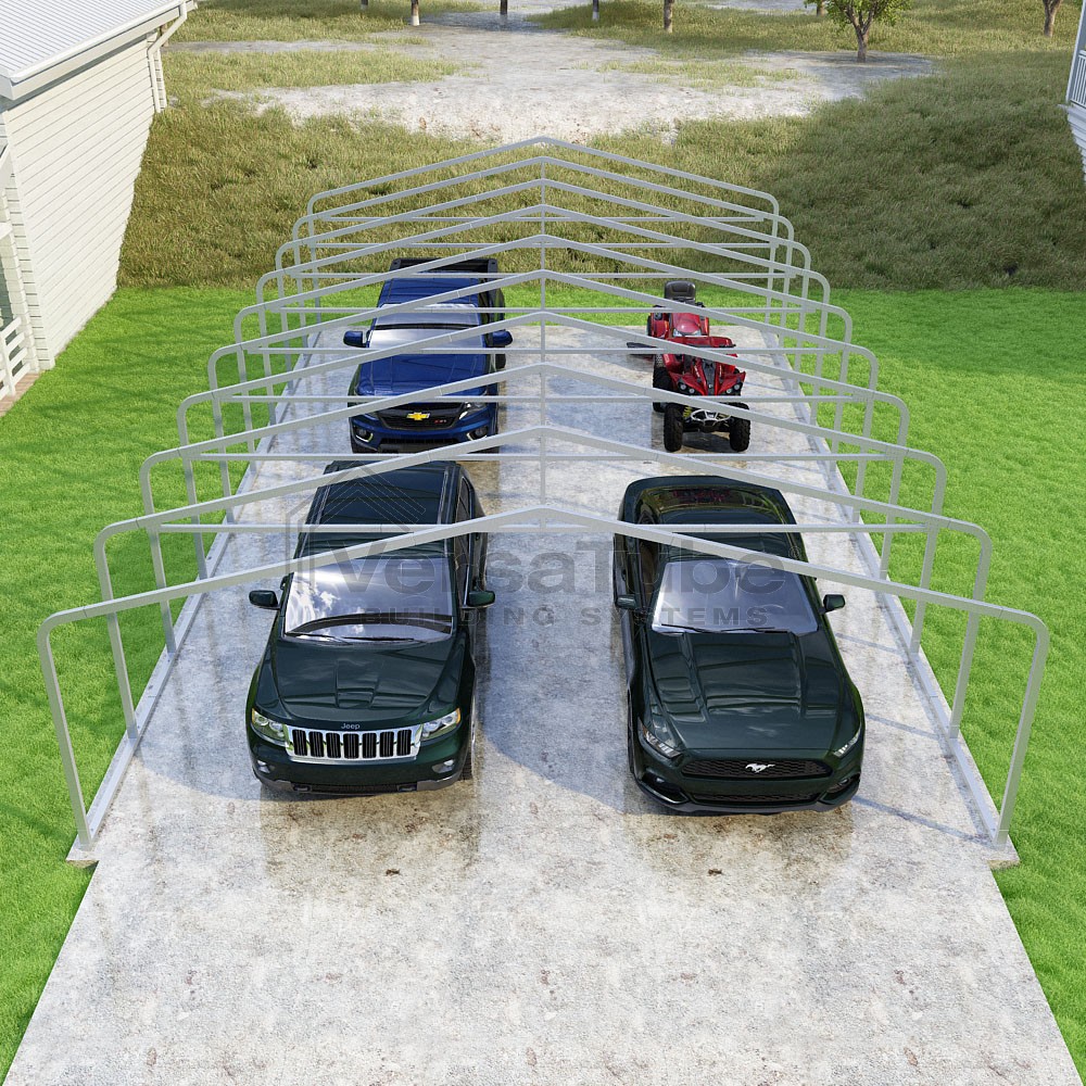 The Classic design utilizes a horizontal sheet metal roof application which has become a popular mainstay for accommodating carport or shelters solutions in a more affordable manner by eliminating the need for roof purlins and ridge cap trim. And with the VersaTube Slip-Fit frame system, you can get your carport frame kit assembled in a single afternoon using common tools.